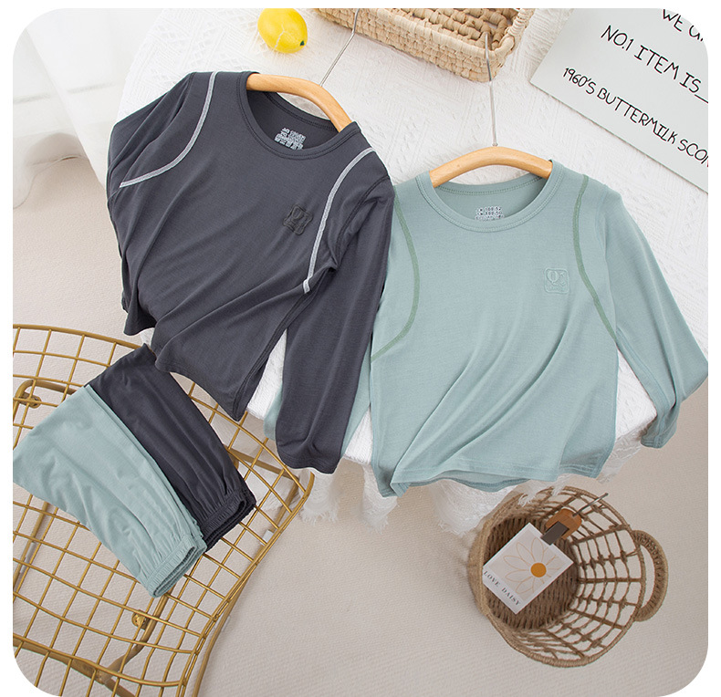 어린이 잠옷 모달 봄 여름과 가을 소년 가을 옷 가을 바지 소녀 홈 옷 세트 십대 기본 속옷