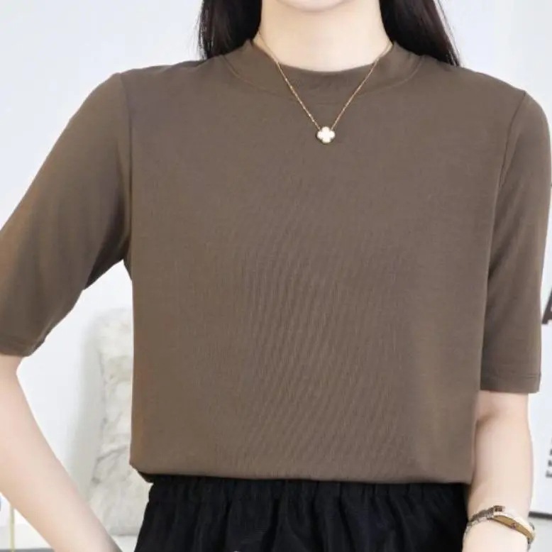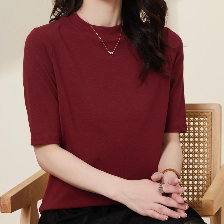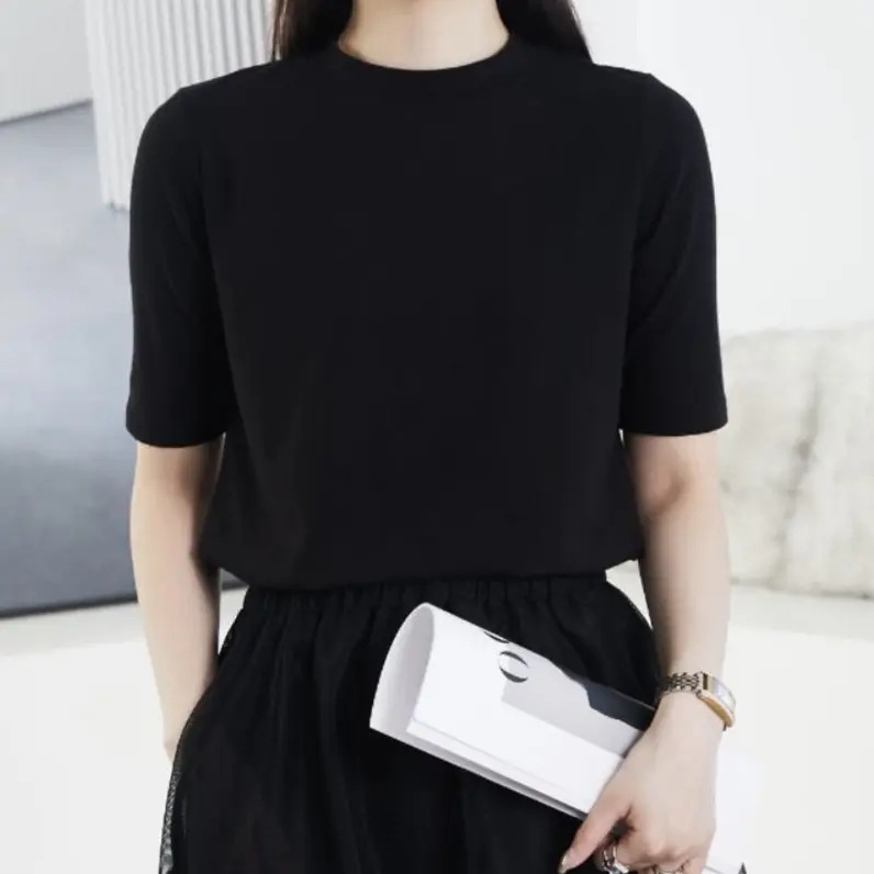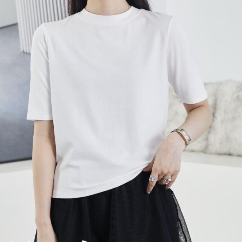 [여신 추천] 패션 뉴 조커 솔리드 컬러 반소매 티셔츠 크루 넥베이스 셔츠 스트레치 반소매 탑