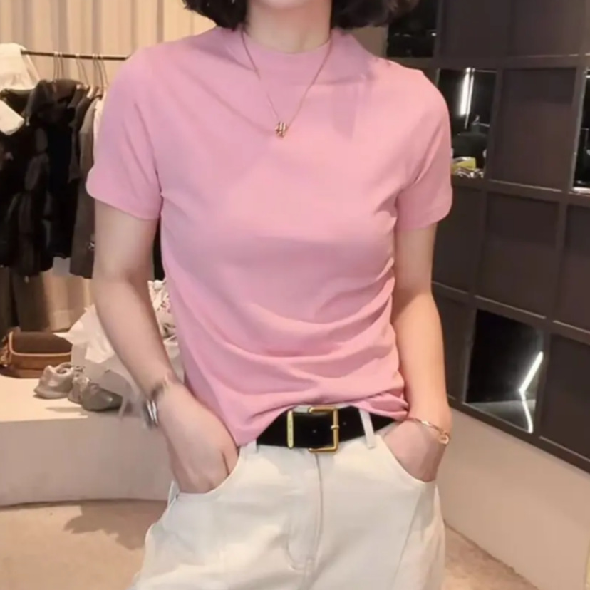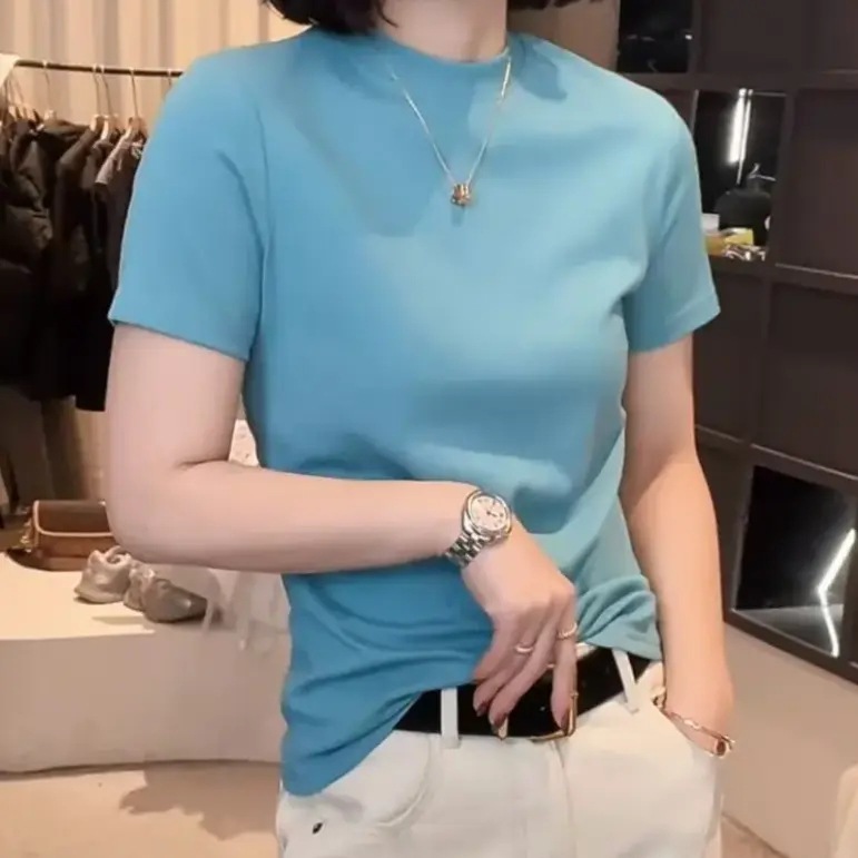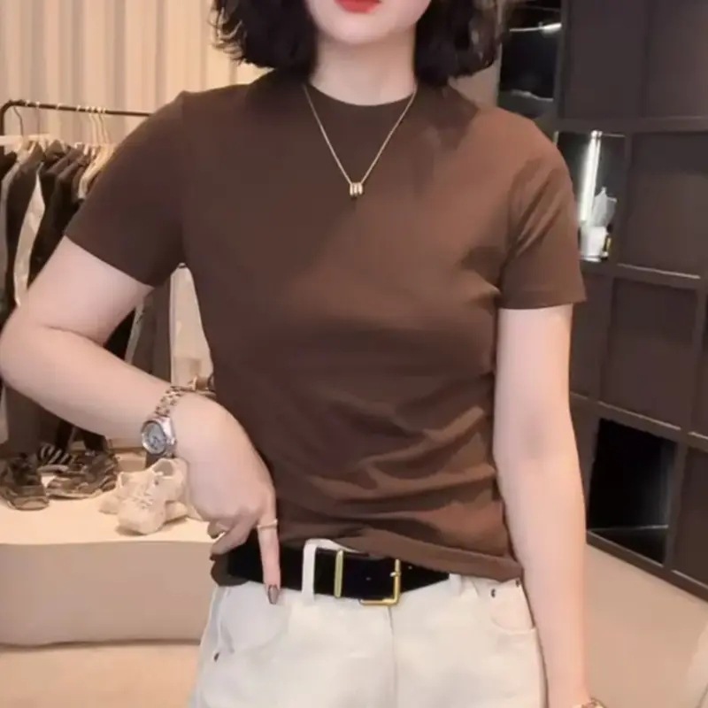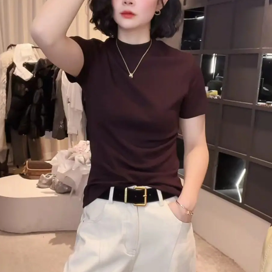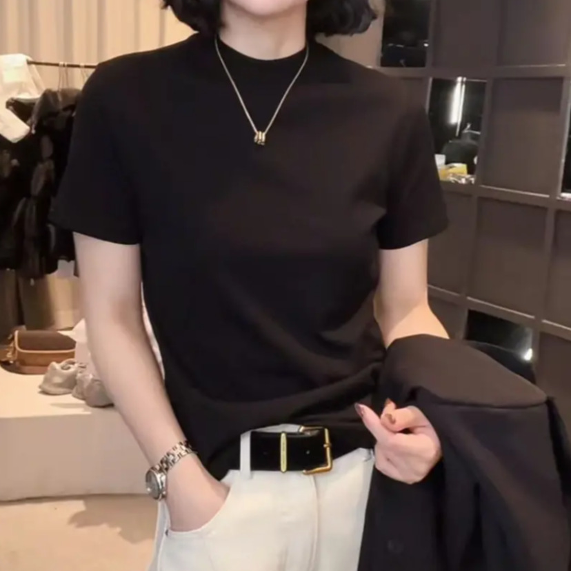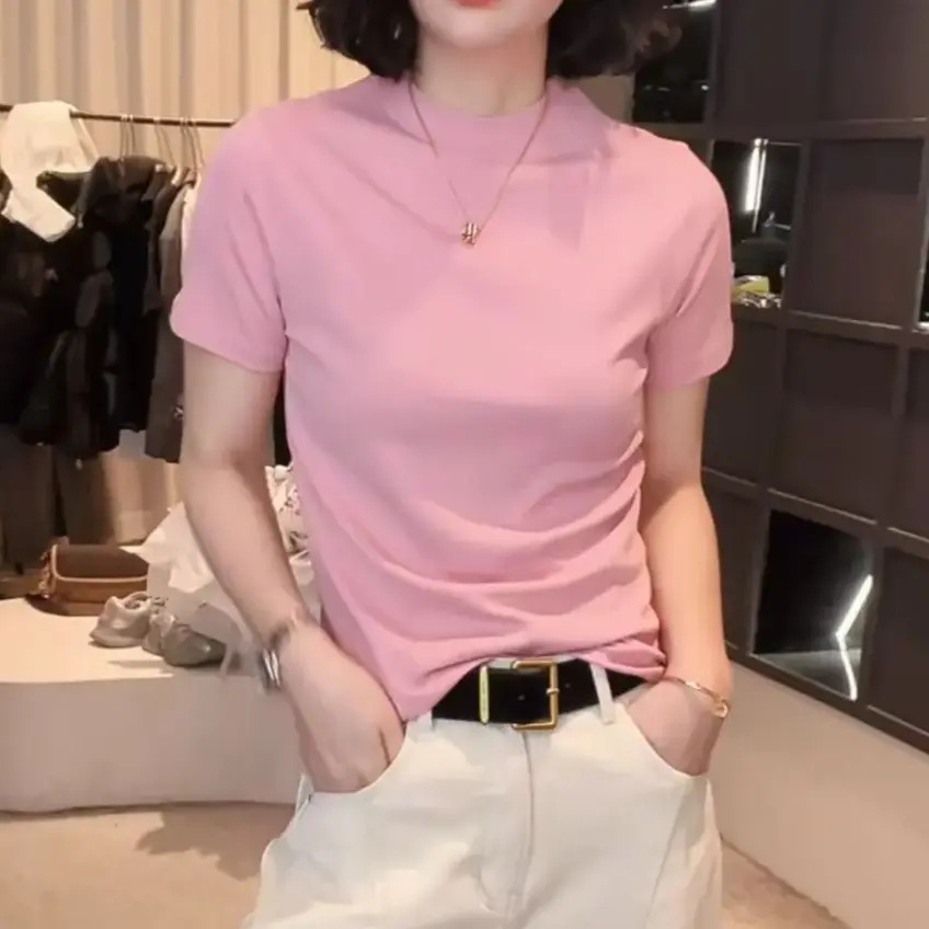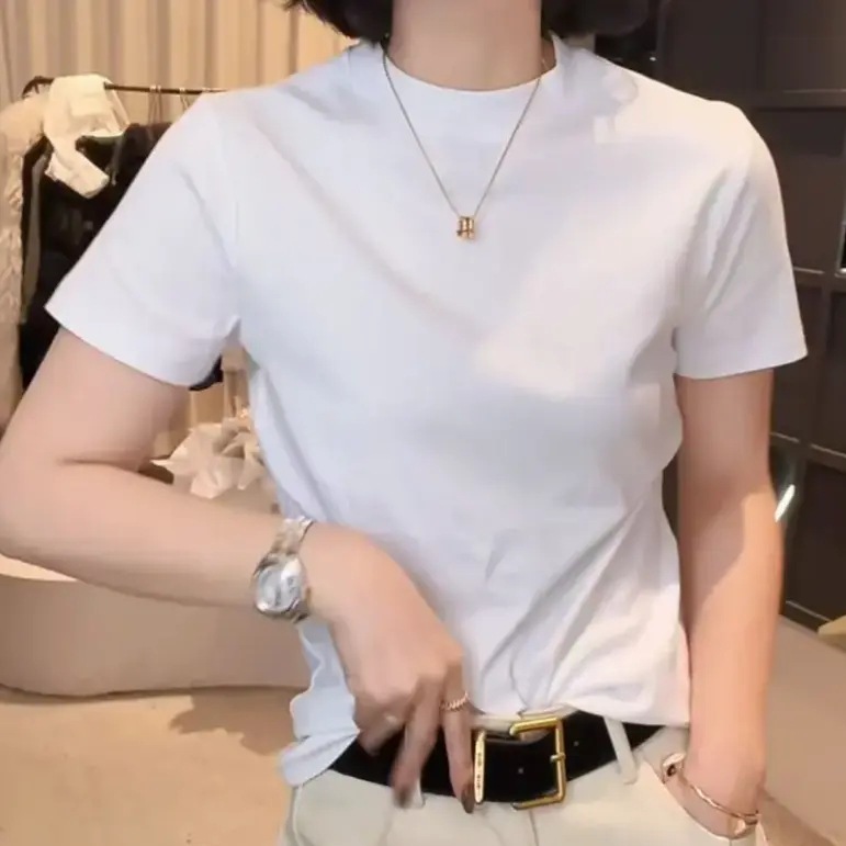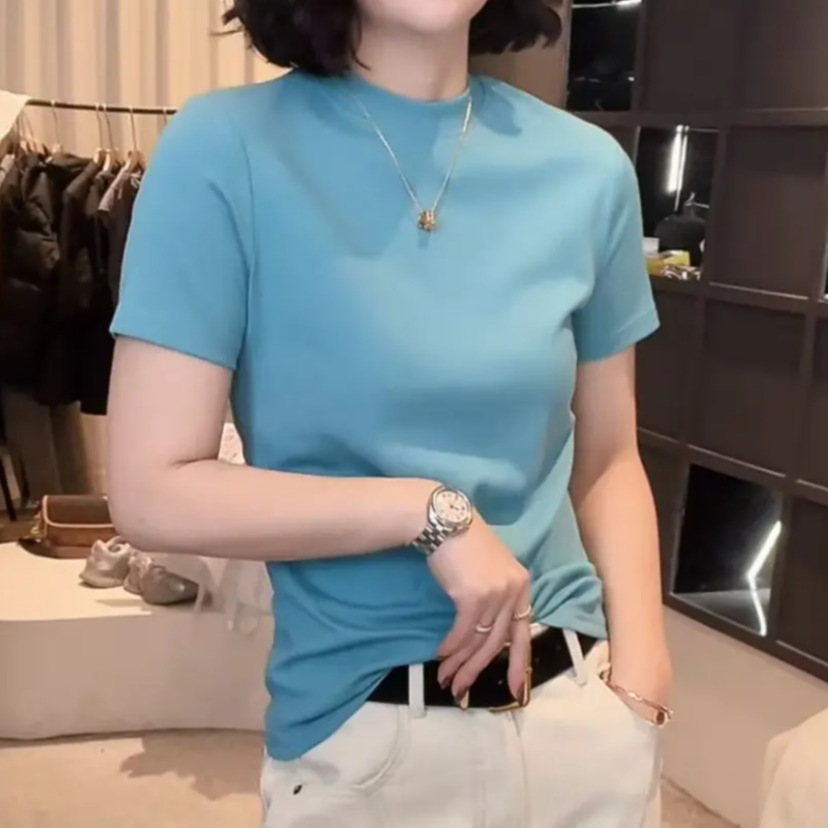 [라이브 폭발] 2025 년 새 한국형 반소매 티셔츠베이스 셔츠 패션 조커 원단 부드럽고 편안한 프로