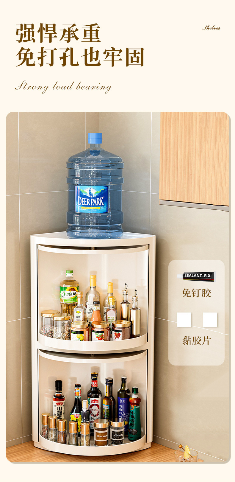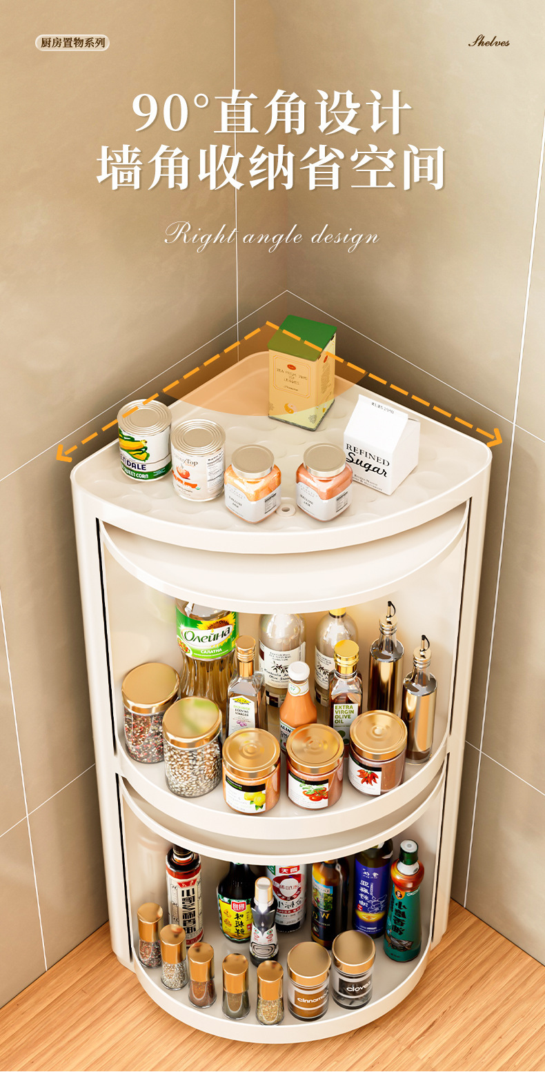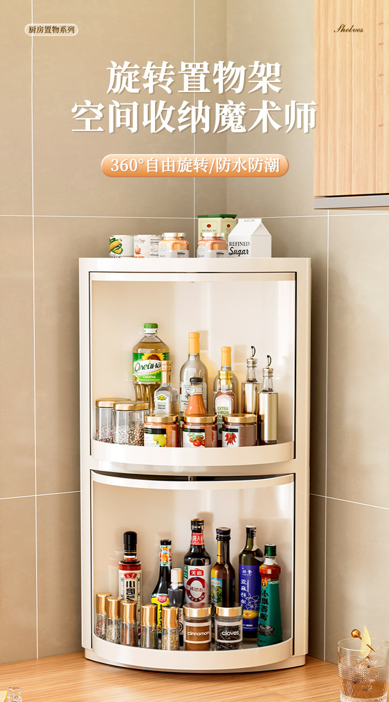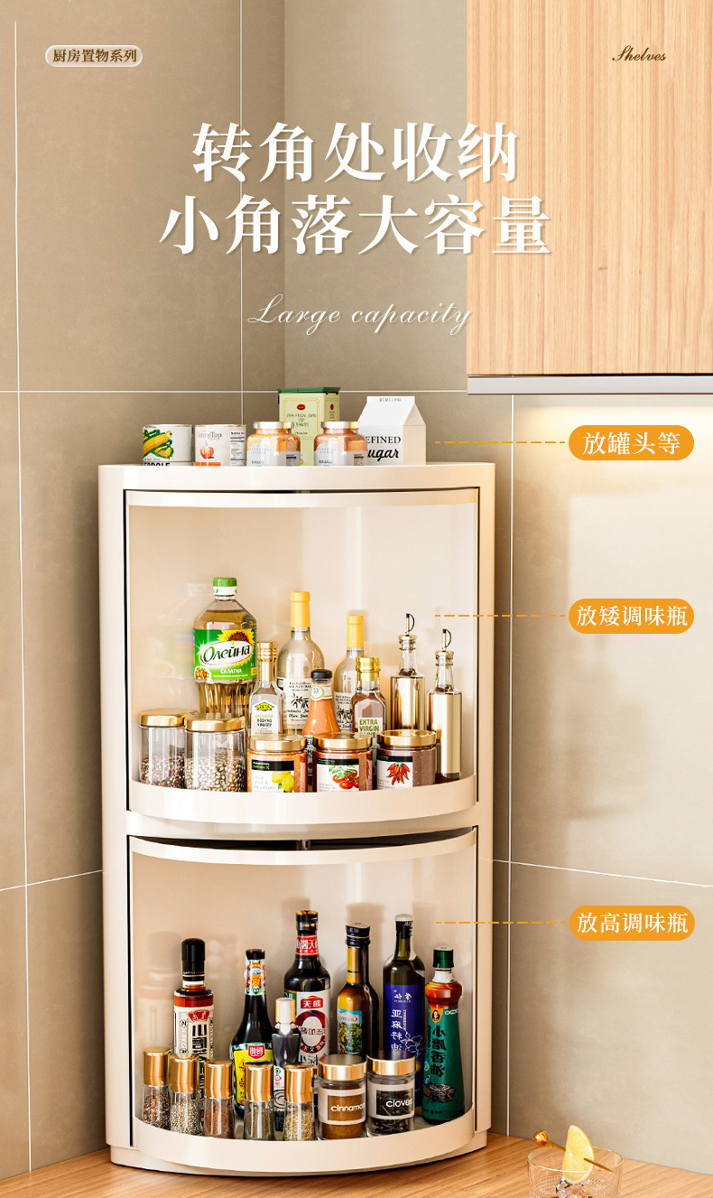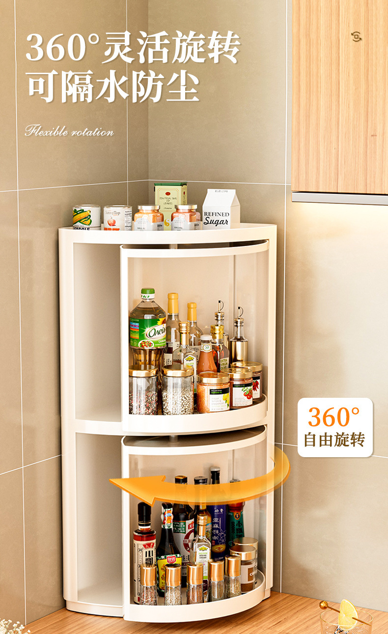 주방 코너 선반은 회전식으로 기름, 소금, 소스, 식초, 양념병 등을 보관할 수 있으며, 캐비닛 수납 코너 양념 선반입니다.