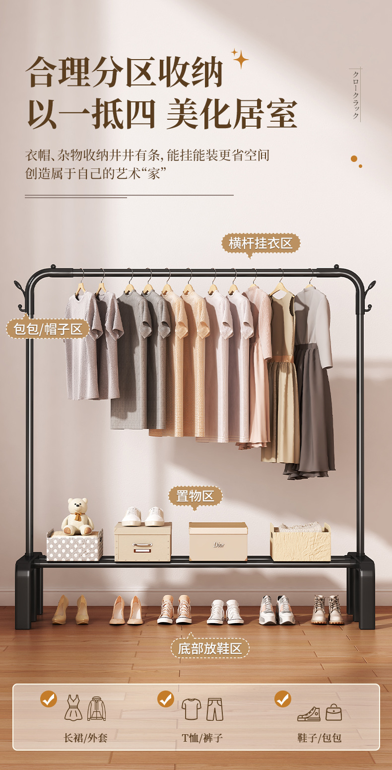옷 옷걸이 바닥 가구 발코니 실내 간단한 옷로드 모바일 옷 옷걸이 학생 기숙사 옷 랙