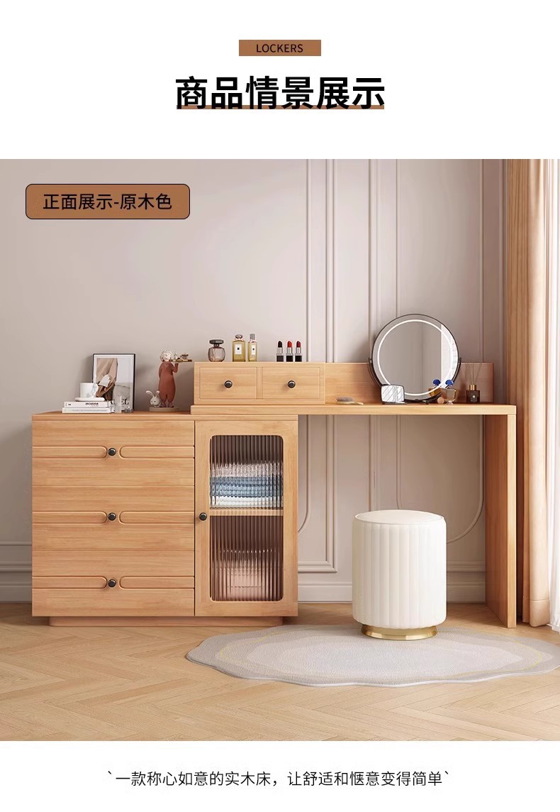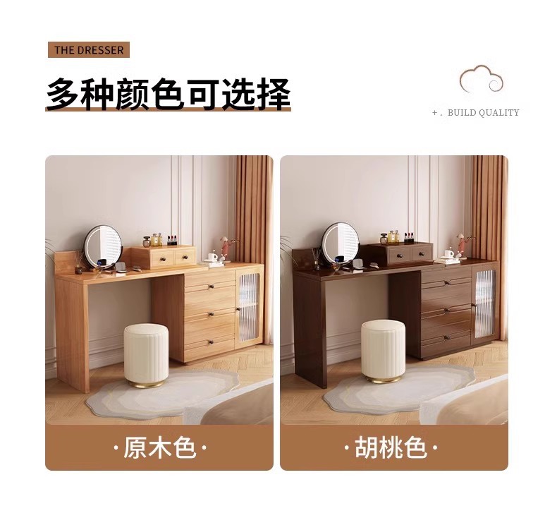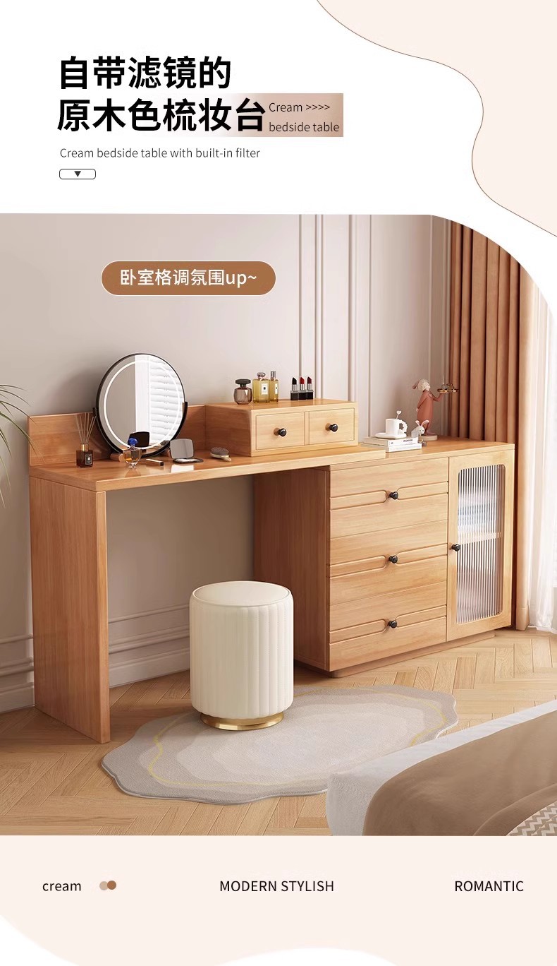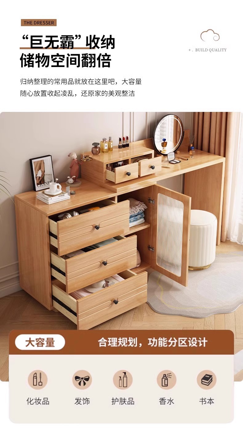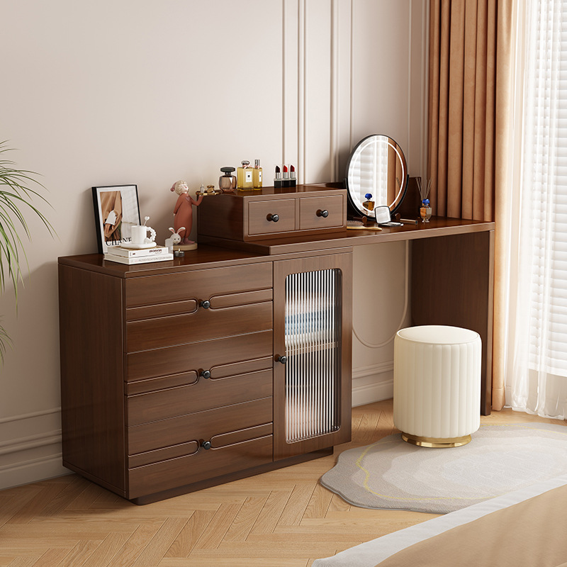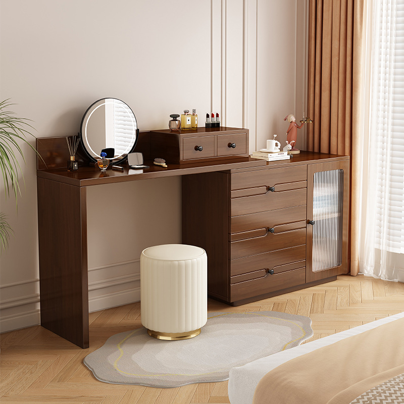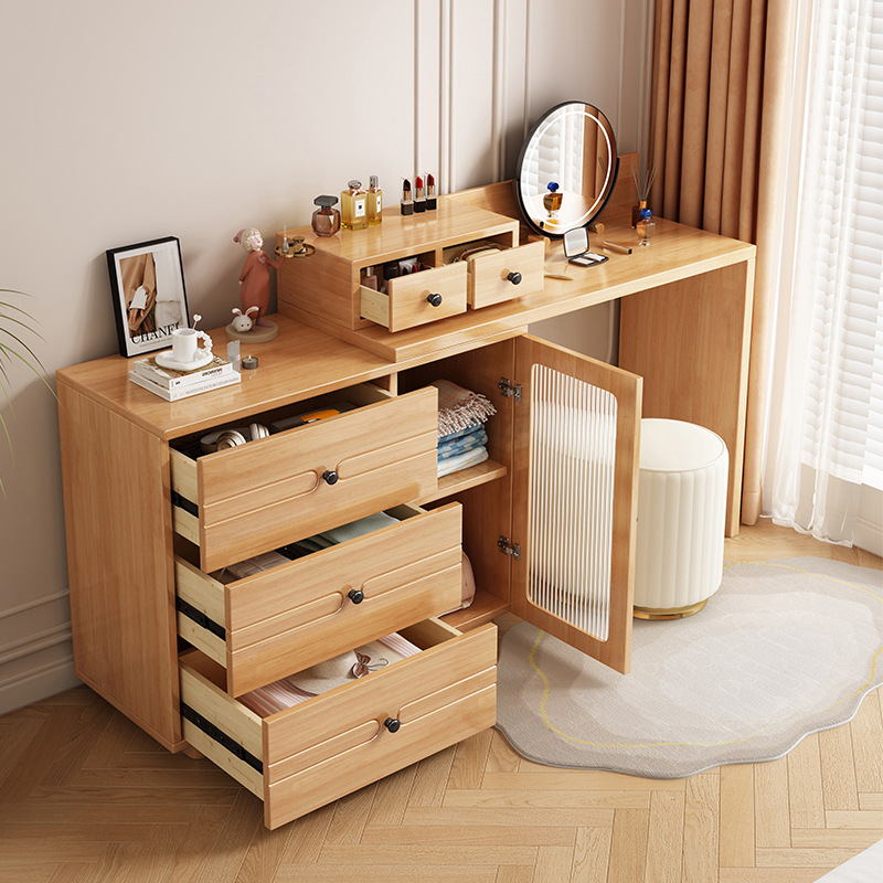 버킷 캐비닛이있는 단단한 나무 드레싱 테이블 간단한 현대 침실 작은 아파트 거울이있는 다기능 메이크업 테이블