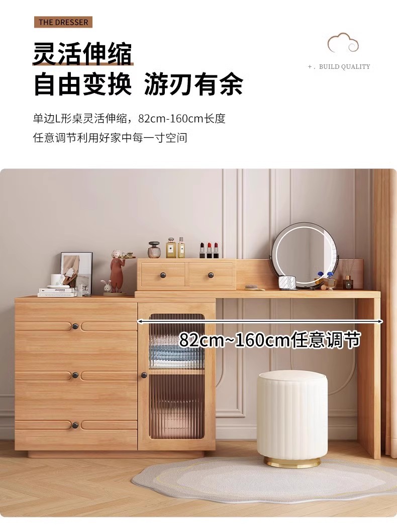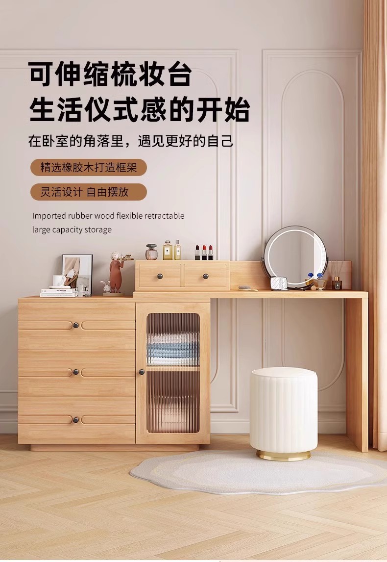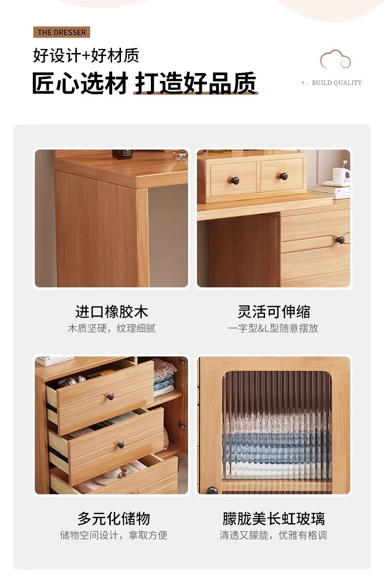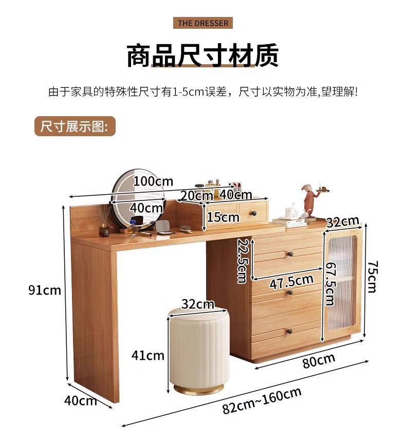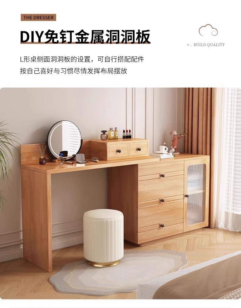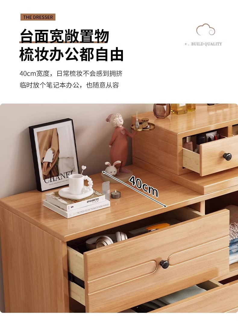 버킷 캐비닛이있는 단단한 나무 드레싱 테이블 간단한 현대 침실 작은 아파트 거울이있는 다기능 메이크업 테이블