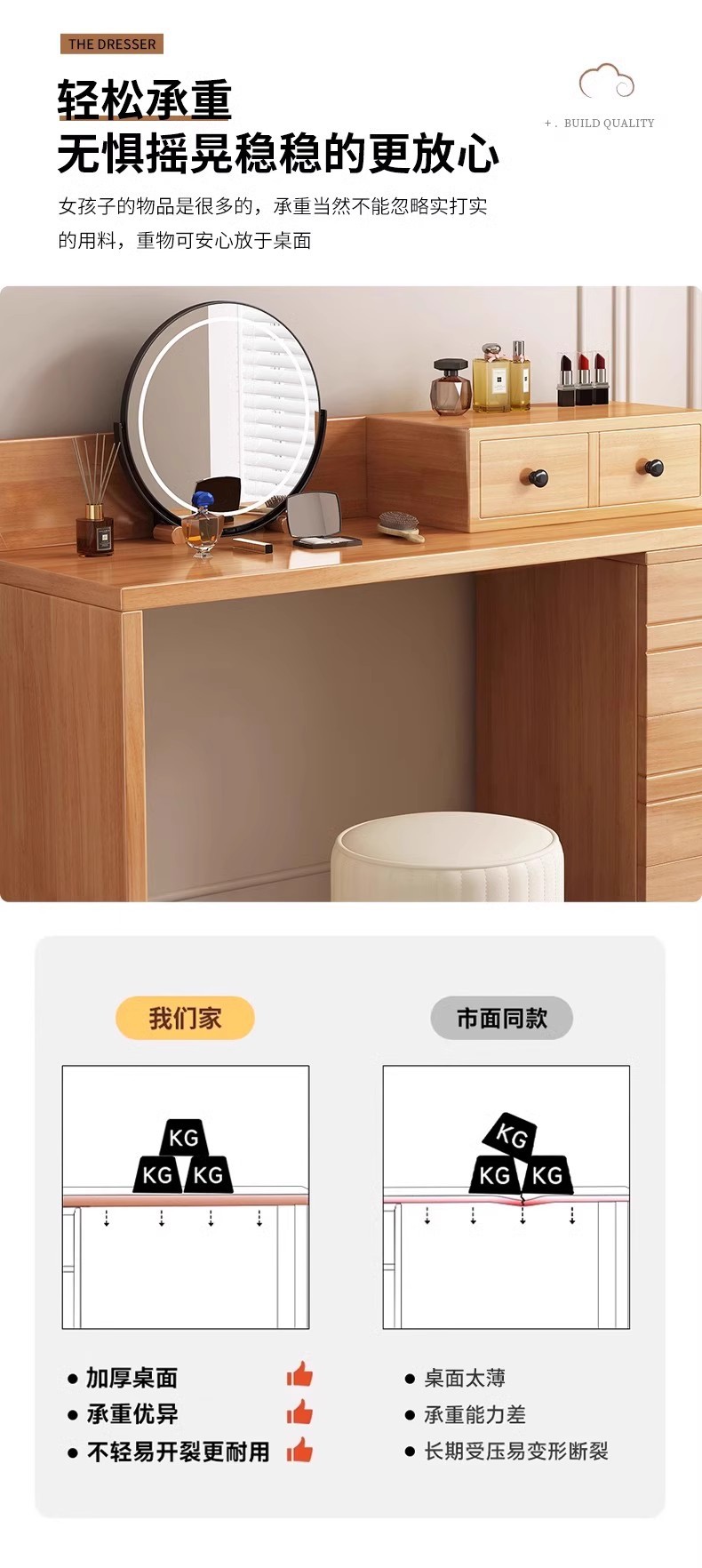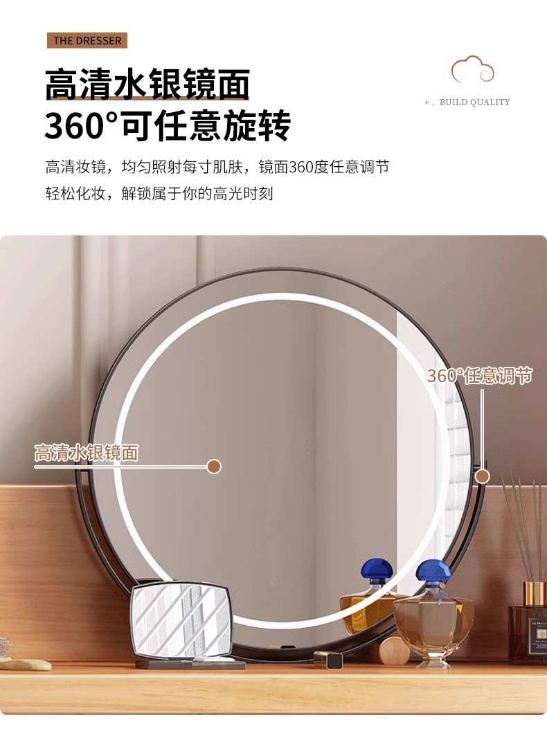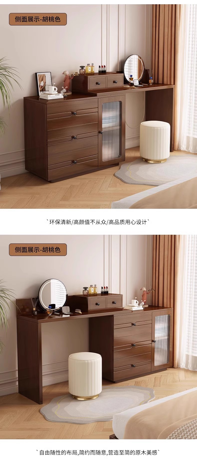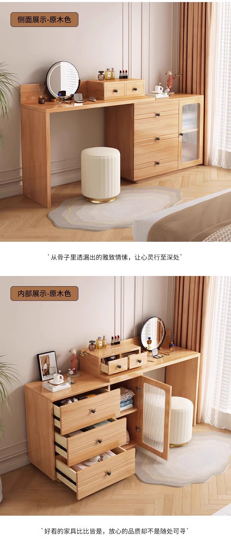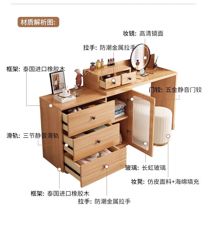 버킷 캐비닛이있는 단단한 나무 드레싱 테이블 간단한 현대 침실 작은 아파트 거울이있는 다기능 메이크업 테이블