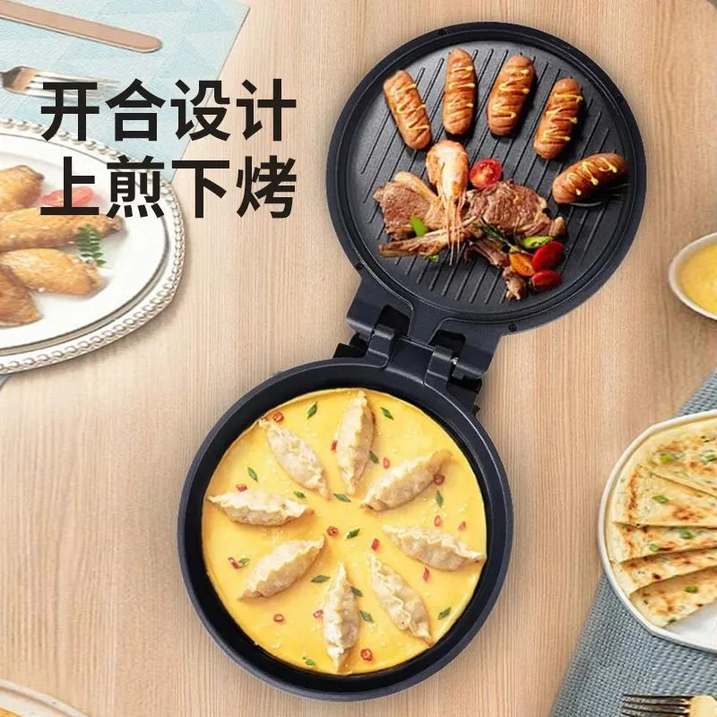 새로운 가정용 전기 팬케이크 팬 일체형 양면 가열 팬케이크 및 얇은 얼음 기계 자동 전원 끄기로 깊은 대형 팬케이크 팬