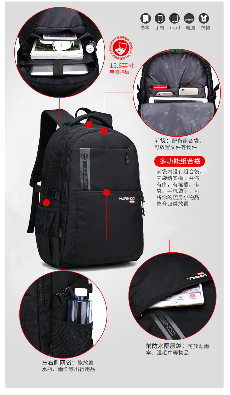 야외 레저용 백팩, 나일론 방수 초경량 대용량 백팩, 가벼운 컴퓨터 가방, 출퇴근용으로 최적