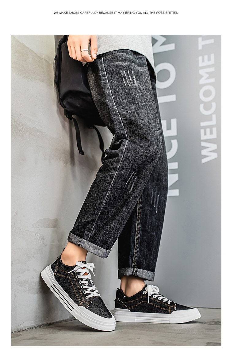 개성 넘치는 봄 가을 신상 남성화, 한국 스타일 패션, 해외 직구, 큰 사이즈, 로우탑 캐주얼 슈즈, 데님 싱글 슈즈, 다용도 스니커즈