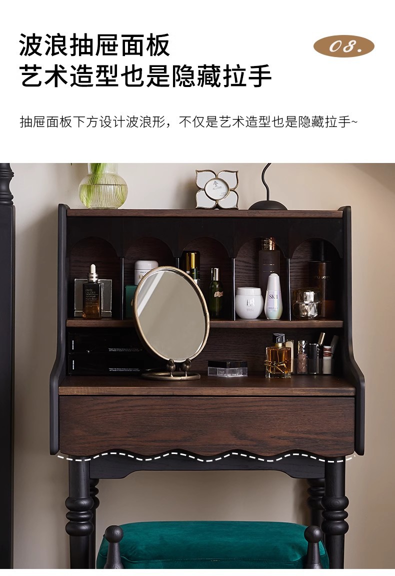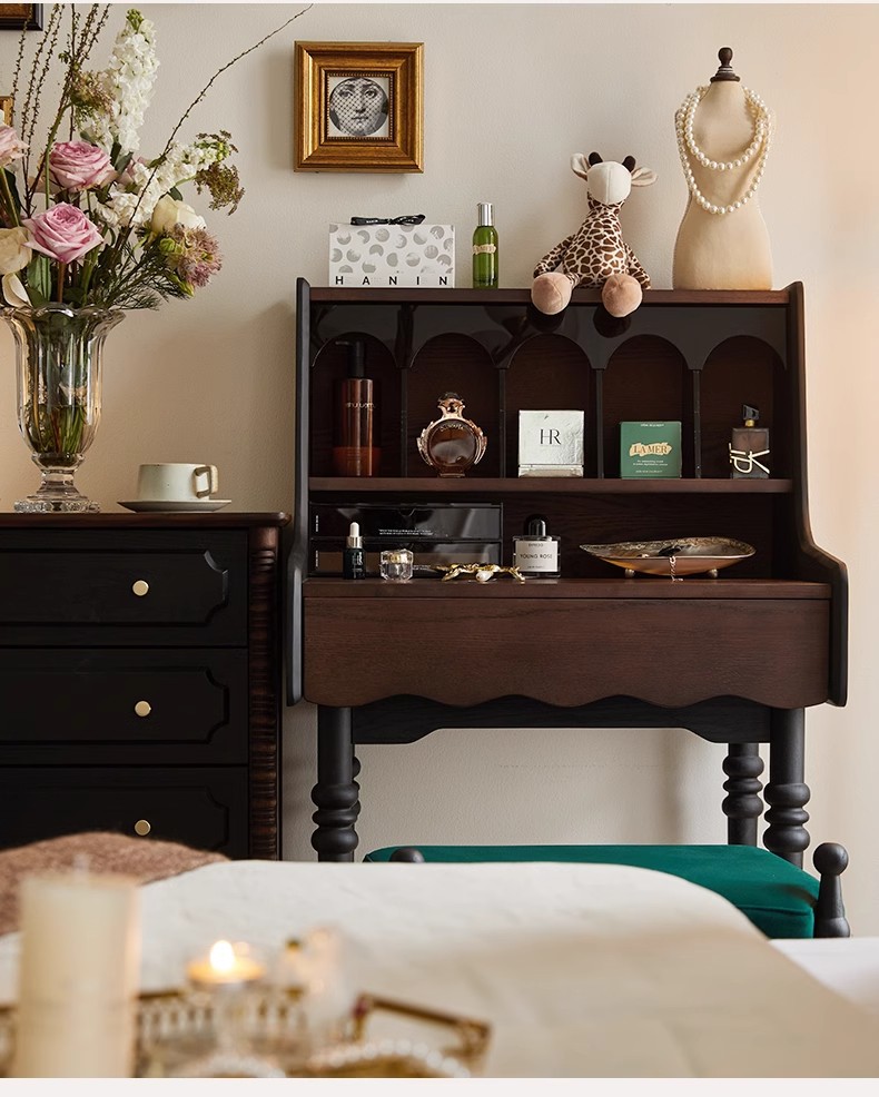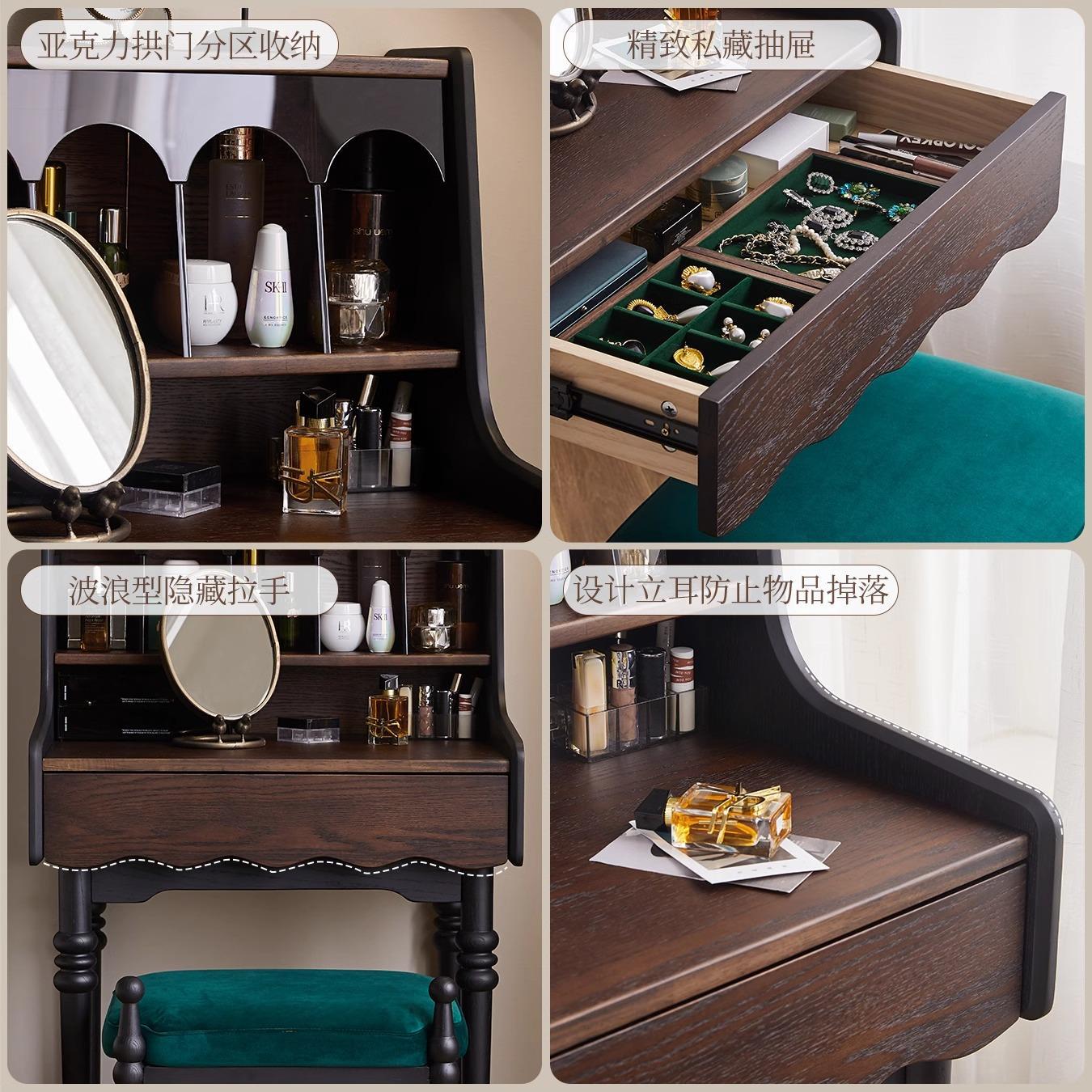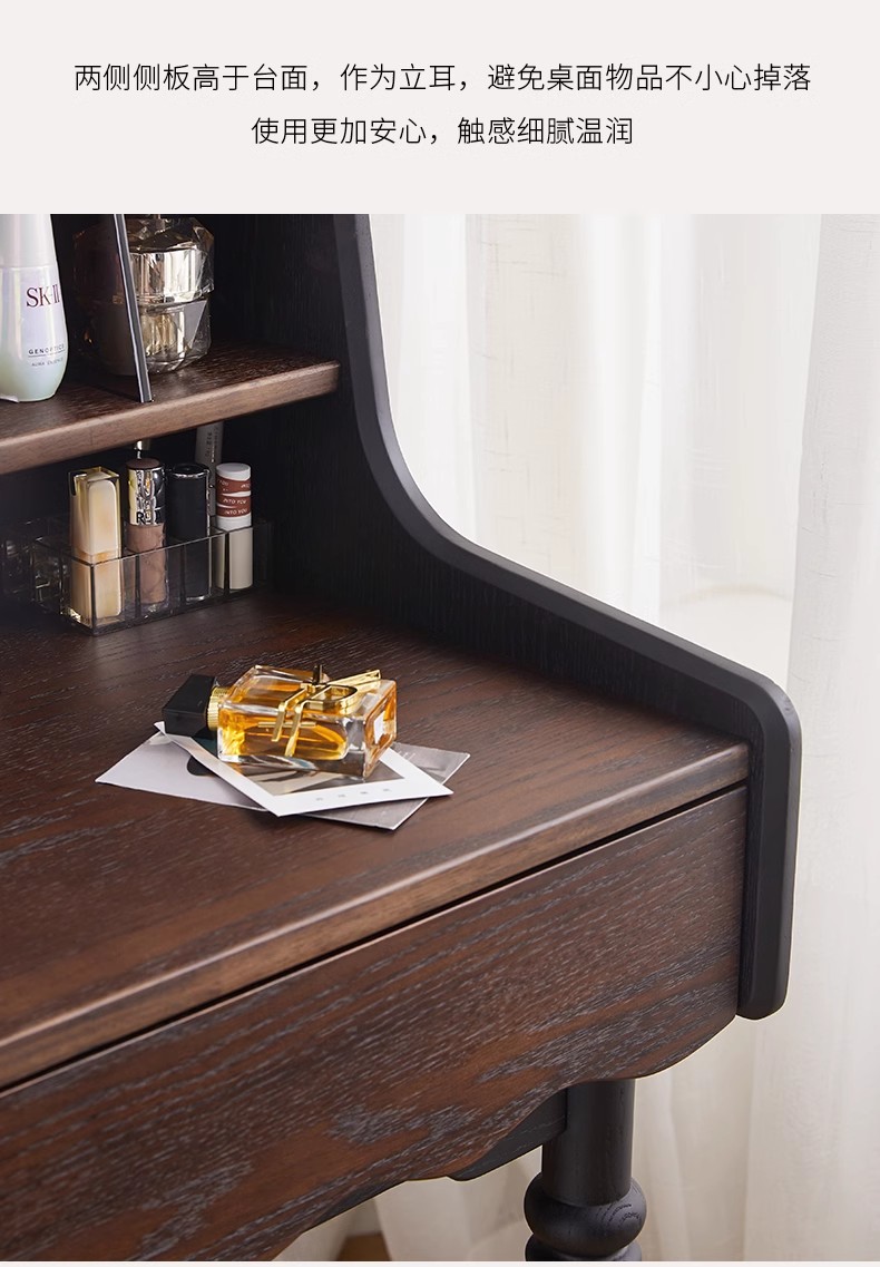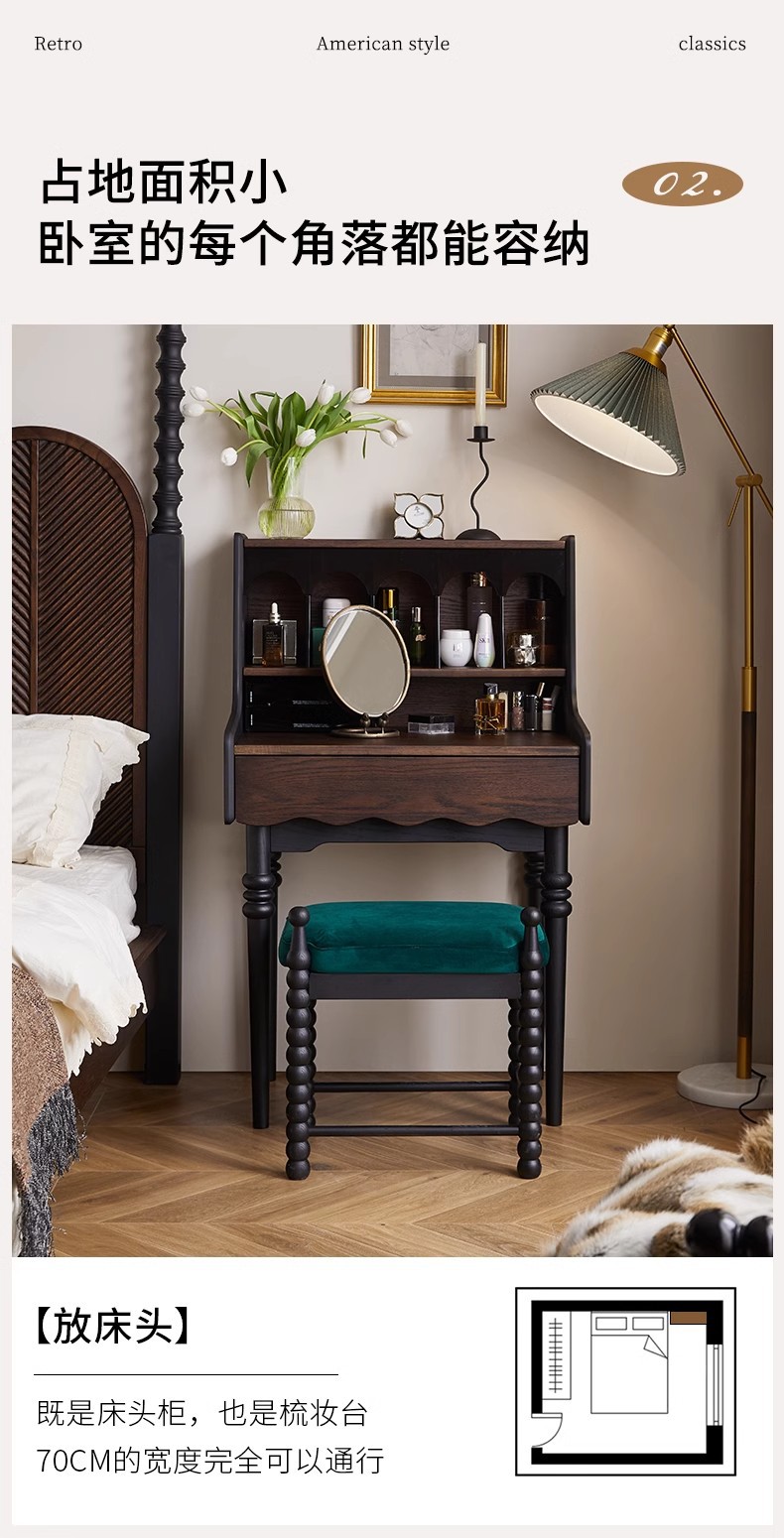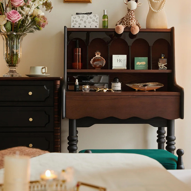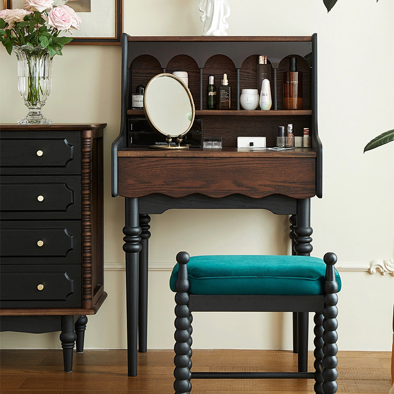 프랑스 복고풍 단단한 나무 드레싱 테이블 작은 아파트 침실 현대 간단한 침대 옆 테이블 저장 랙 골동품 메이크업 테이블