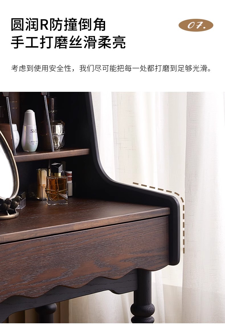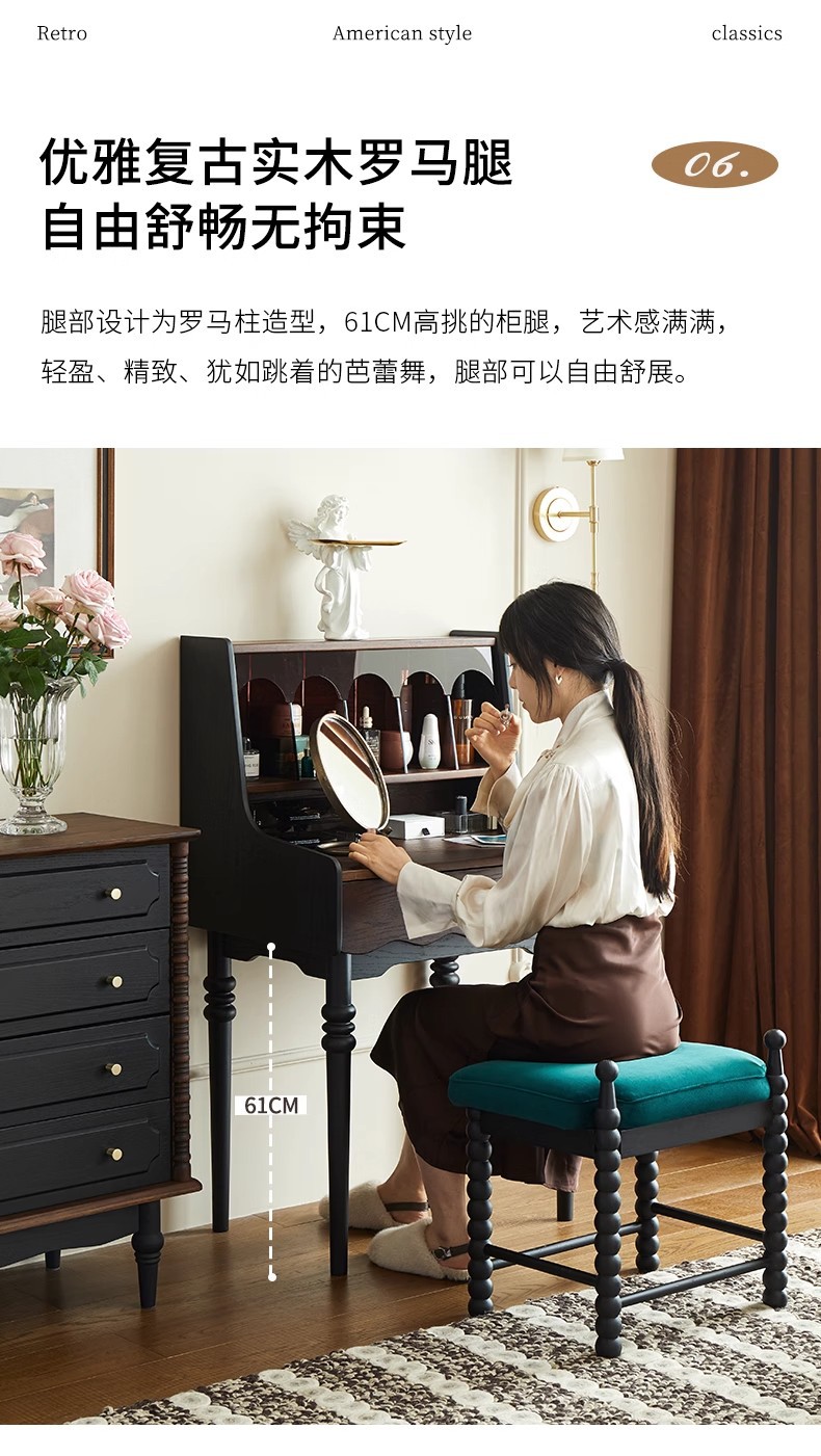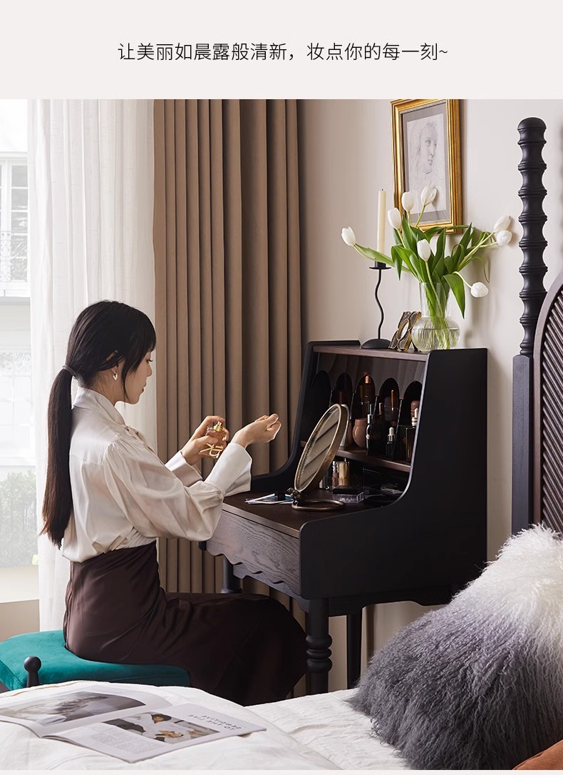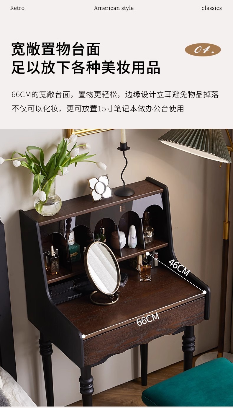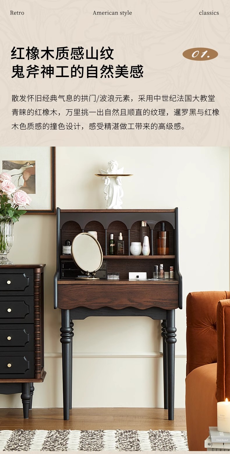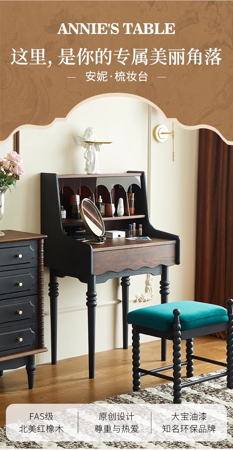 프랑스 복고풍 단단한 나무 드레싱 테이블 작은 아파트 침실 현대 간단한 침대 옆 테이블 저장 랙 골동품 메이크업 테이블