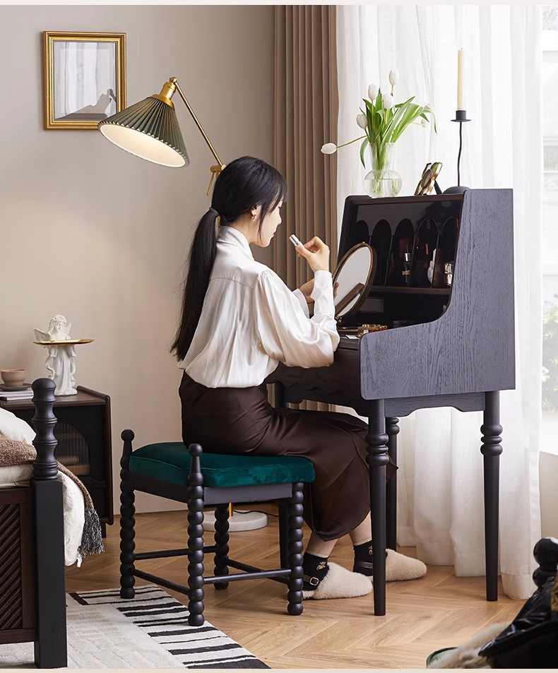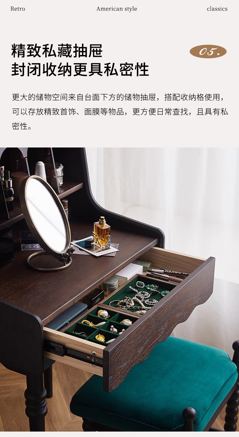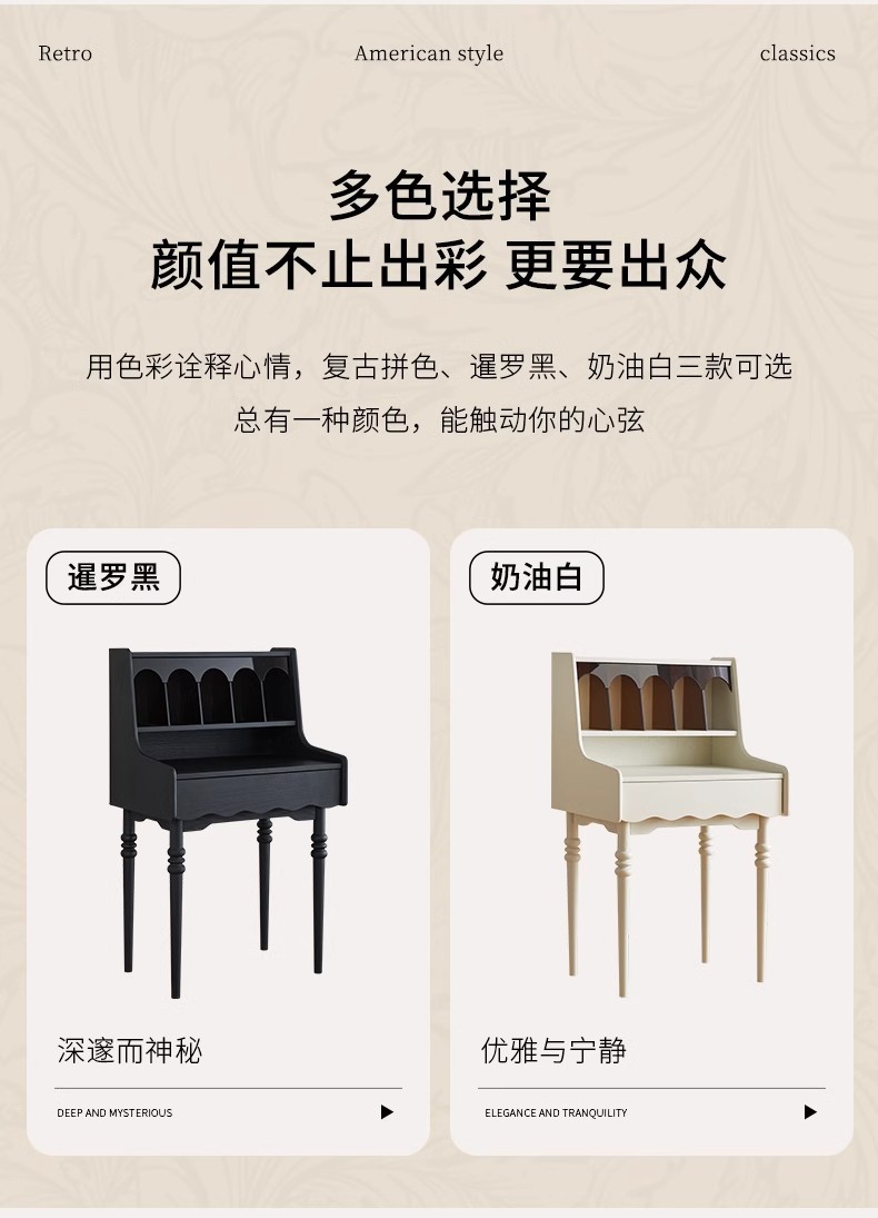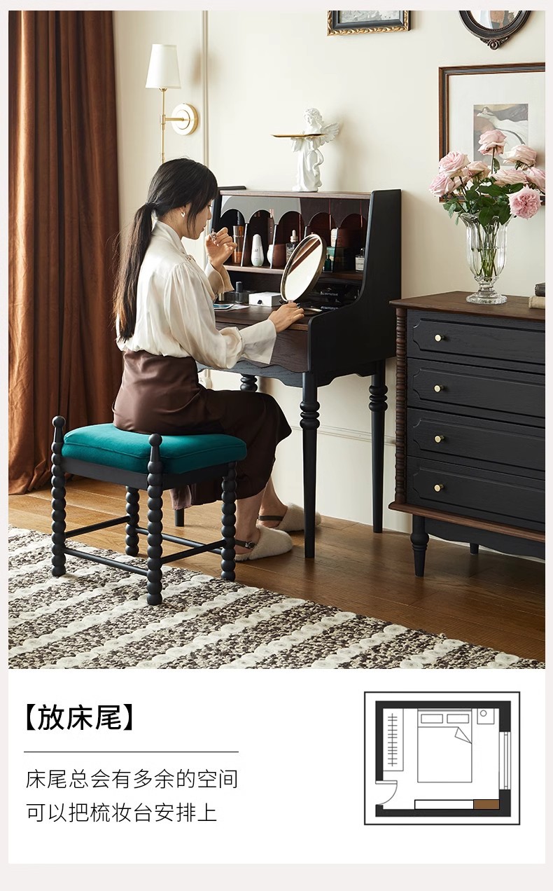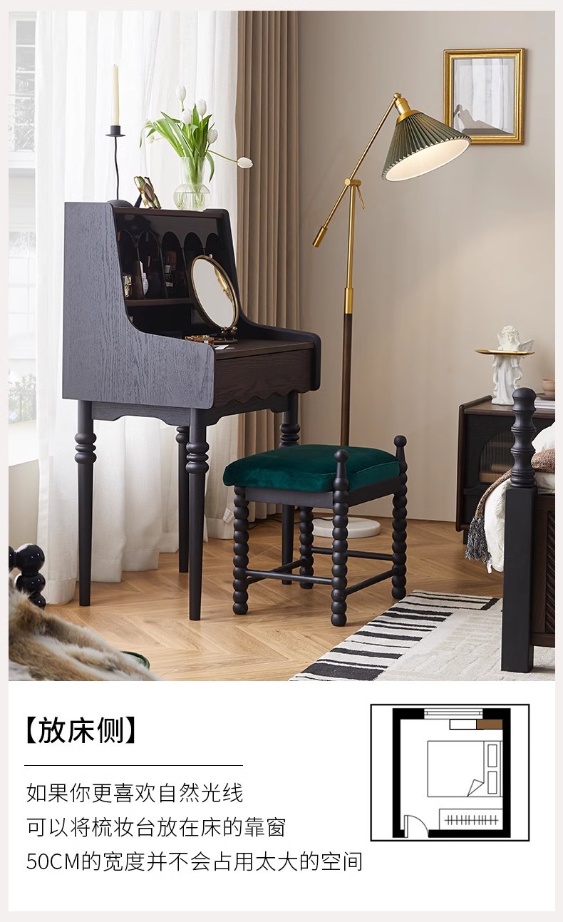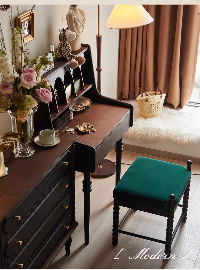 프랑스 복고풍 단단한 나무 드레싱 테이블 작은 아파트 침실 현대 간단한 침대 옆 테이블 저장 랙 골동품 메이크업 테이블