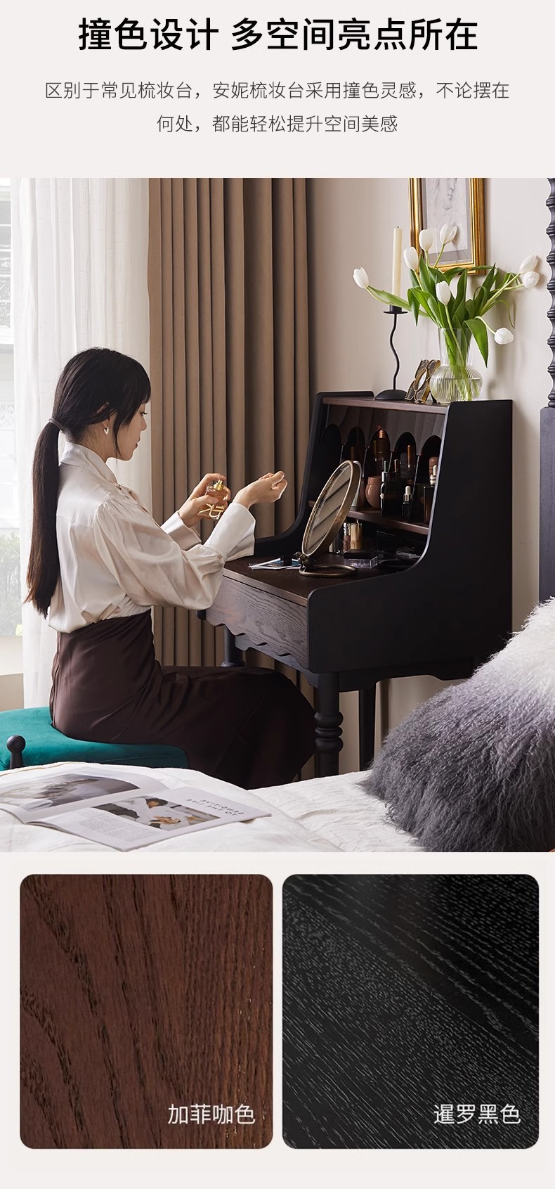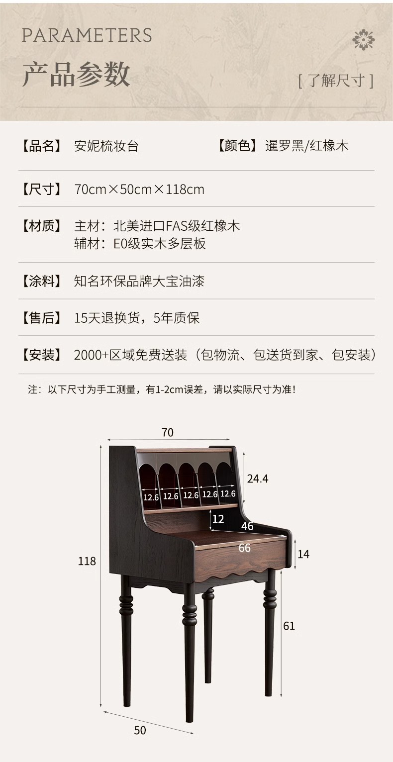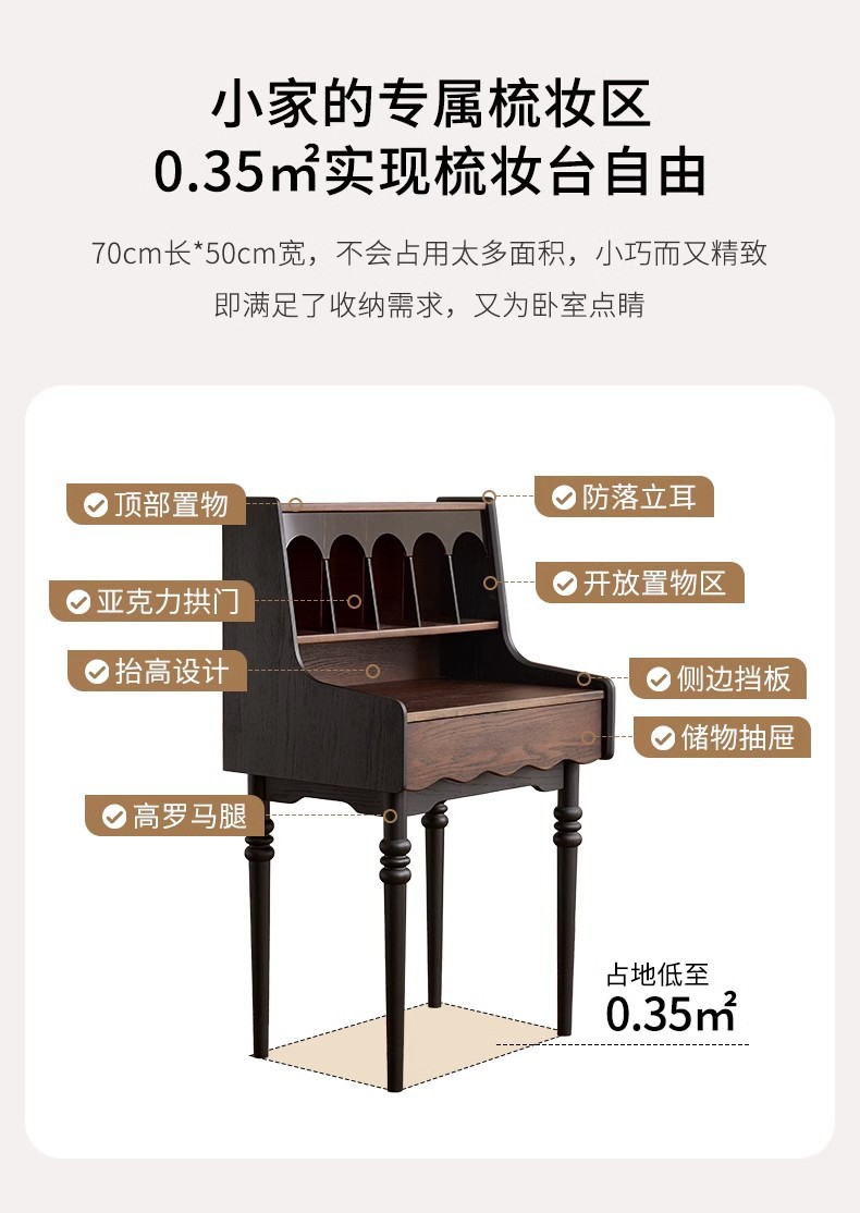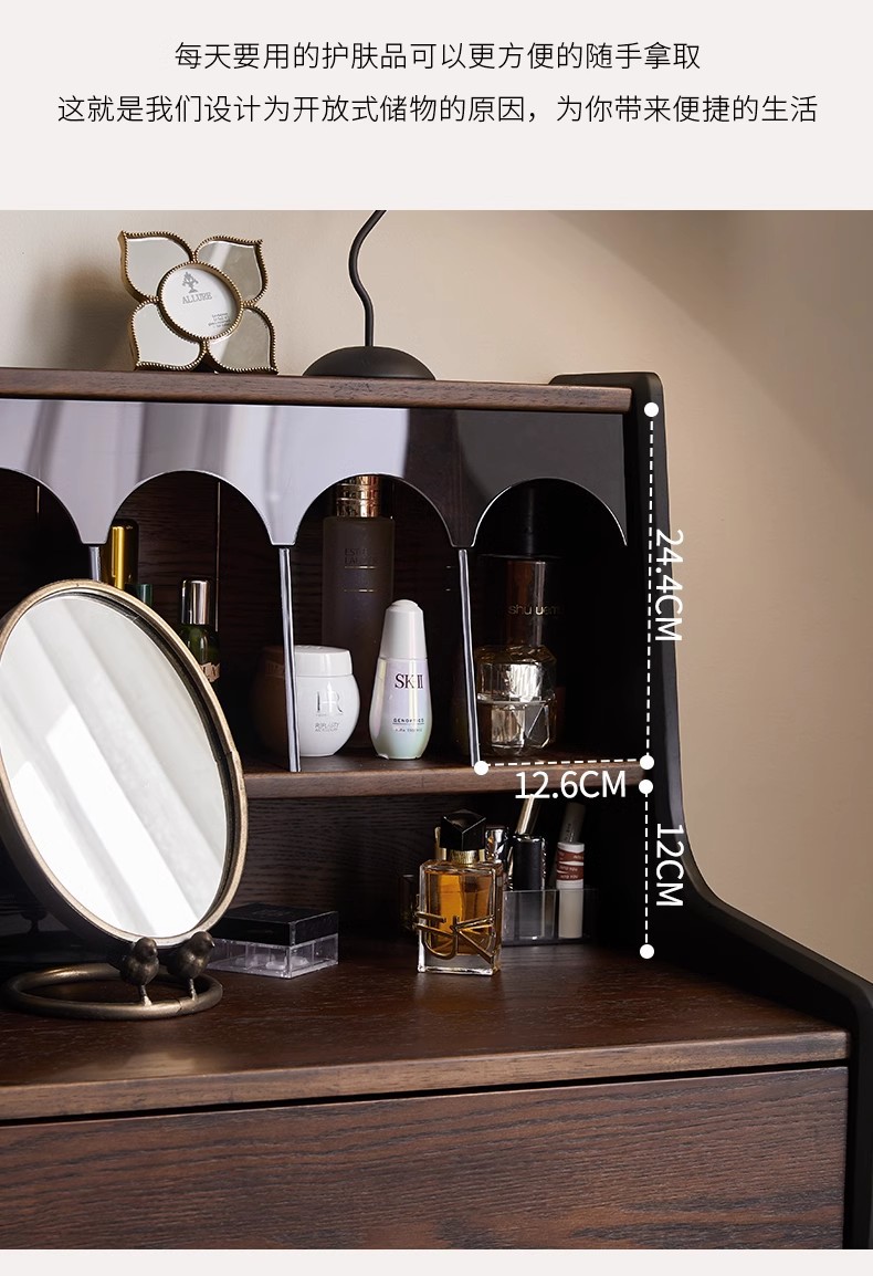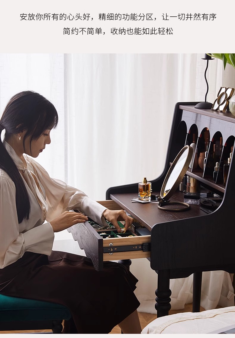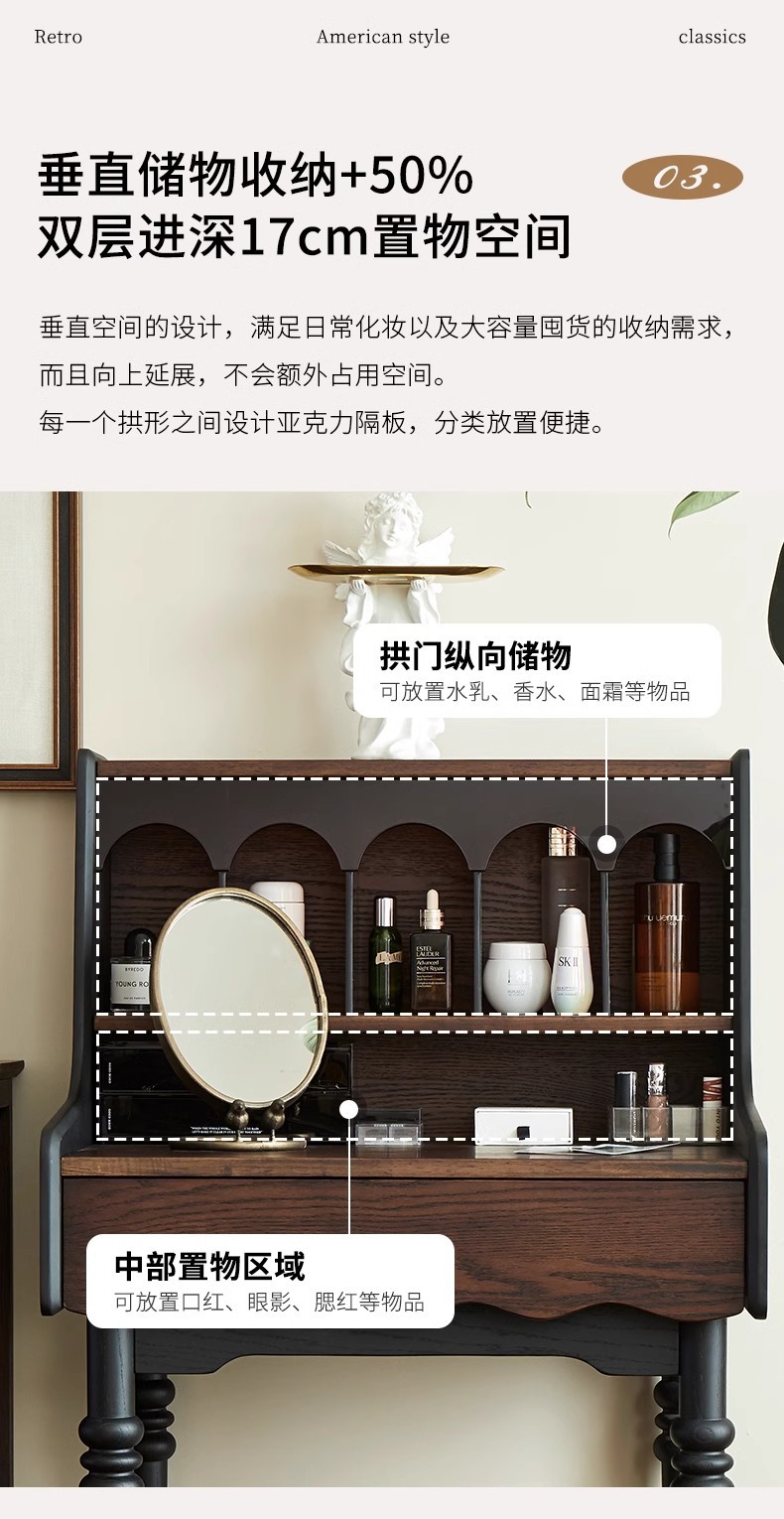 프랑스 복고풍 단단한 나무 드레싱 테이블 작은 아파트 침실 현대 간단한 침대 옆 테이블 저장 랙 골동품 메이크업 테이블