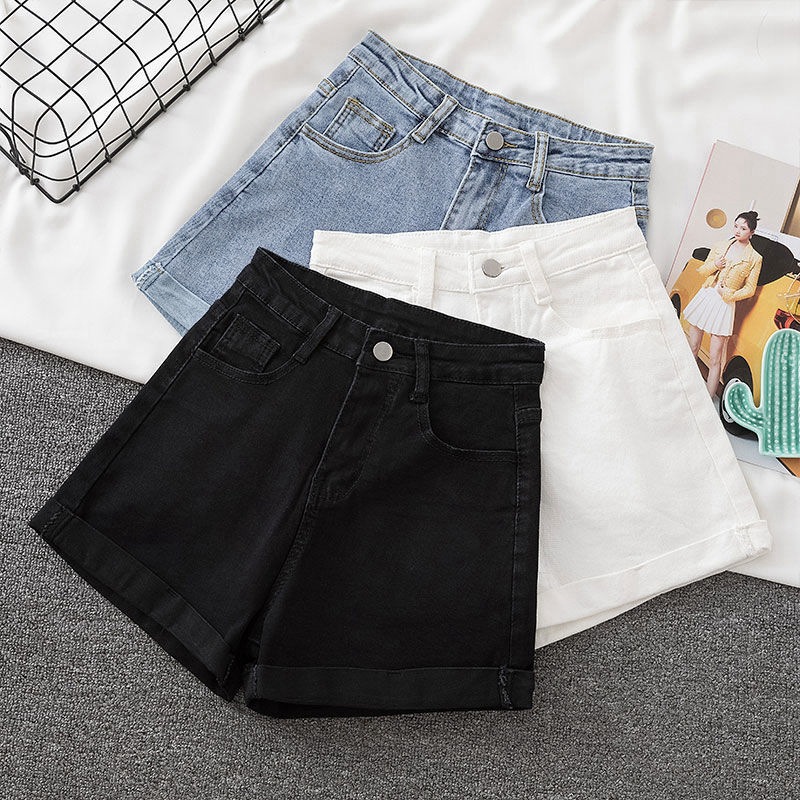여름 높은 허리 데님 반바지 여성의 2021 새로운 캐주얼 느슨한 슬리밍 플러스 사이즈 넓은 다리 컬 A 자형 핫 바지