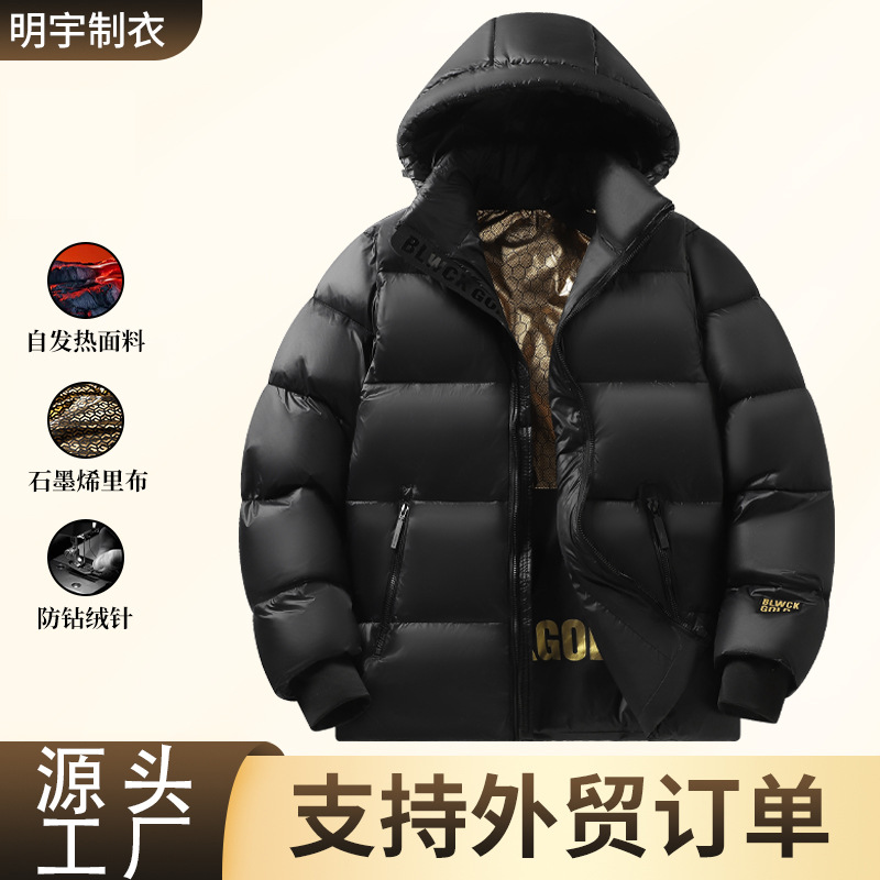 국경 간 블랙 골드 다운 재킷 남성 길고 짧은 패션 브랜드 느슨한 GB 커플 후드 재킷 겨울 폭발 도매