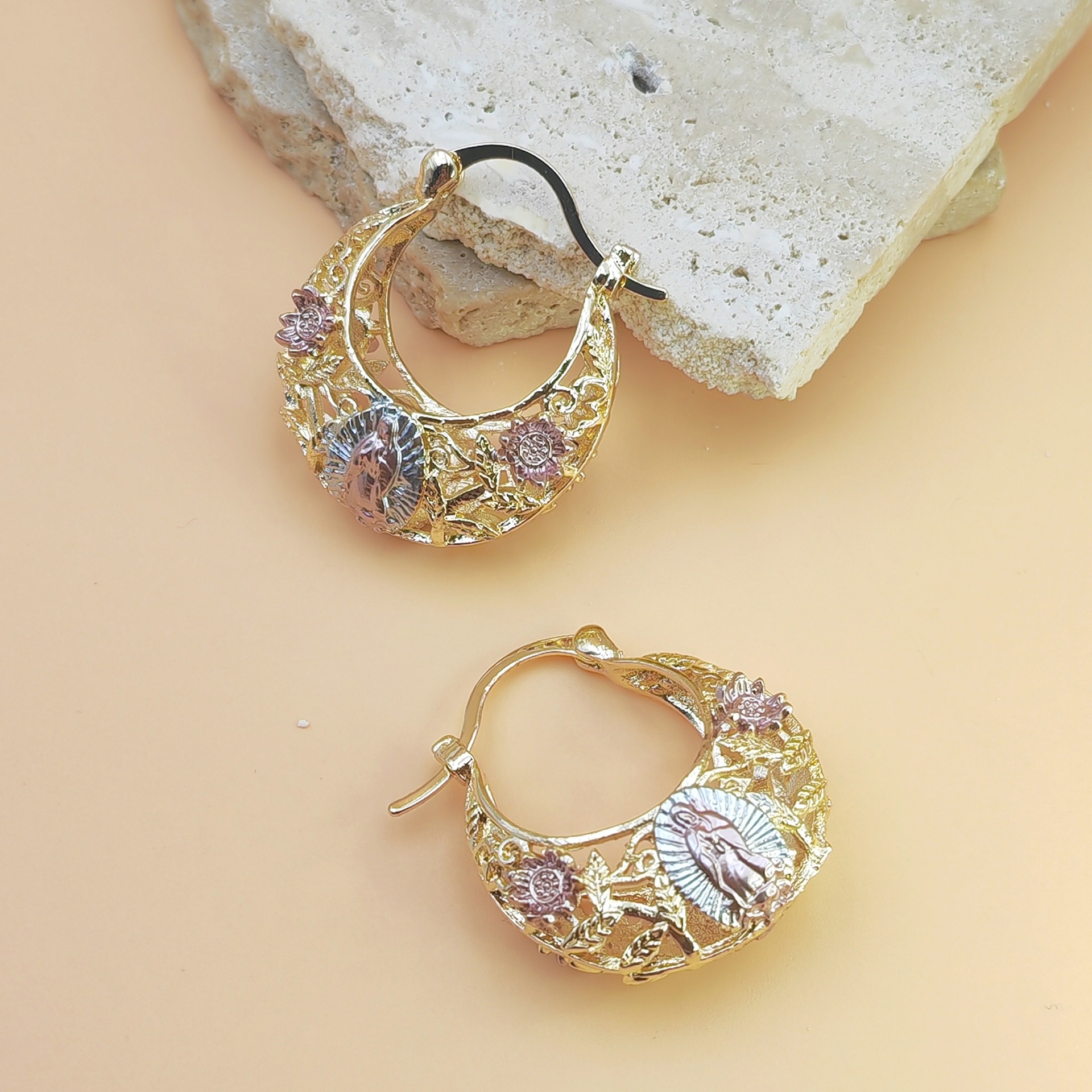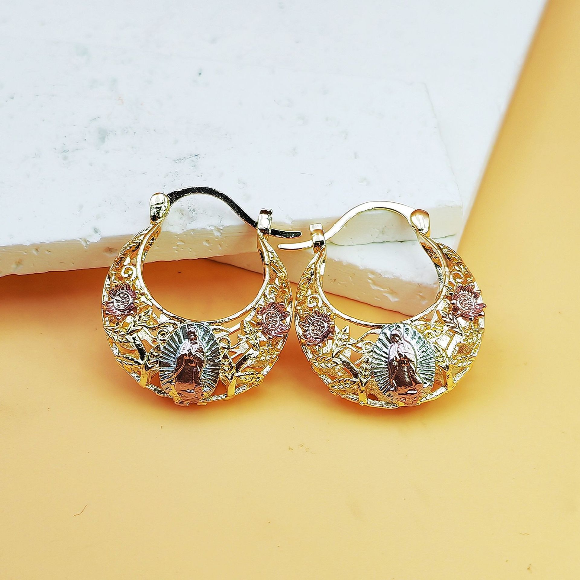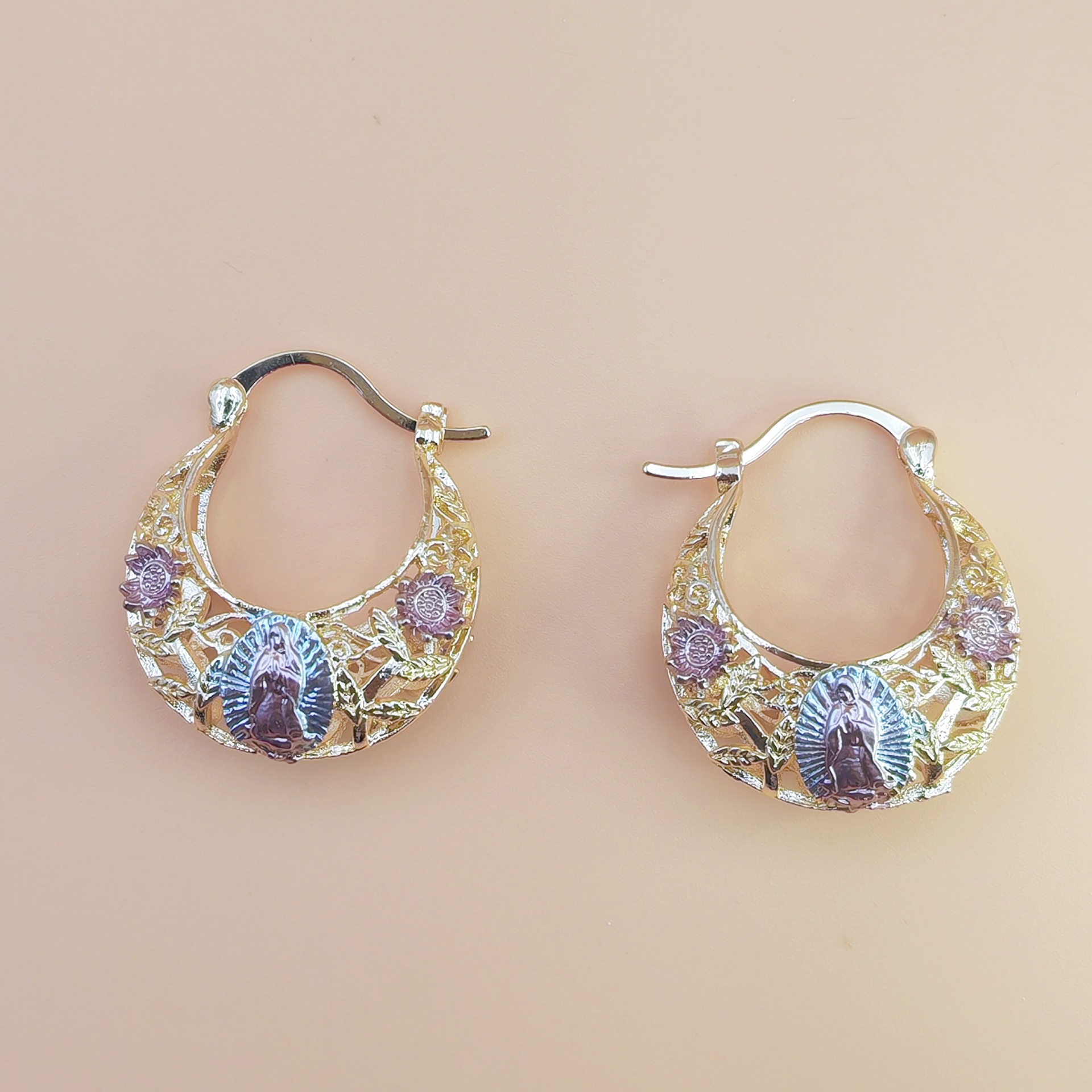 유럽과 미국 스타일의 과장된 패션 심플한 원형 빈티지 성모 귀걸이 고급 귀걸이 도매