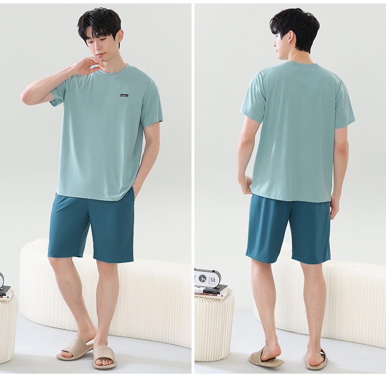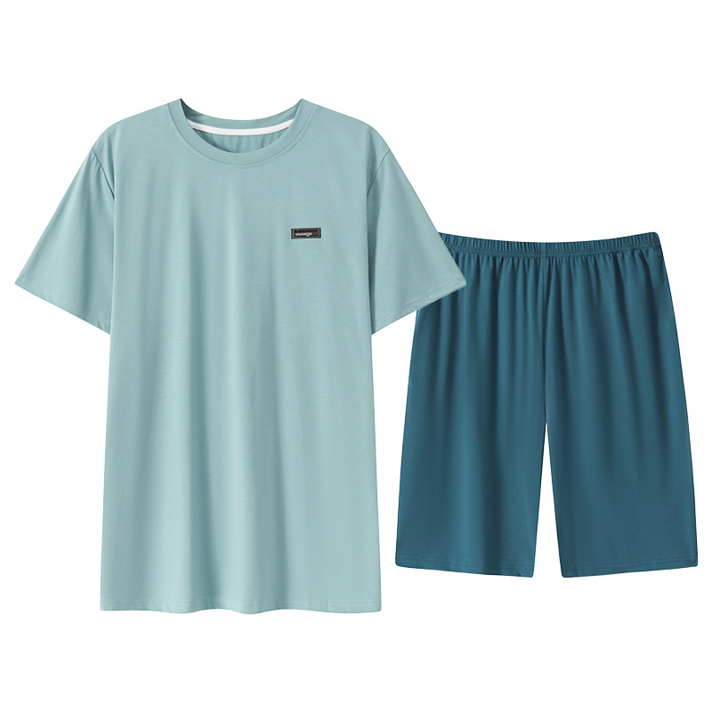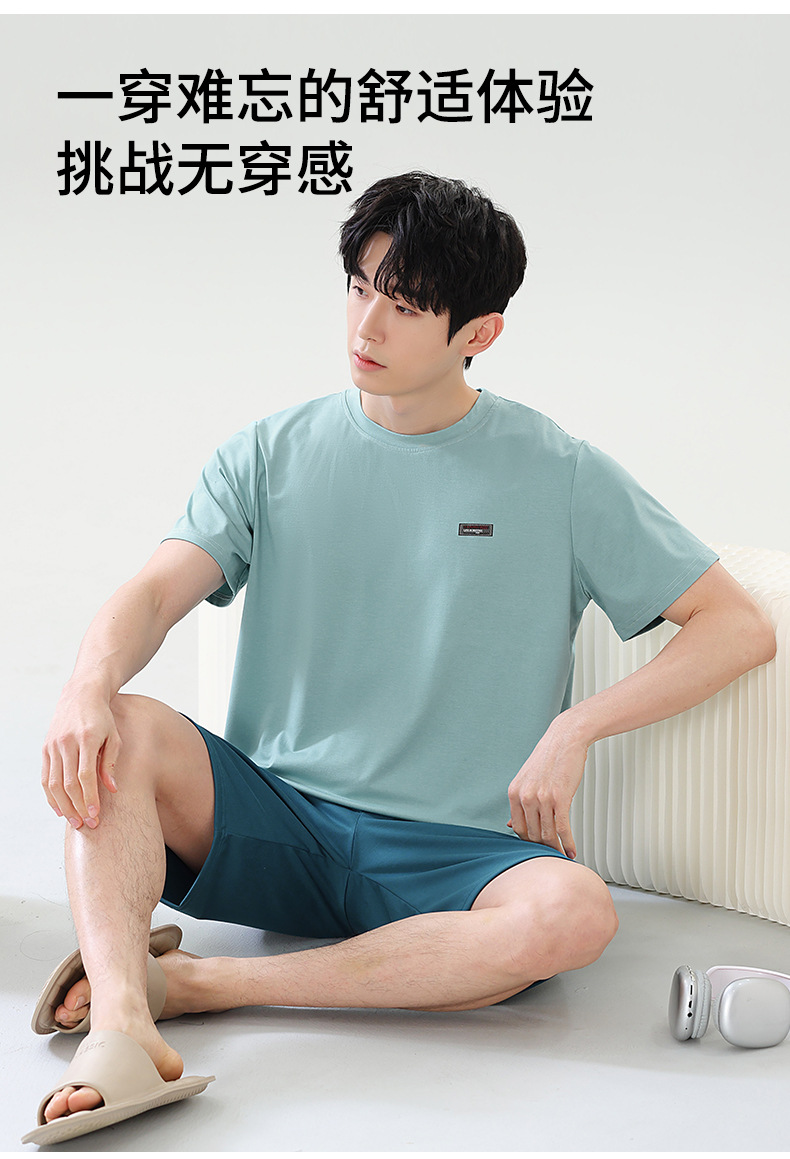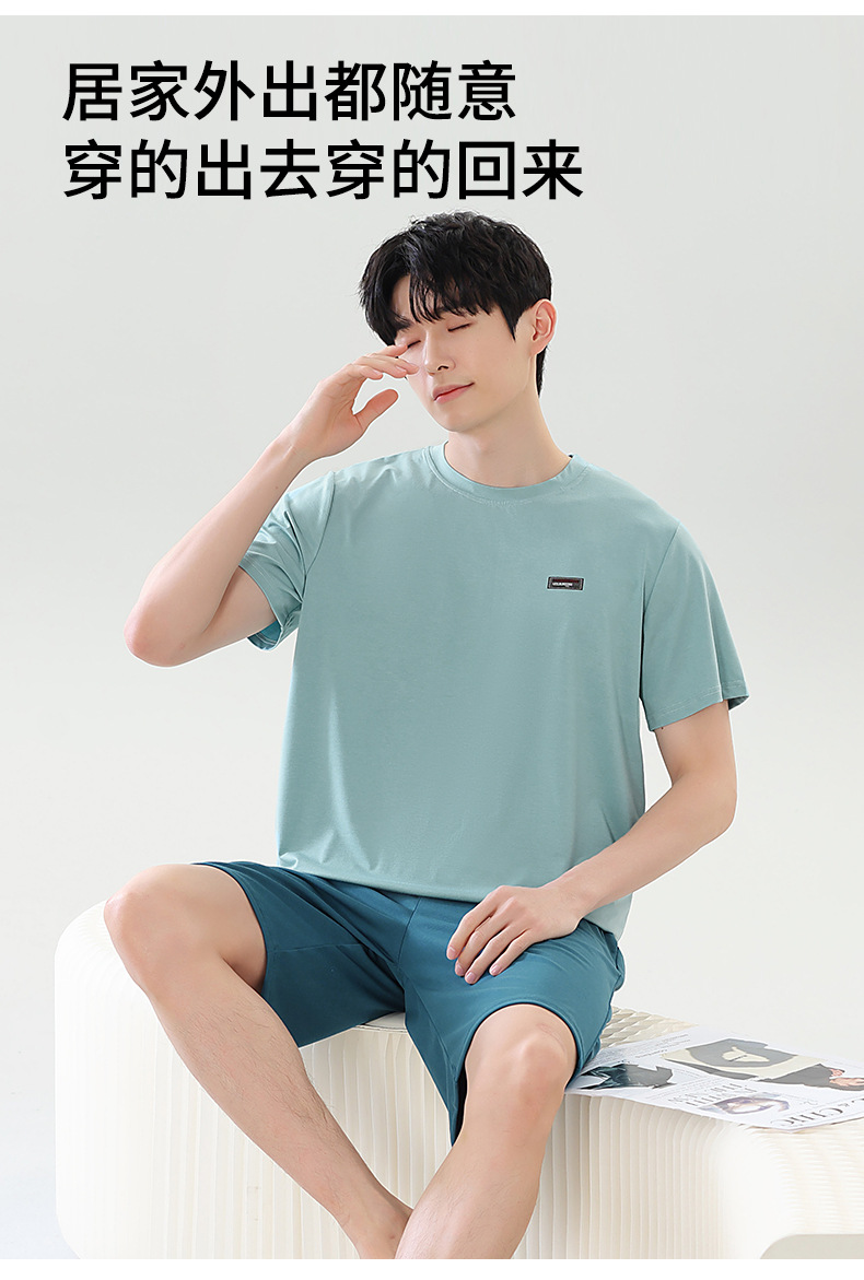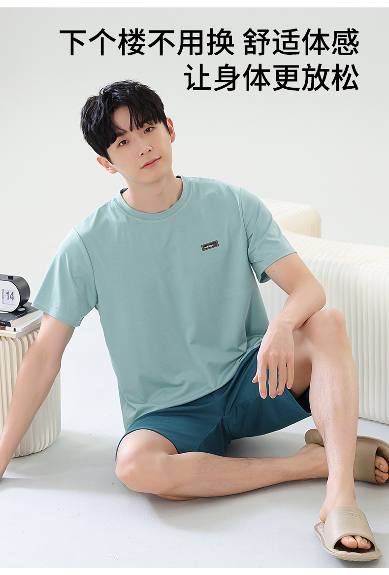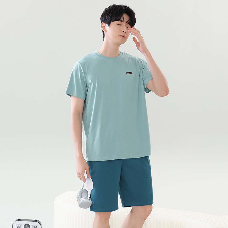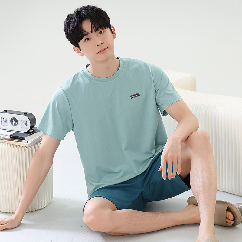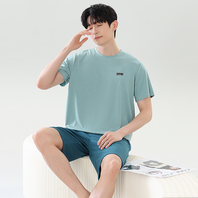 여름 새로운 잠옷 남자 라이브 핫 캐주얼 간단한 라운드 넥 세트 반팔 홈 의류 남성용 여름 쿨