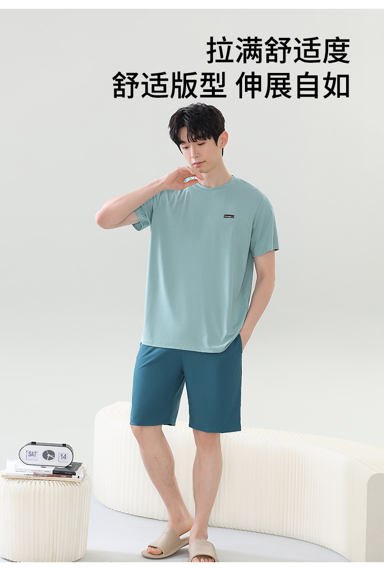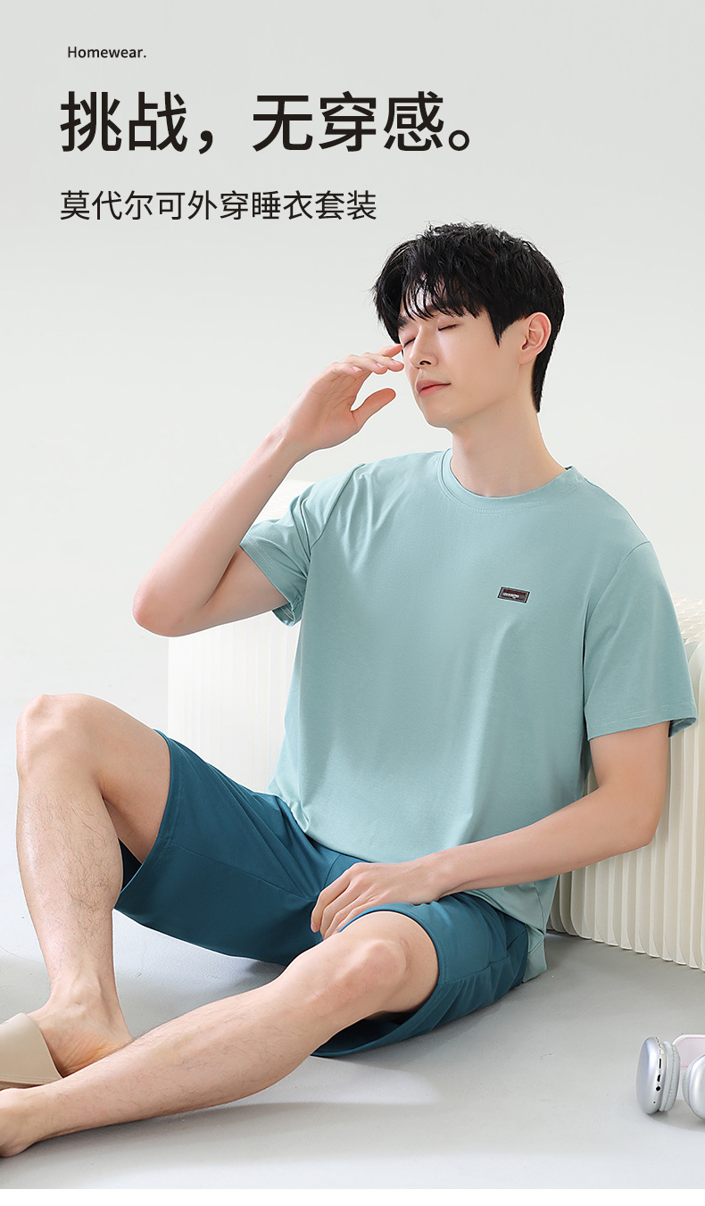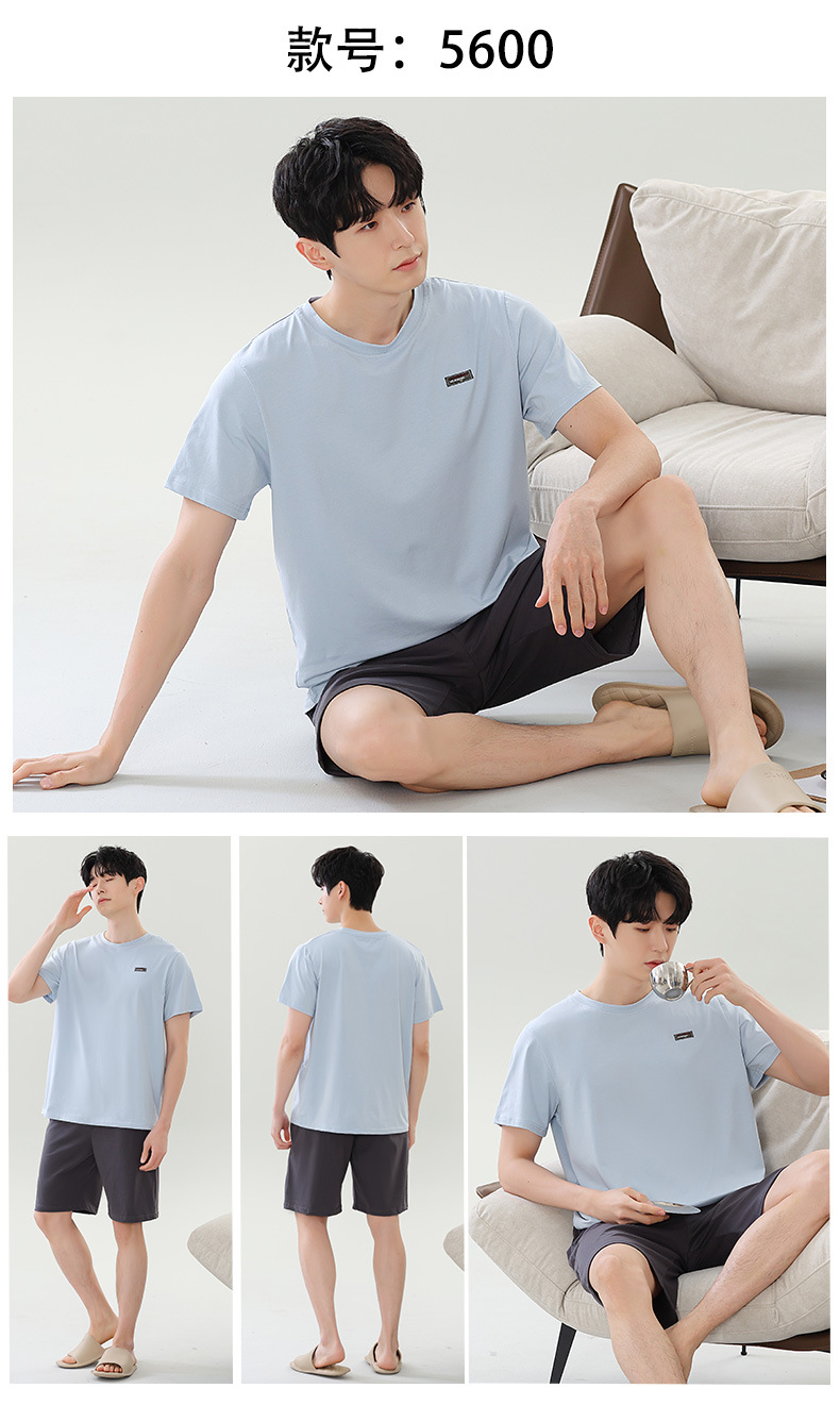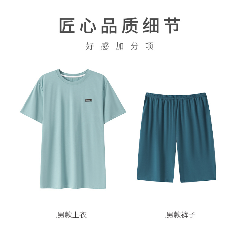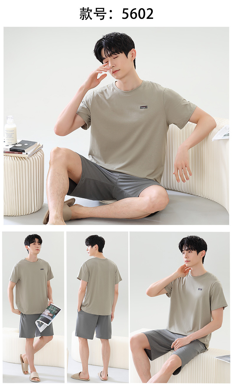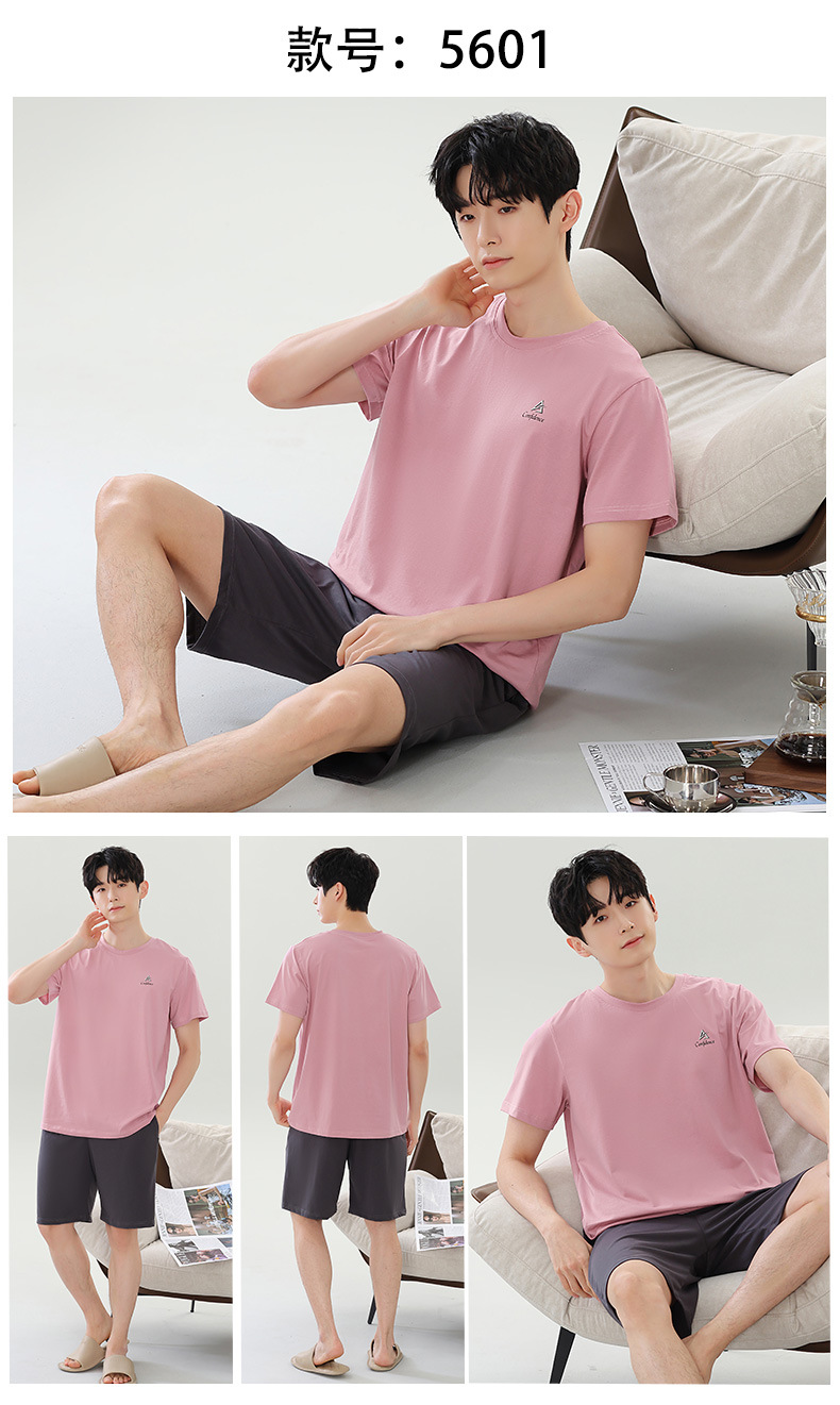 여름 새로운 잠옷 남자 라이브 핫 캐주얼 간단한 라운드 넥 세트 반팔 홈 의류 남성용 여름 쿨