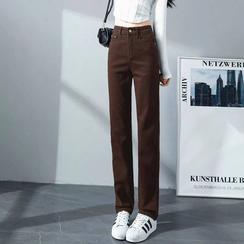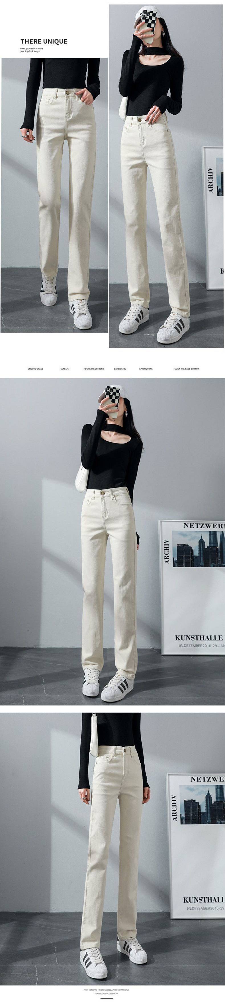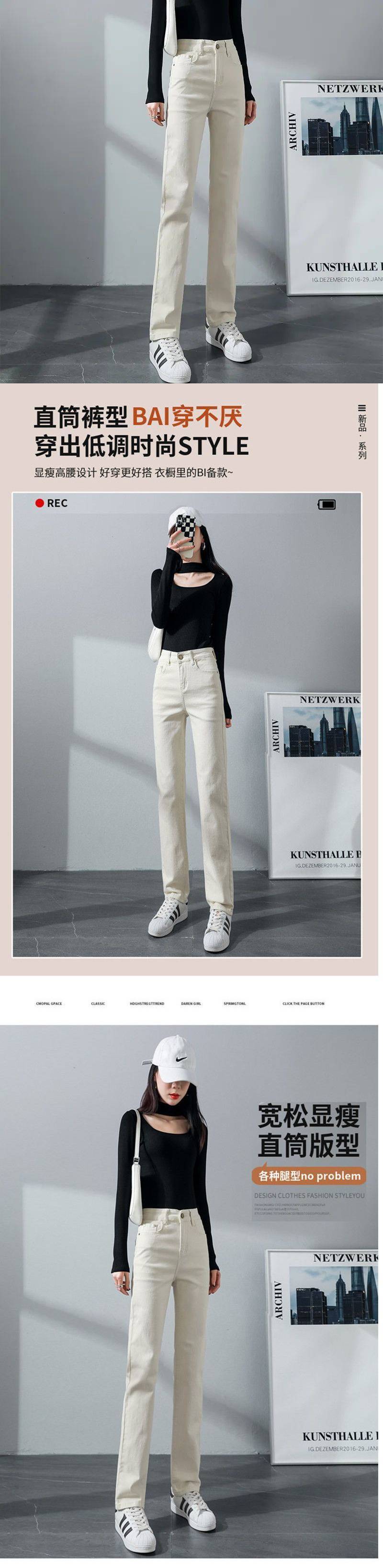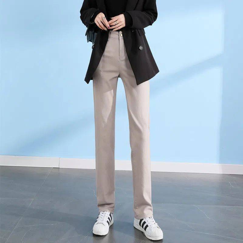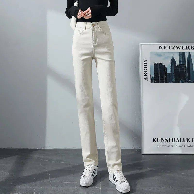 탄성 아이보리 청바지 여성의 2025 년 봄 새로운 도착 느슨한 슬리밍 스트레이트 팬츠 슬림 핏 키 큰 연기 튜브 바지