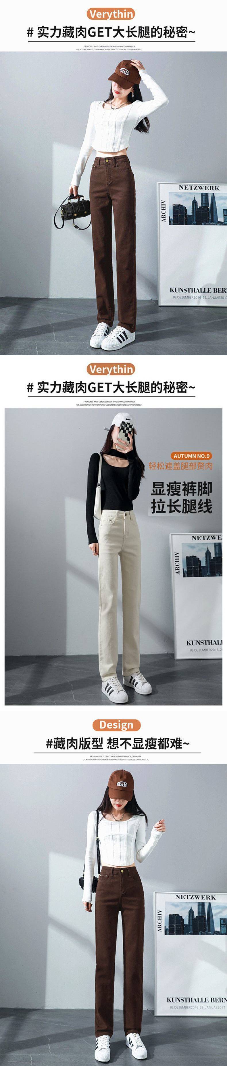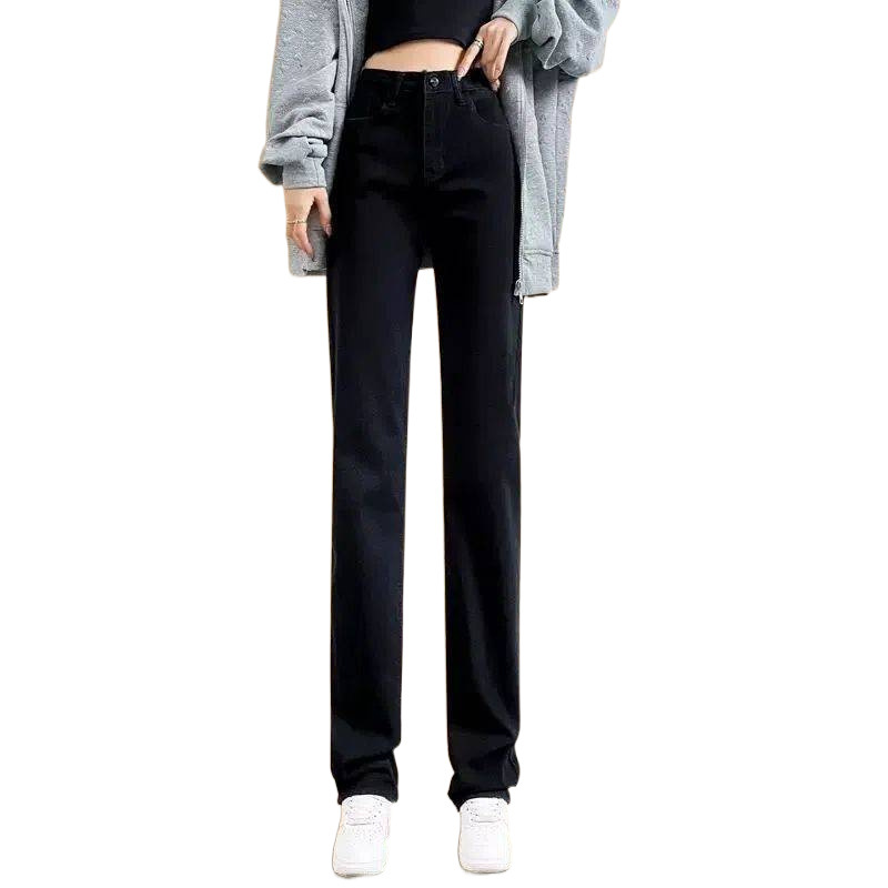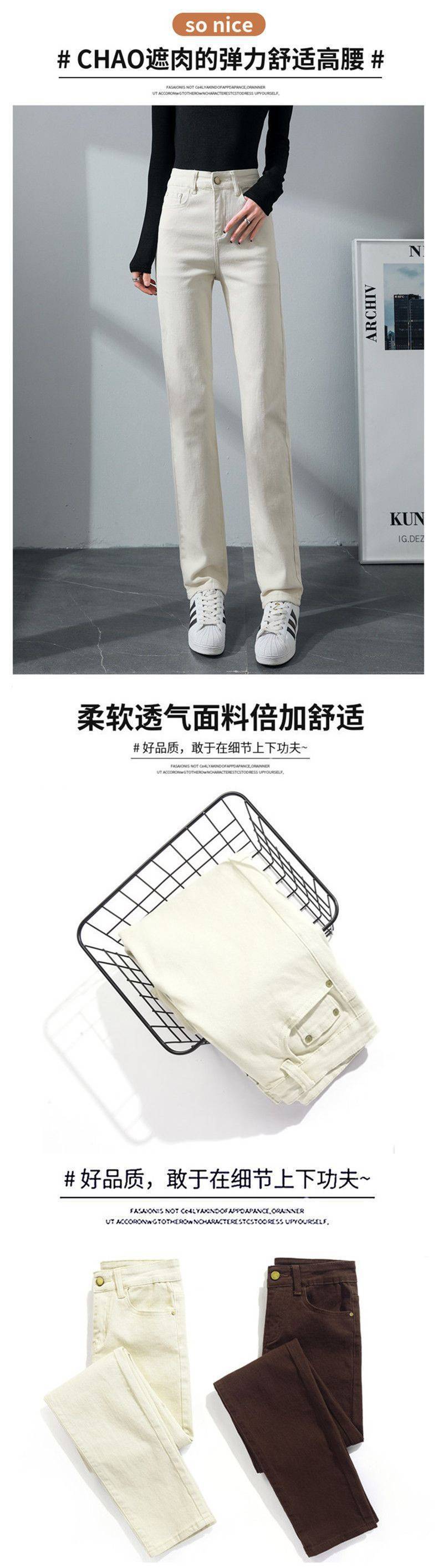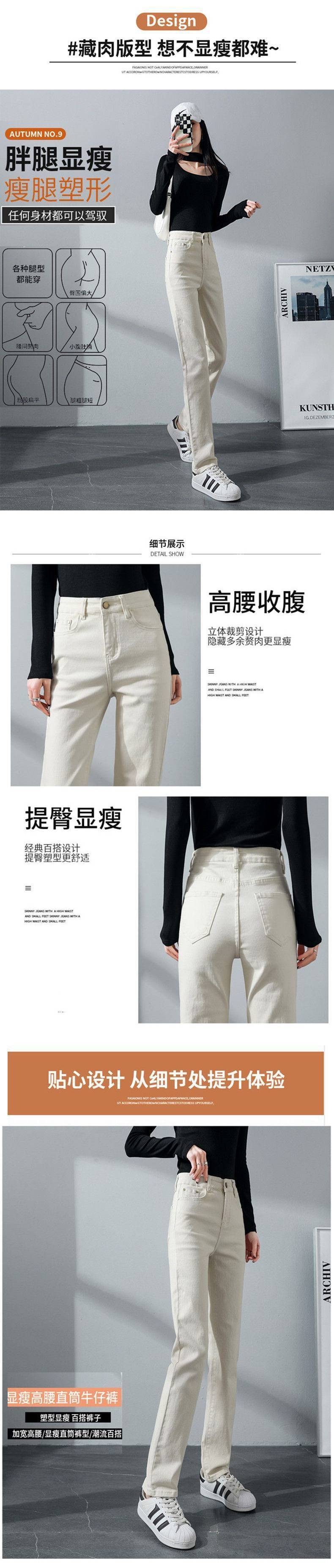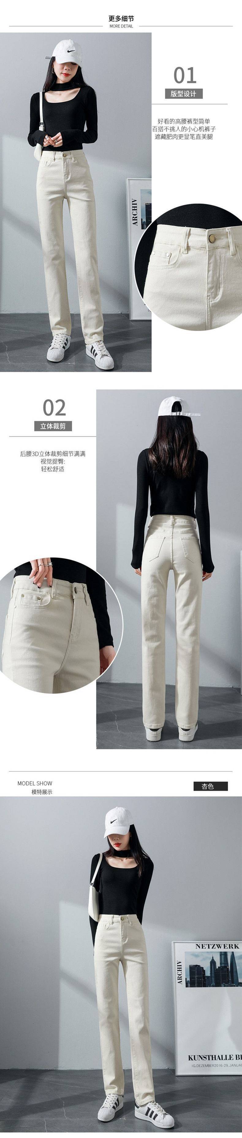 탄성 아이보리 청바지 여성의 2025 년 봄 새로운 도착 느슨한 슬리밍 스트레이트 팬츠 슬림 핏 키 큰 연기 튜브 바지