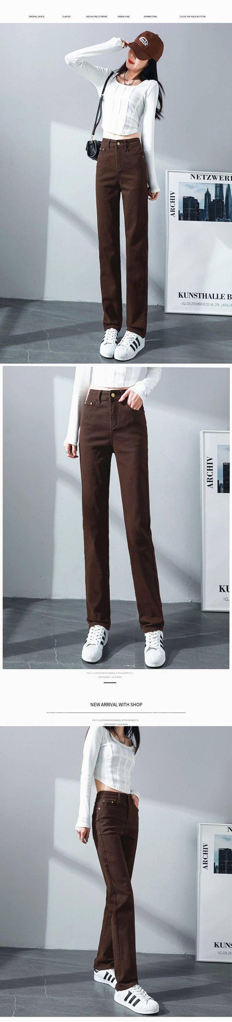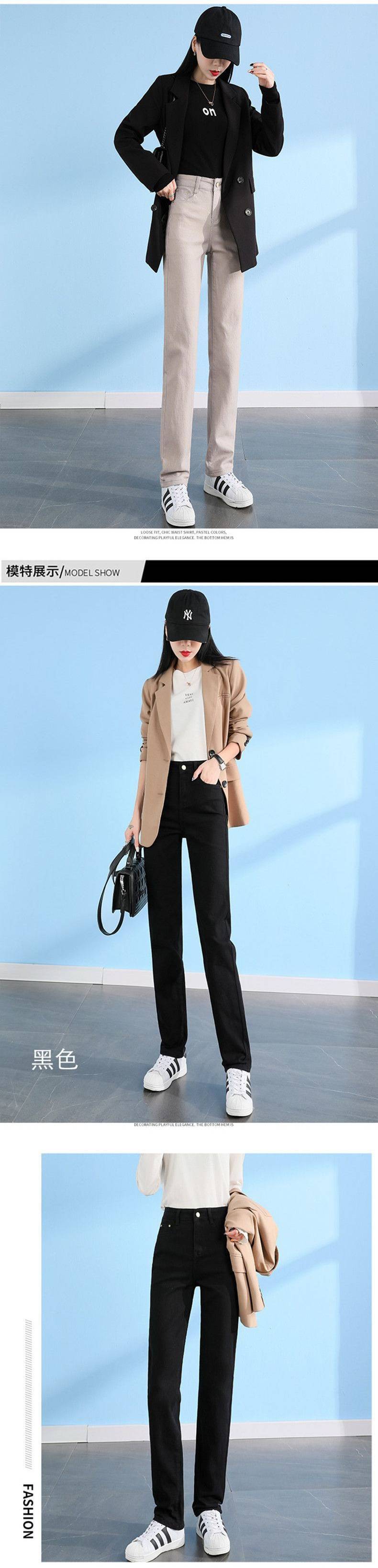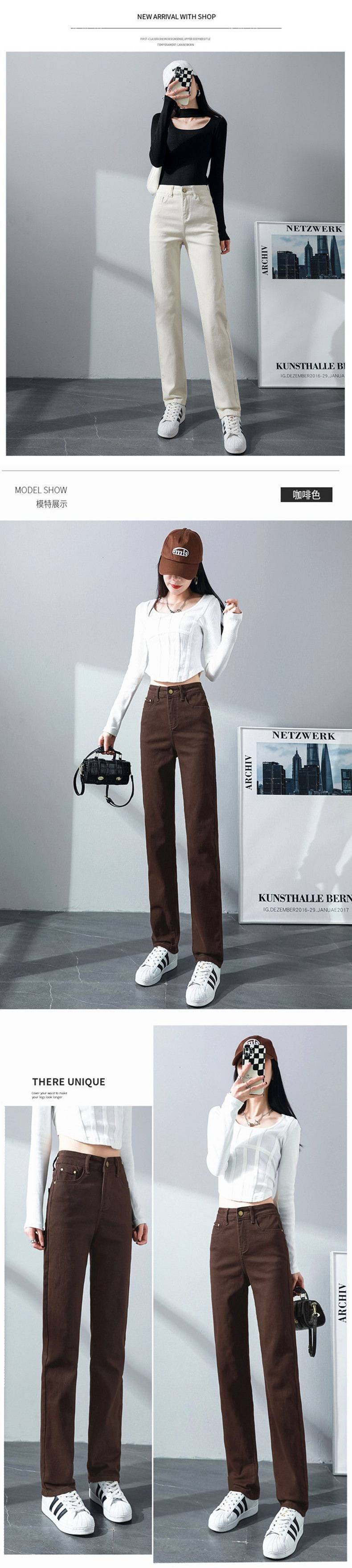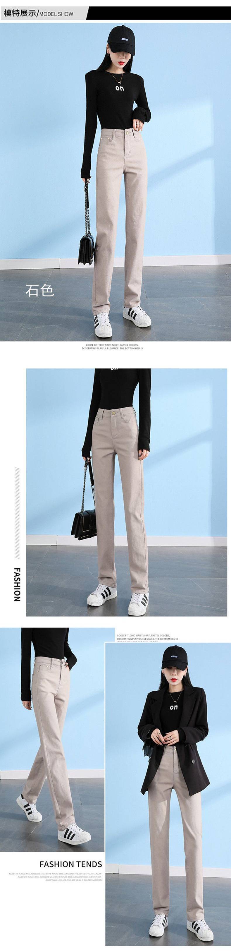 탄성 아이보리 청바지 여성의 2025 년 봄 새로운 도착 느슨한 슬리밍 스트레이트 팬츠 슬림 핏 키 큰 연기 튜브 바지