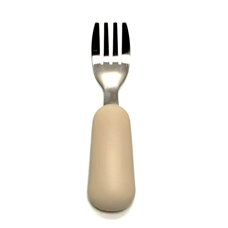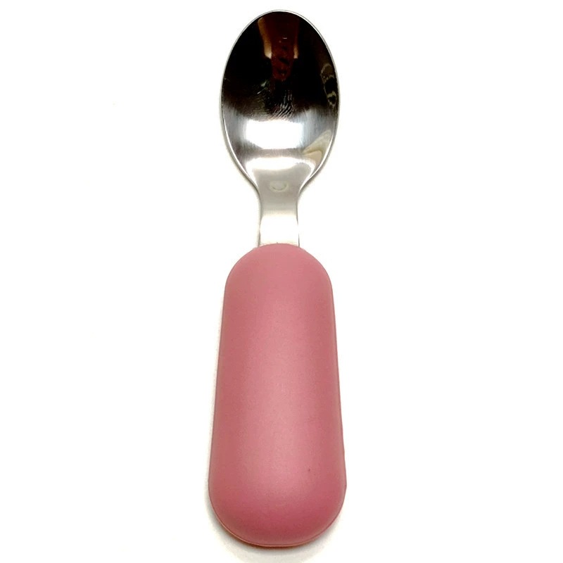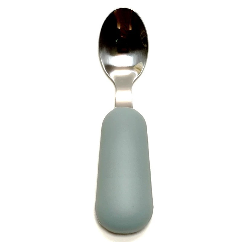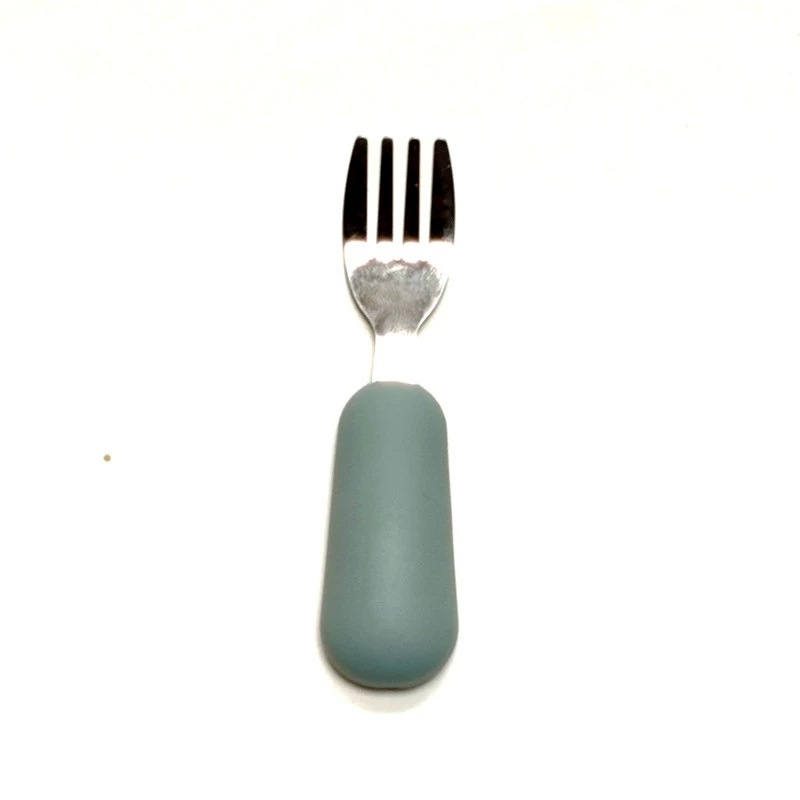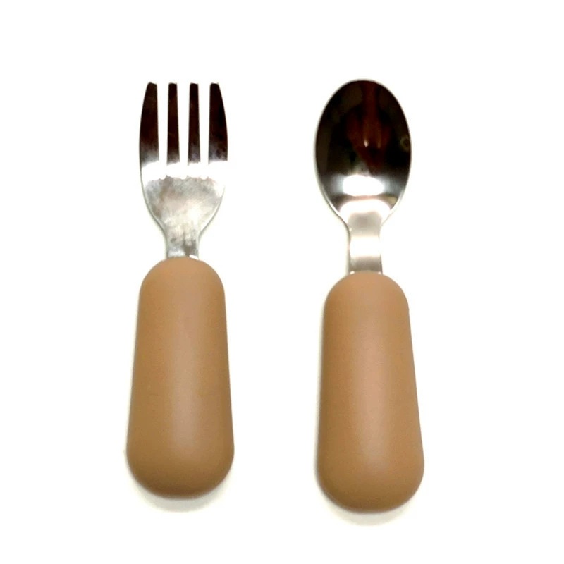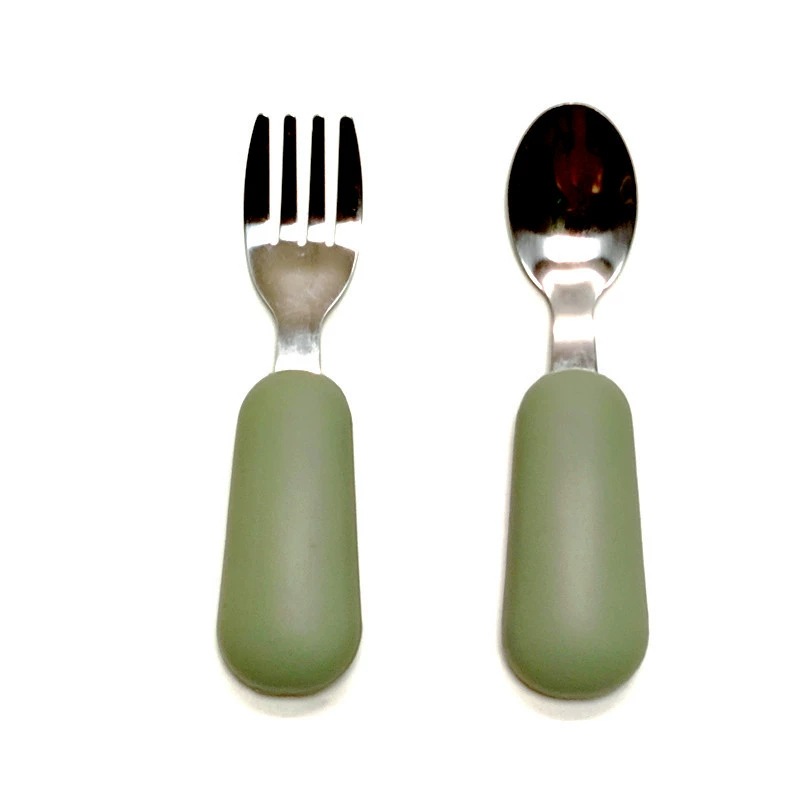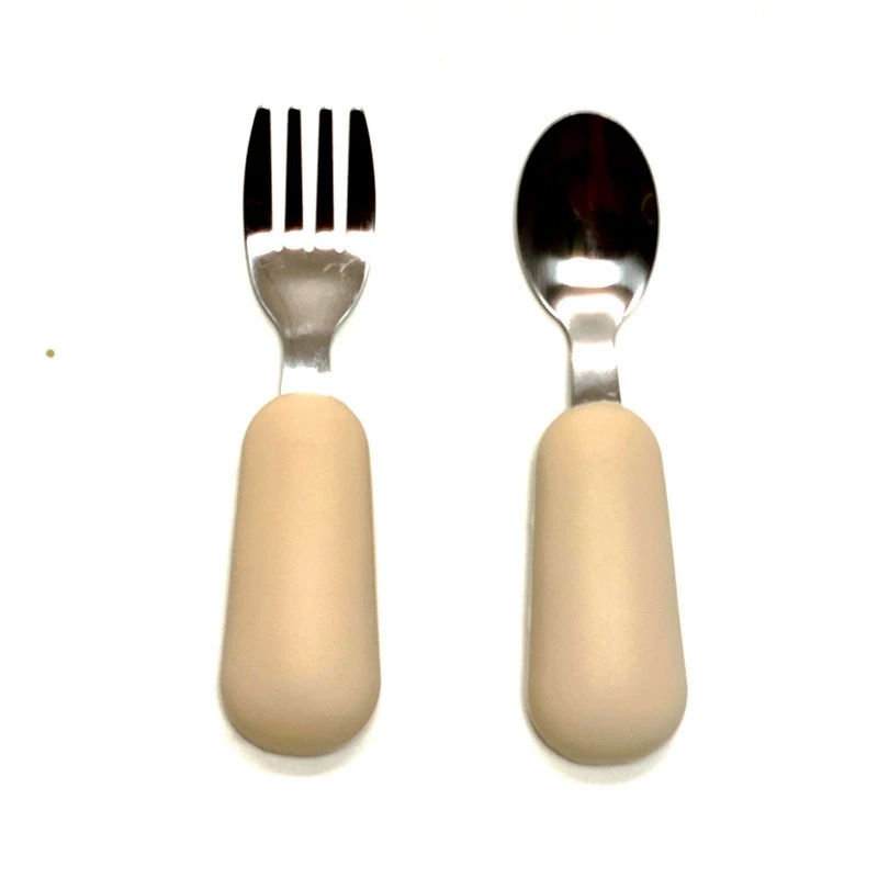 공장 직접 판매 아기 먹는 훈련 실리콘 스테인레스 스틸 포크와 스푼 아기 짧은 손잡이 어린이 식기 휴대용 스푼과 포크