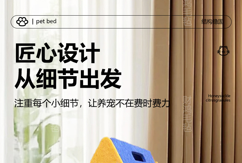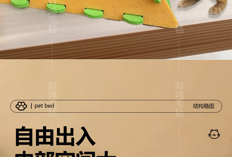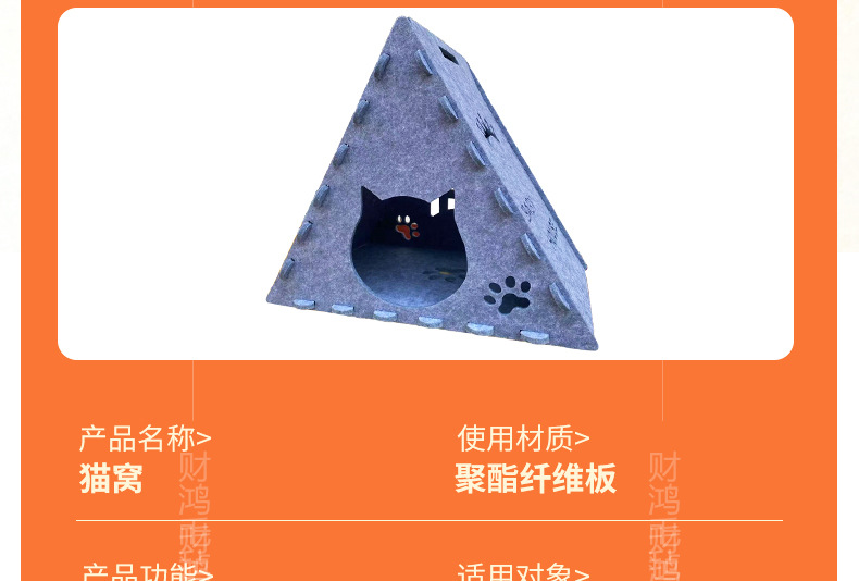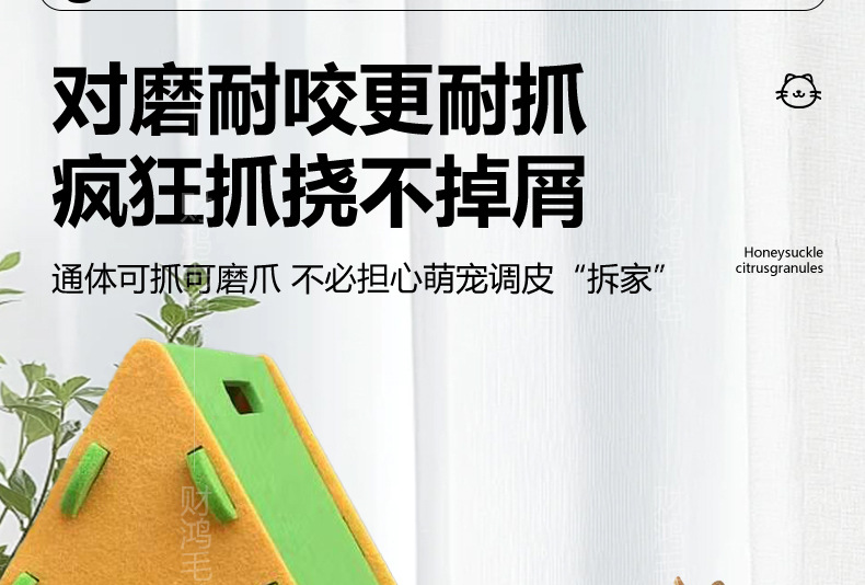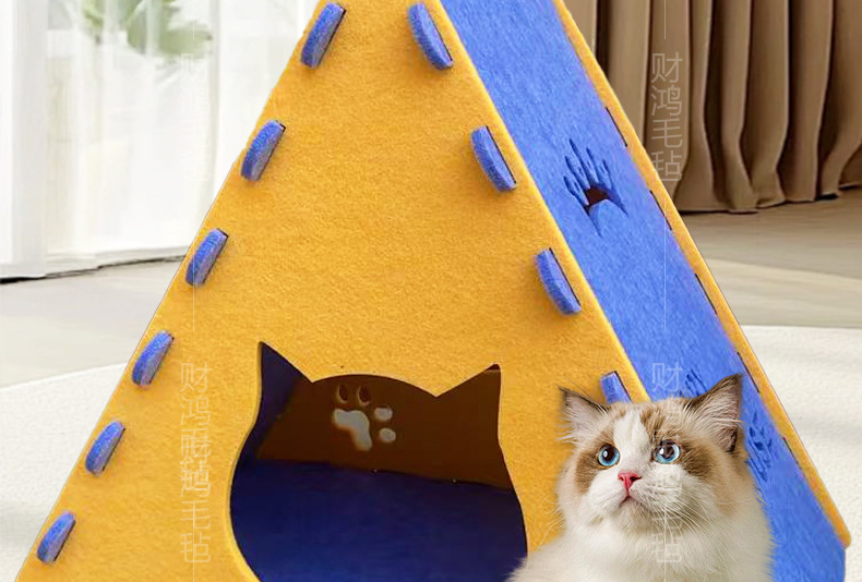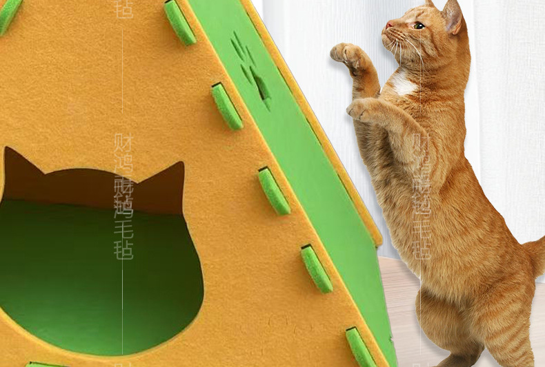 고양이 집 스타일의 고양이 스크래치 보드, 내마모성, 부스러기 없음, 소파 긁힘 방지, 삼각형 고양이 발톱 보드, 일체형 펠트 고양이 집