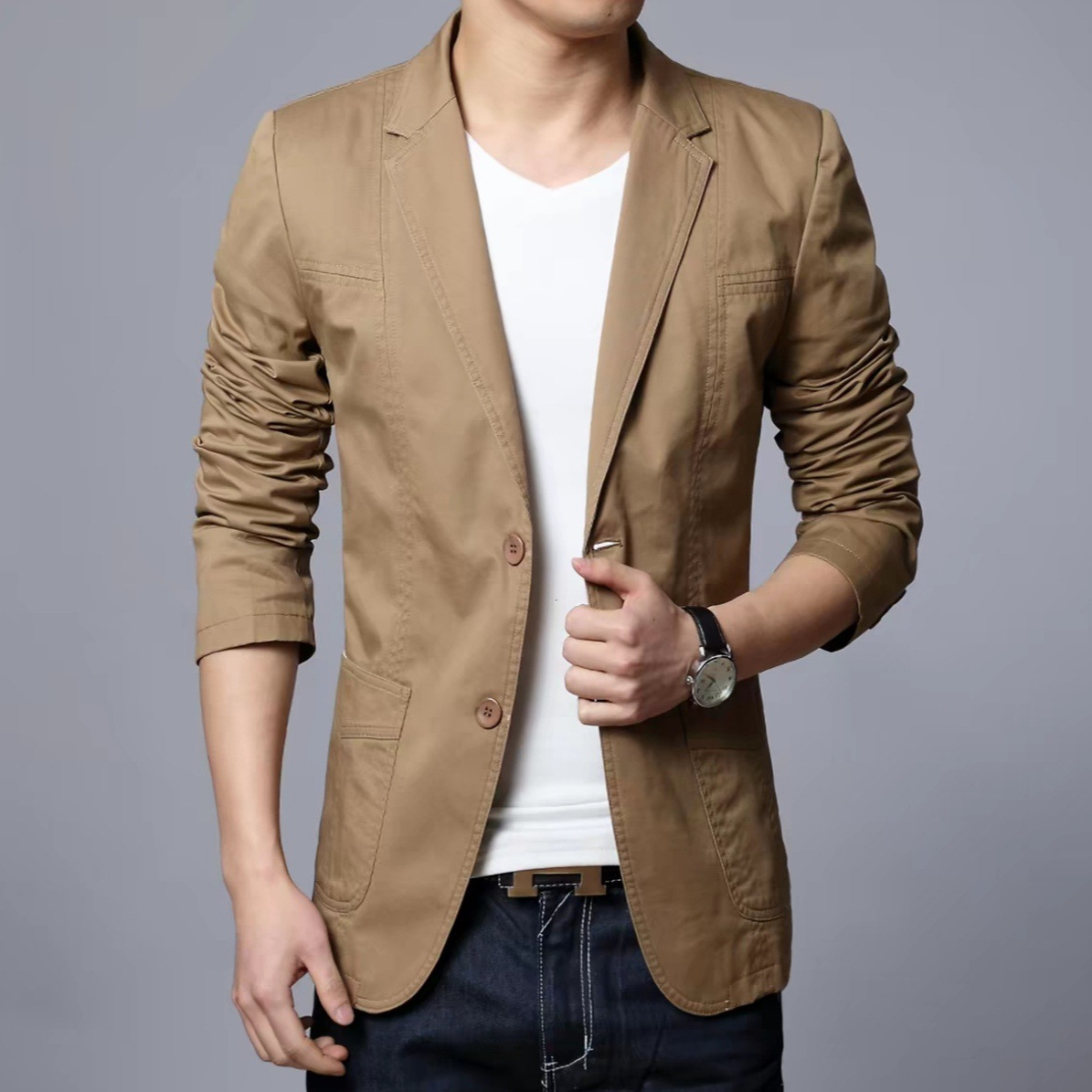 국경 간 폭발 봄과 가을 캐주얼 세척 코튼 작은 세트 남성 캐주얼 슬림 핏 세트 재킷 플러스 사이즈 원피스 패션