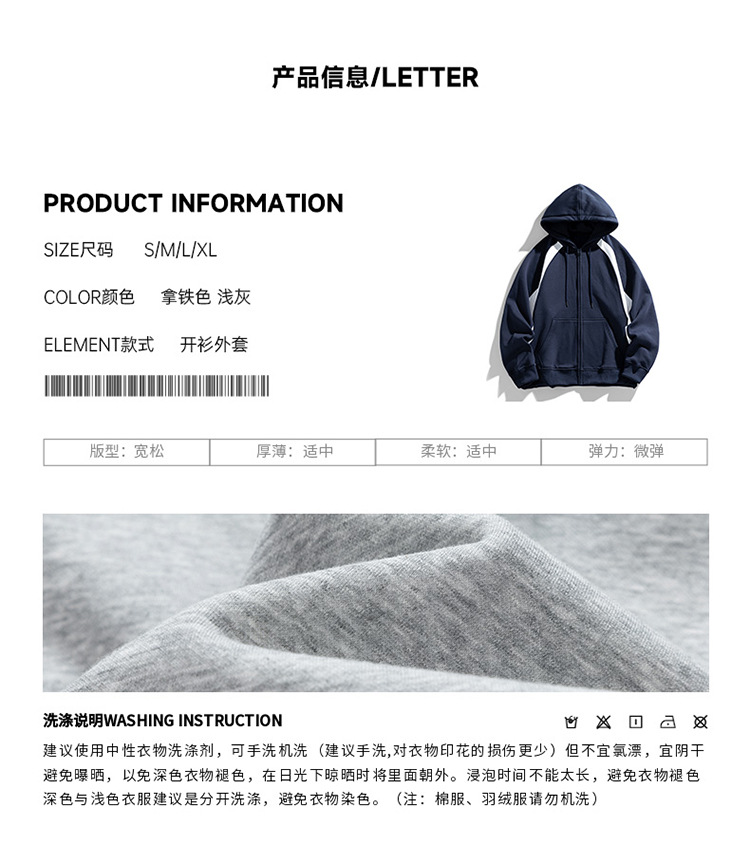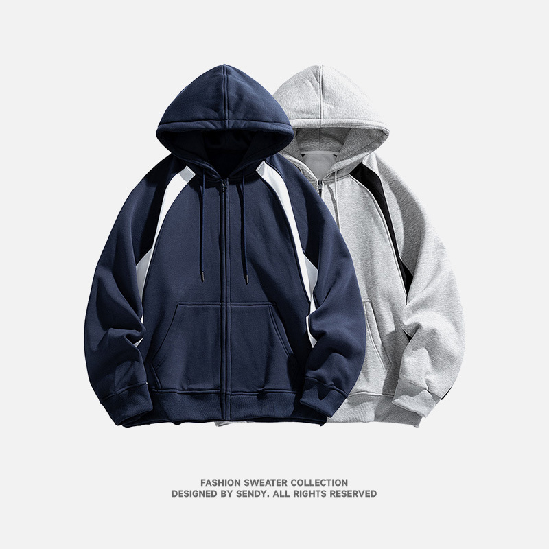 아메리칸 스타일 트렌디 브랜드 헤비 후드 스웨터 카디건 유니섹스 루즈 올 매치 캐주얼 남성 봄과 가을 뉴 자켓