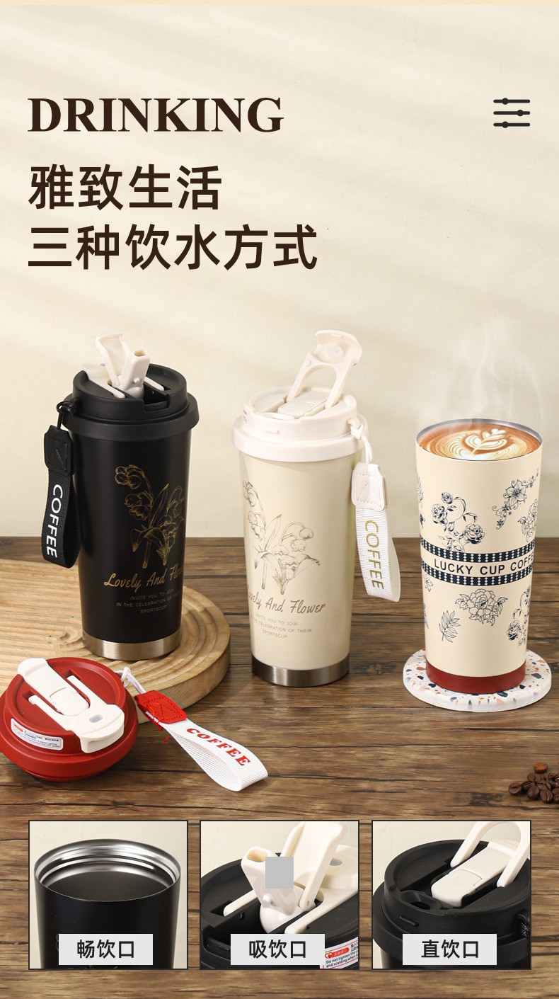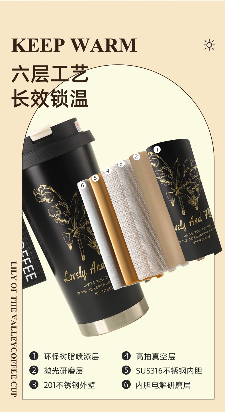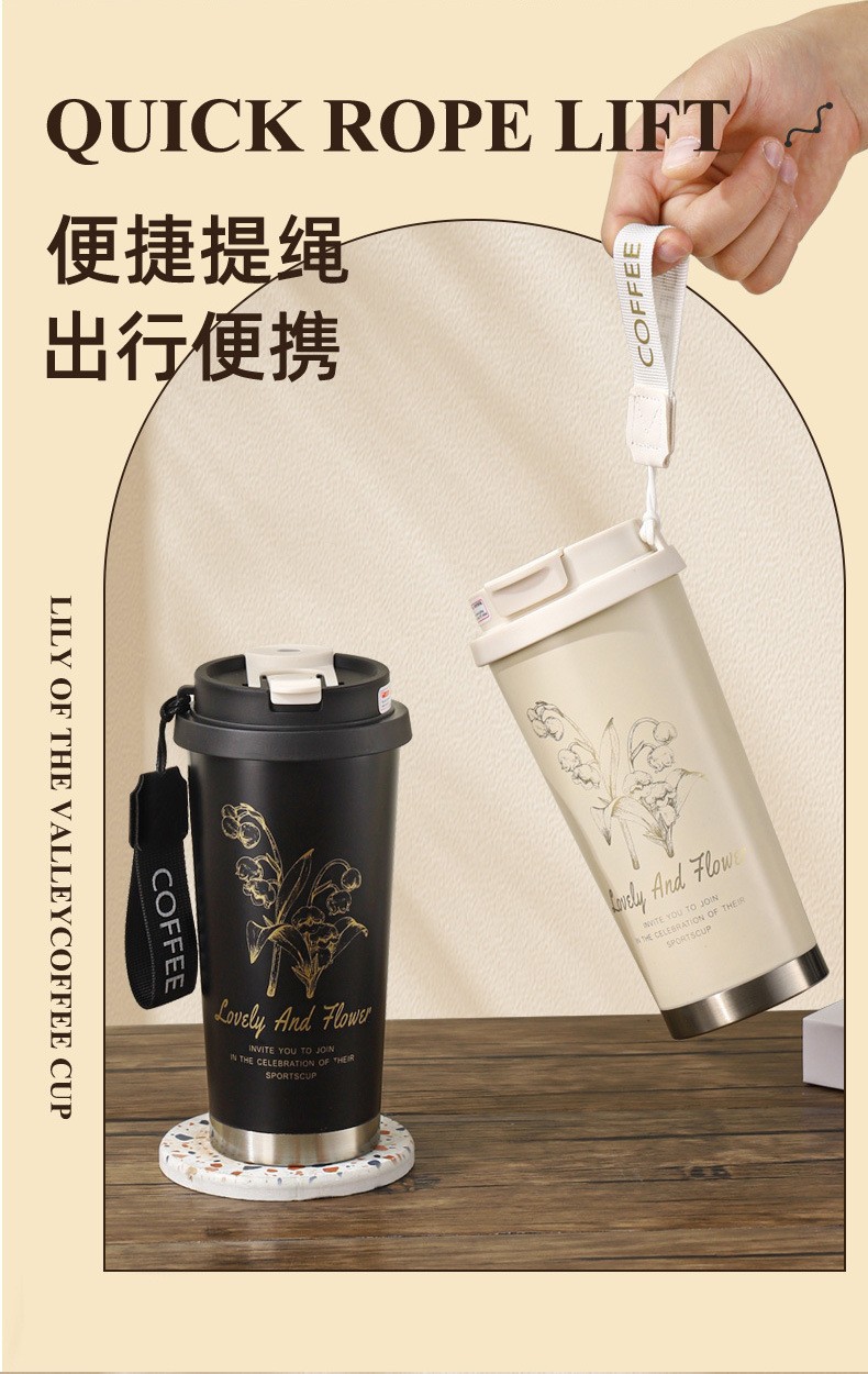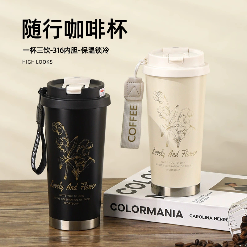 은방울꽃 316 스테인리스 보온병 고급스러운 이중 음료컵 고급 선물컵 사무실용 편리한 커피컵