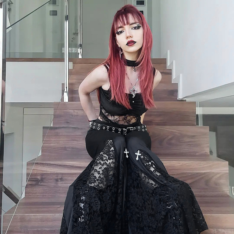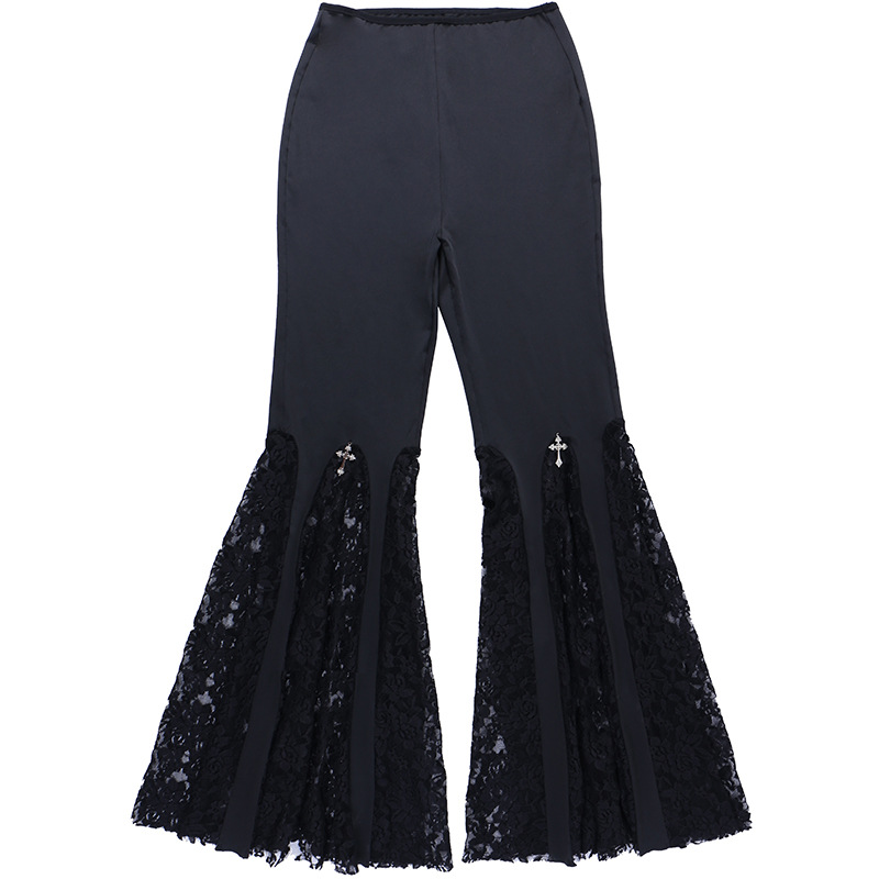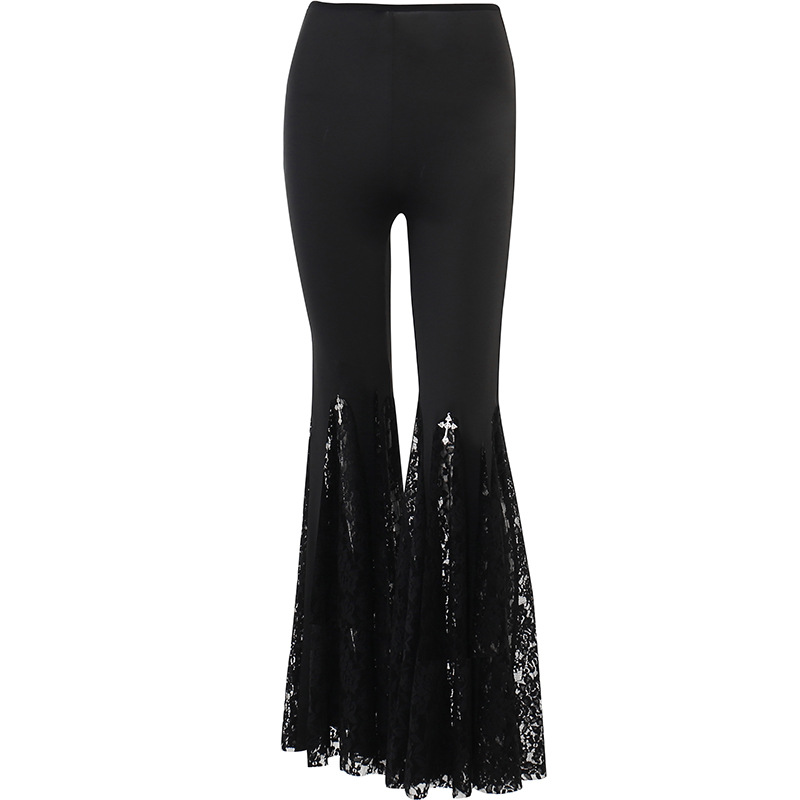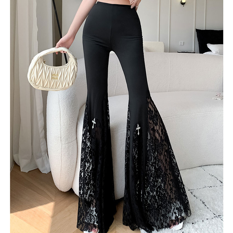 높은 허리 레이스 할로우 블랙 마이크로 바지 다크 펑크 스타일 가을 새로운 올 매치 스트레이트 바지 스파이스 걸스 혼