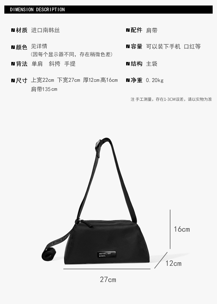 남한 실크 남녀공용 2025 신상 여름 고급 캐주얼 스포츠 숄더백 크로스백