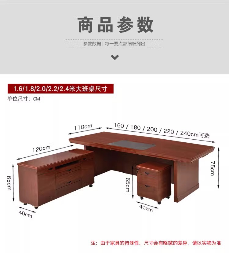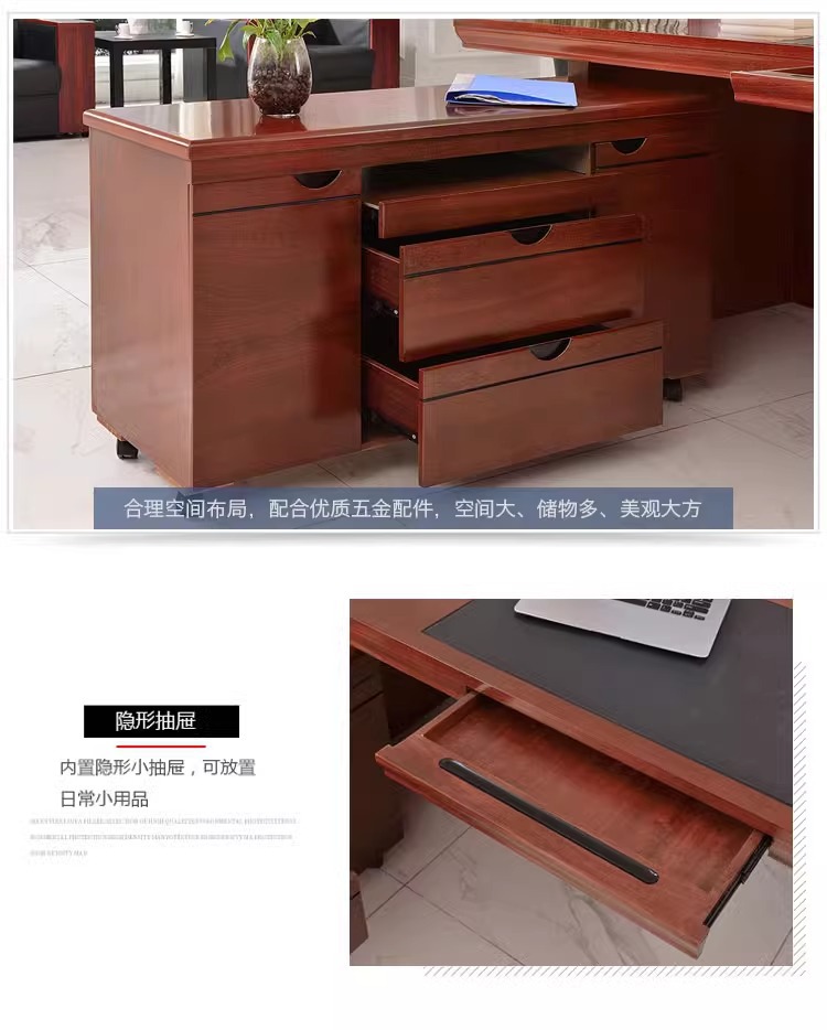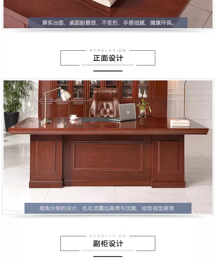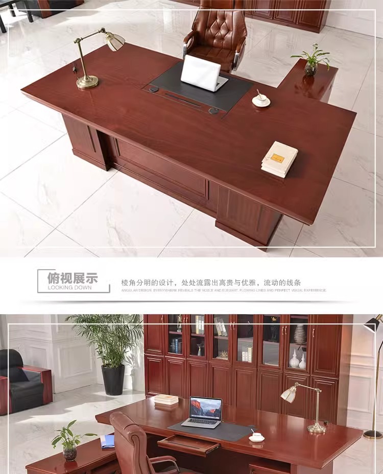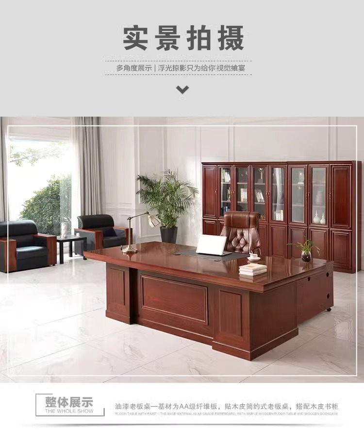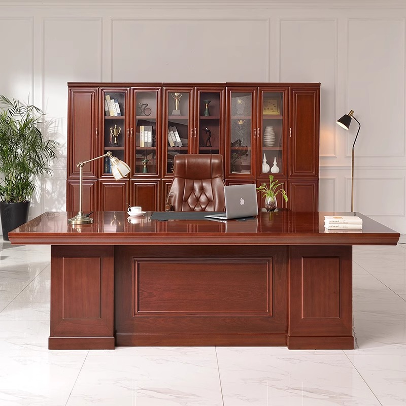 페인트칠한 목재 베니어 보스 책상, 사이드 캐비닛이 있는 새로운 중국 스타일 관리자 책상 및 의자 세트, 비즈니스 사무실 대형 책상