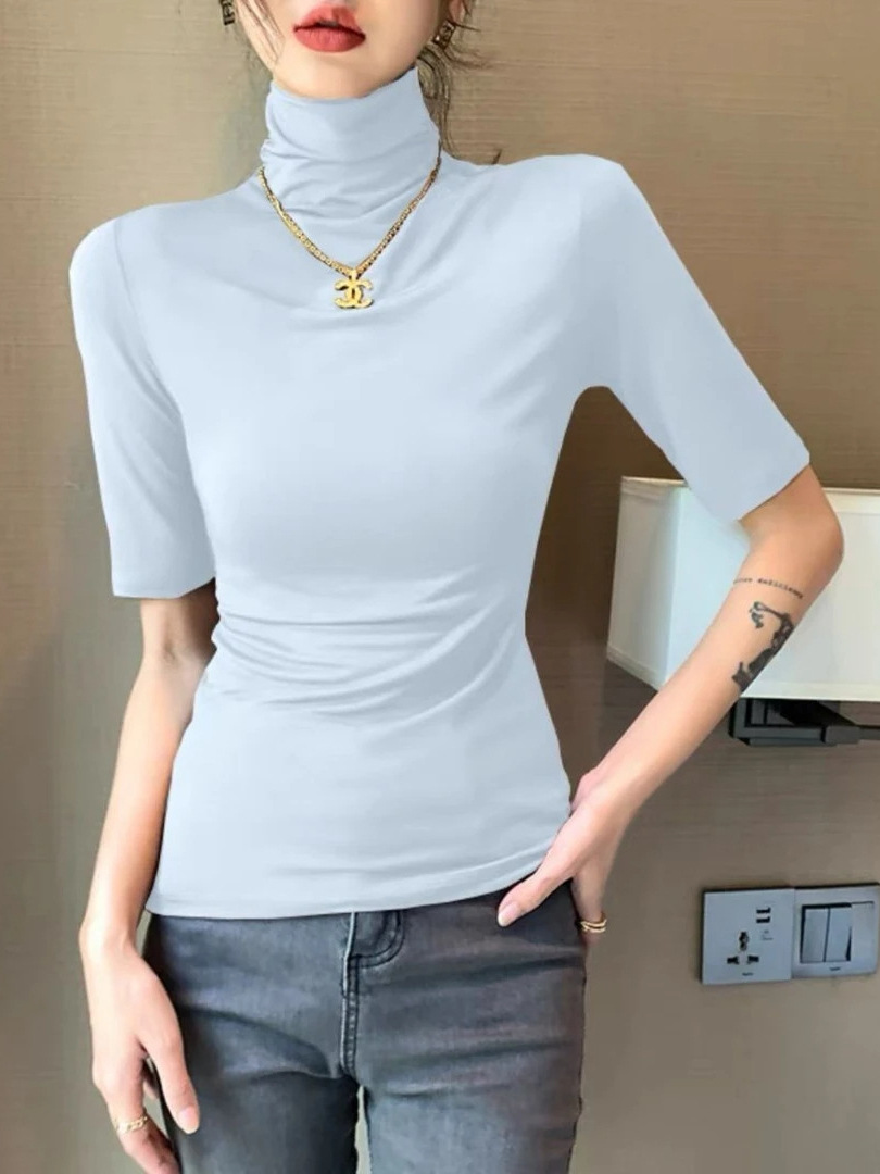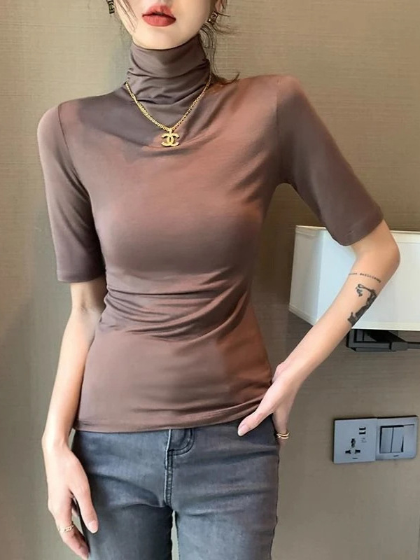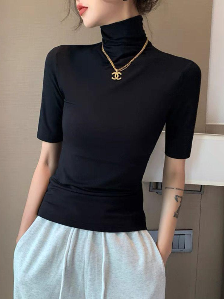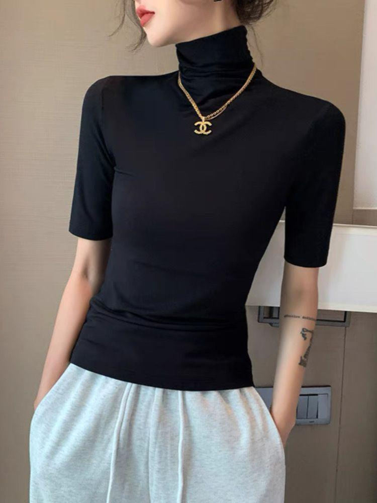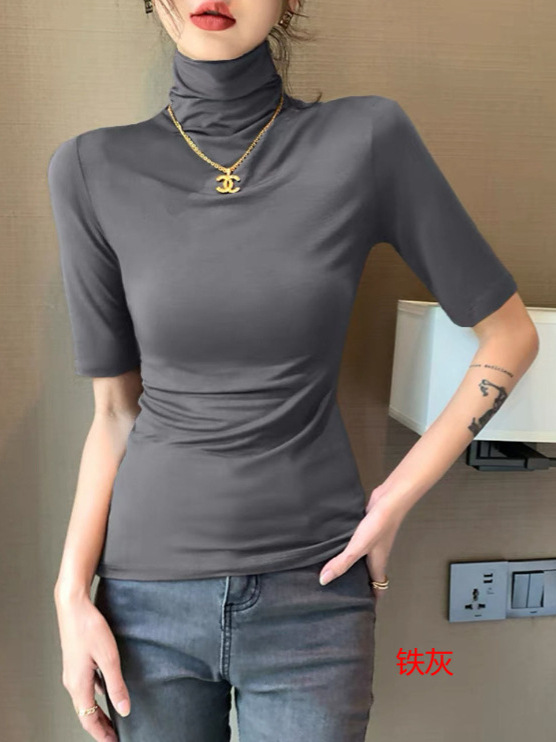 도매 2025 새로운 플러스 사이즈 하프 슬리브 티셔츠 봄과 가을 높은 칼라 내베이스 셔츠 여성 하프 슬리브 탑 여성 의류