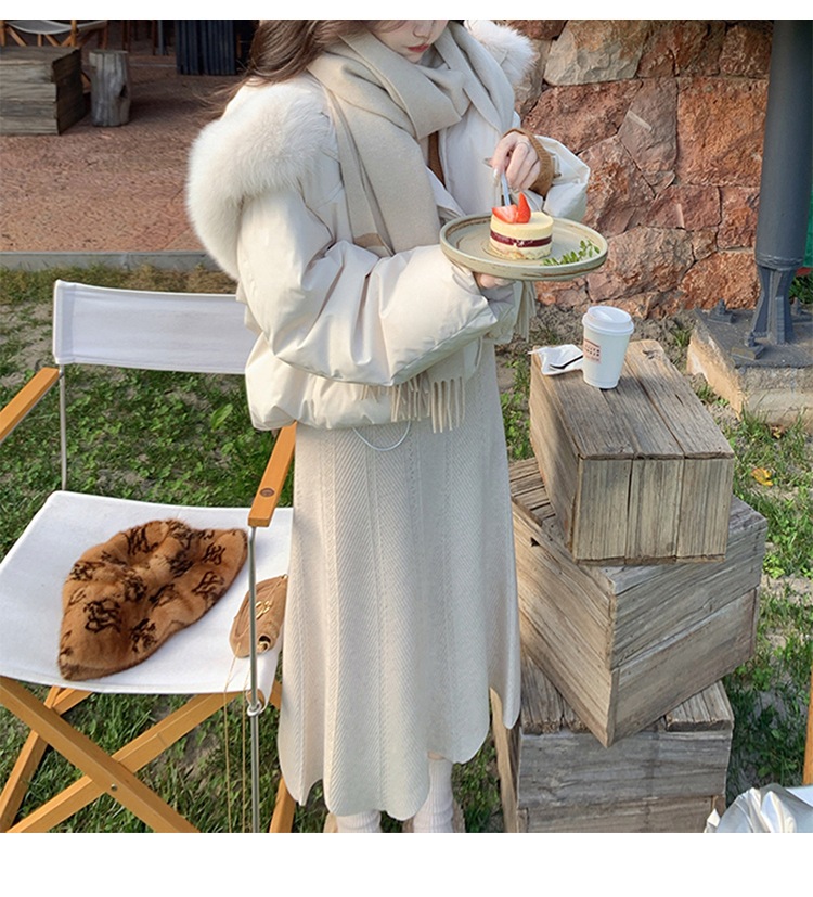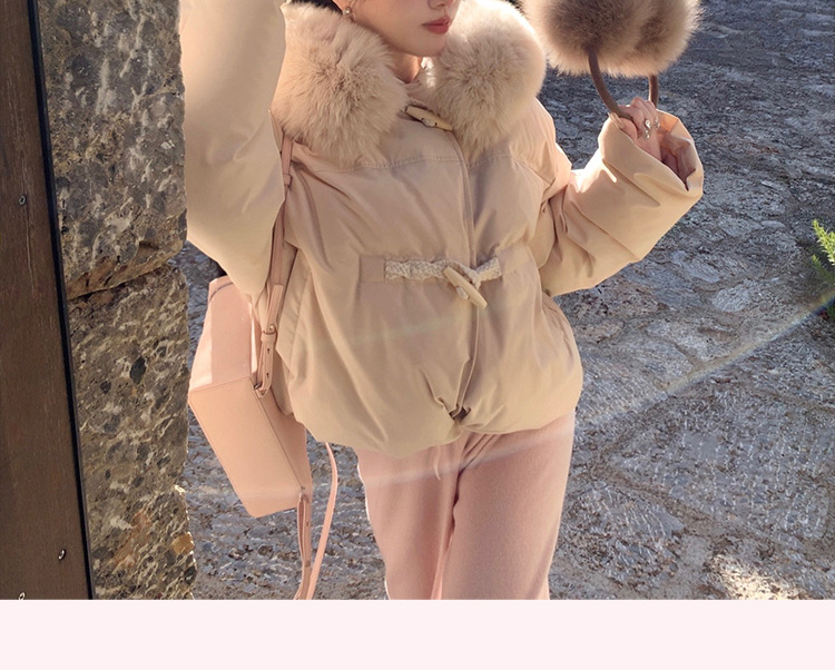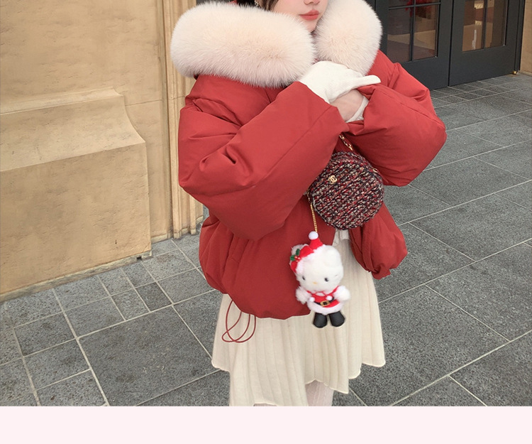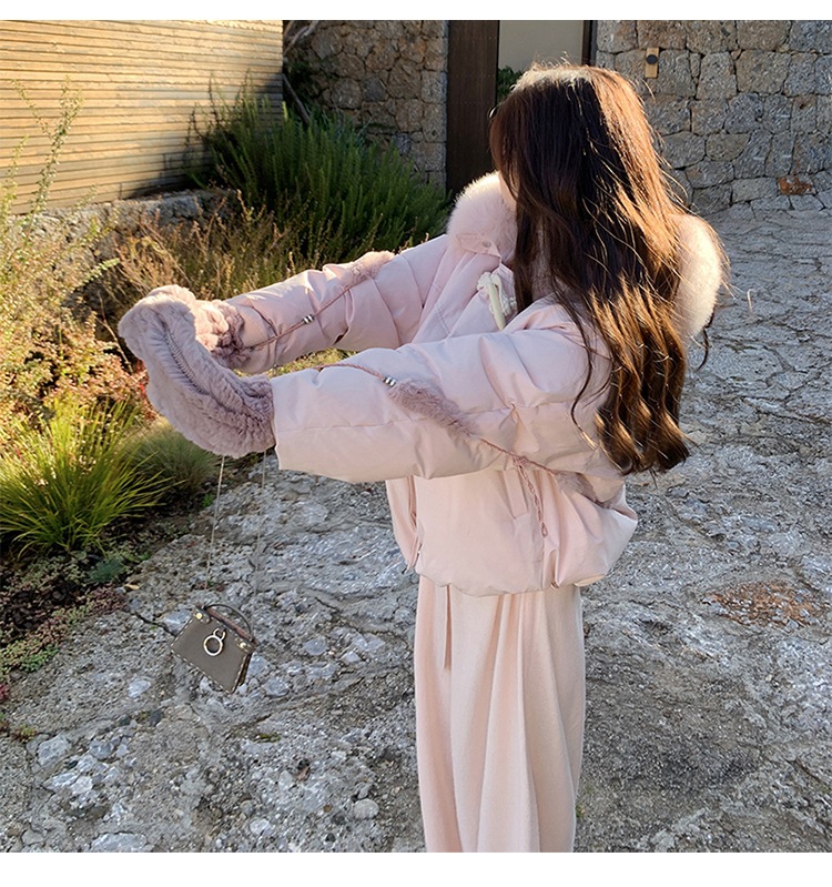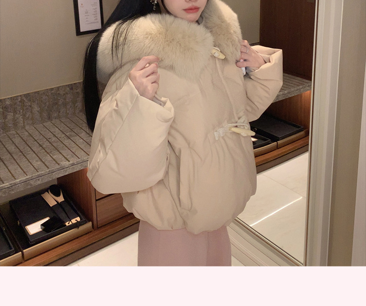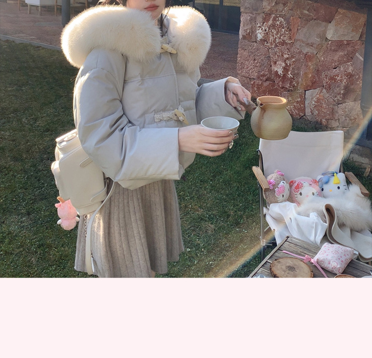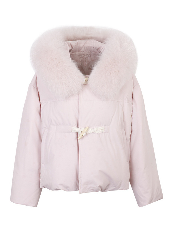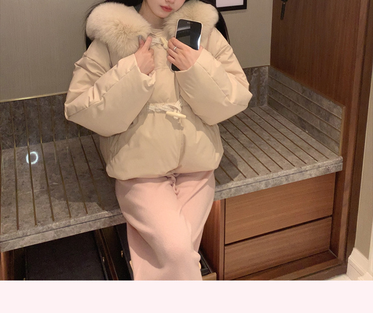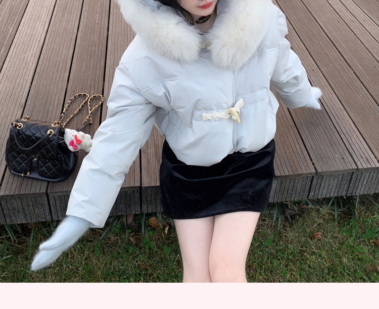 90일 표준 삼화 대형 흰오리털 숏 후드 다운 재킷 겨울용 여우털 칼라