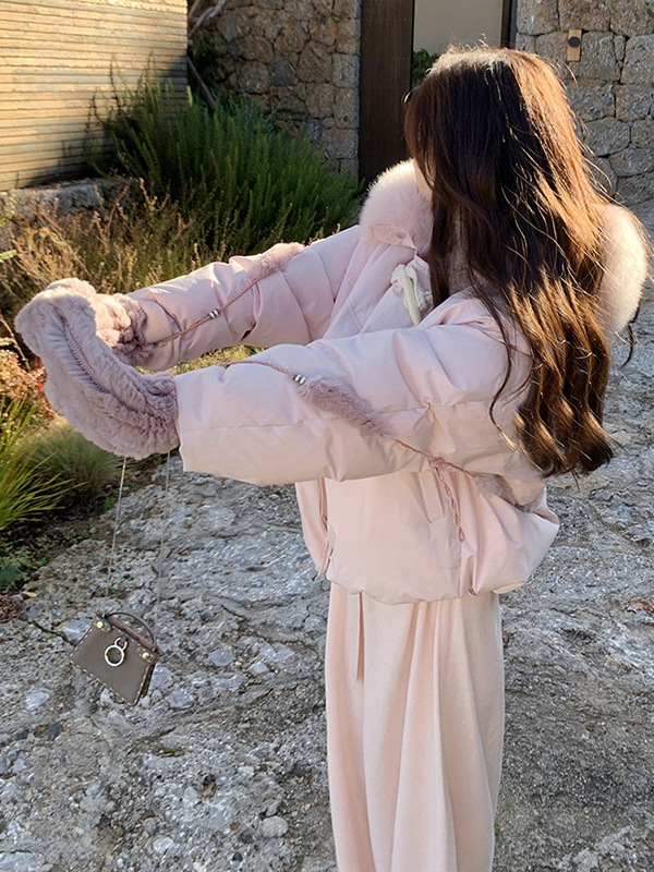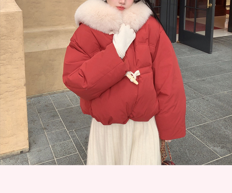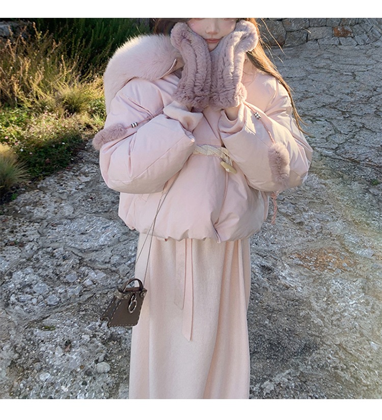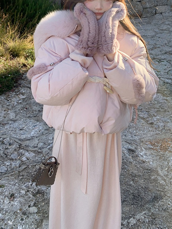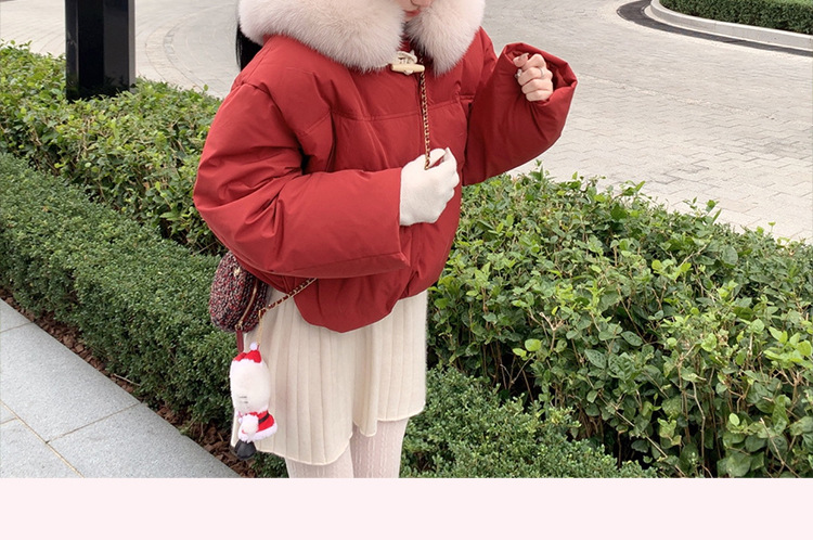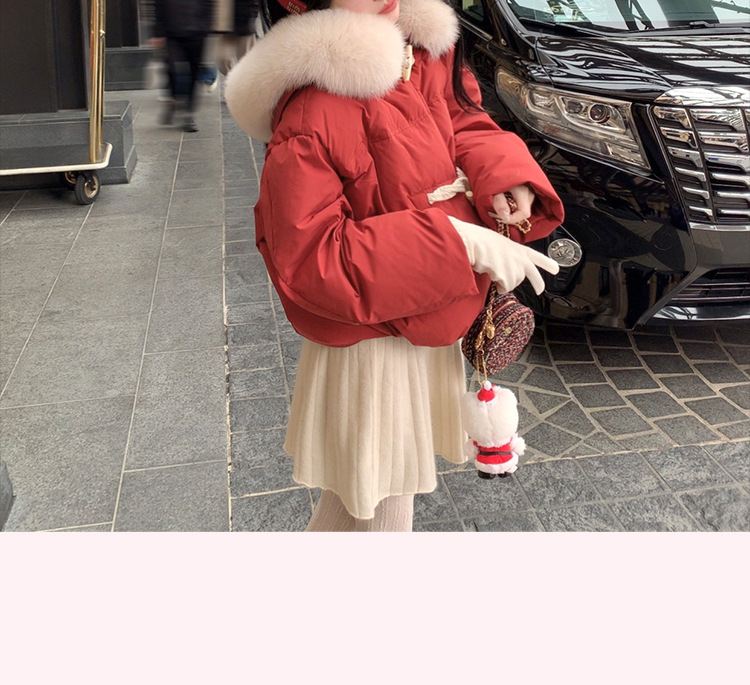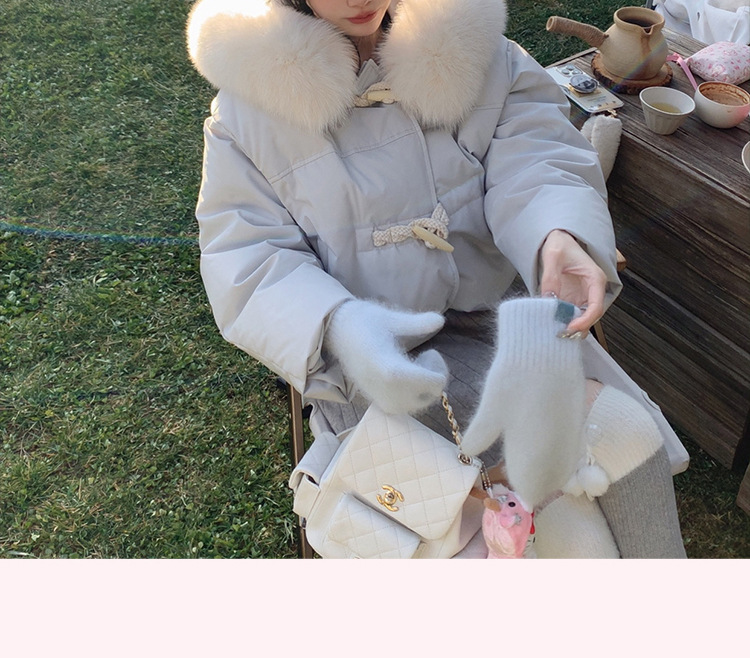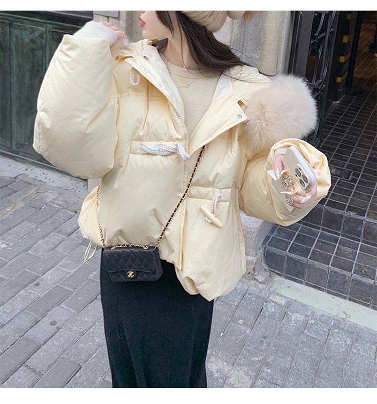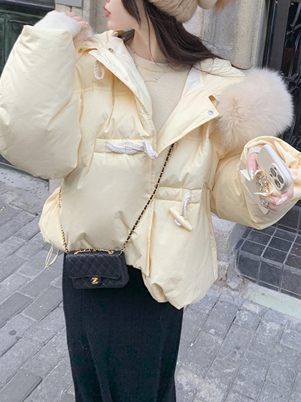 90일 표준 삼화 대형 흰오리털 숏 후드 다운 재킷 겨울용 여우털 칼라