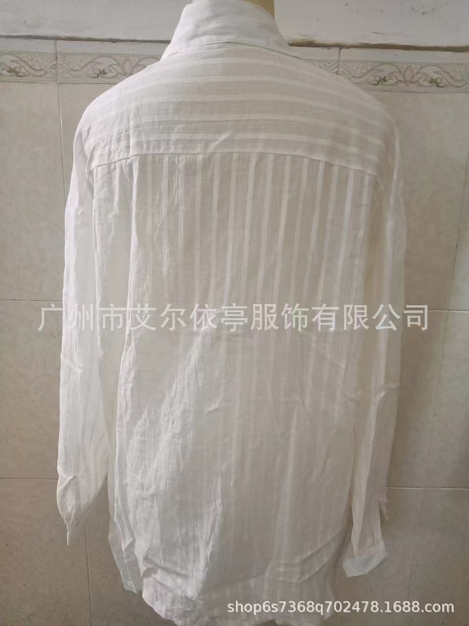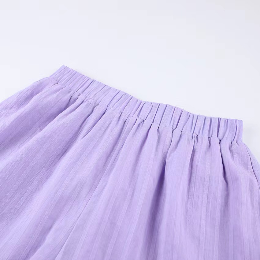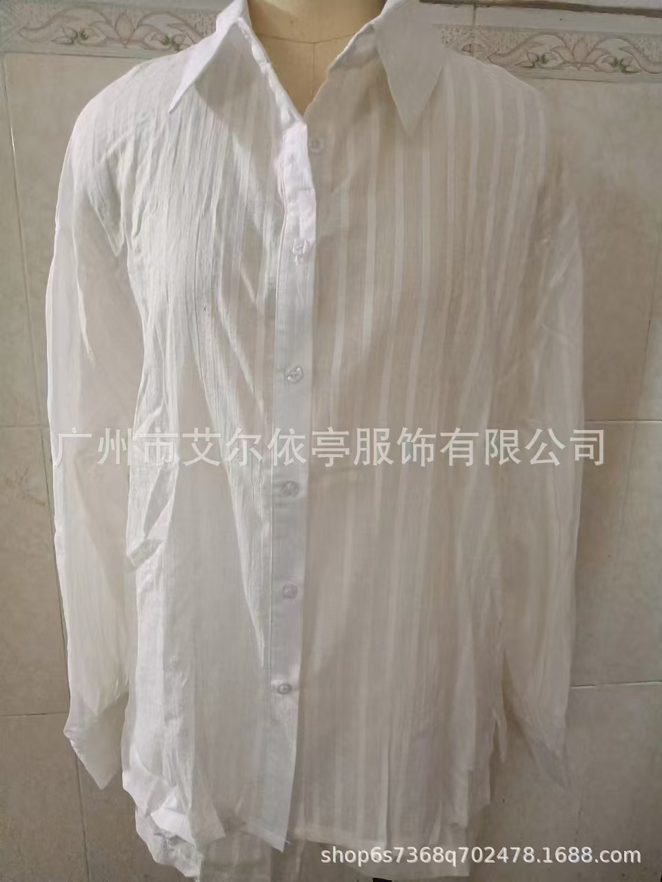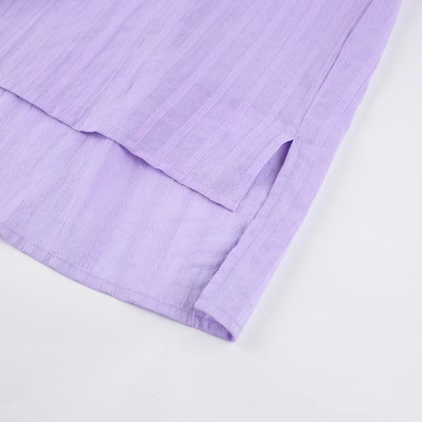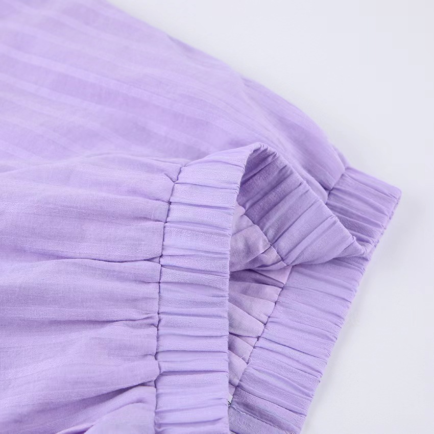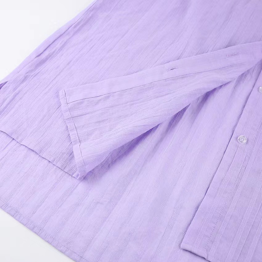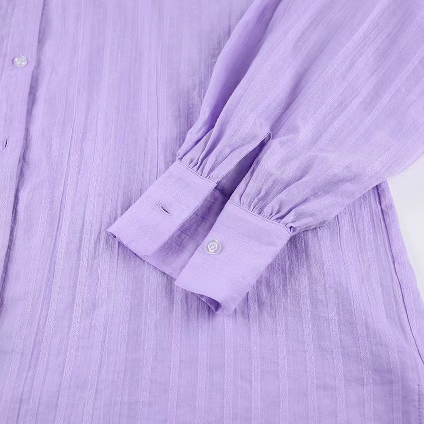 유럽과 미국 여성의 2025 새로운 100 면 자카드 스트라이프 옷깃 버블 슬리브 셔츠 투피스 세트 반바지 세트