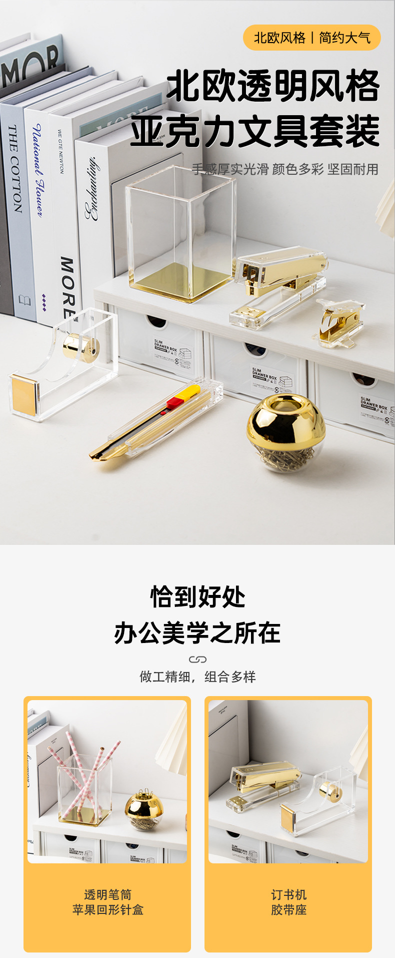 아크릴 투명 스테이플러 세트, 범용, 노동력 절약형, 데스크탑 조합, 사무실 학생 선물, 문구 제조업체 도매