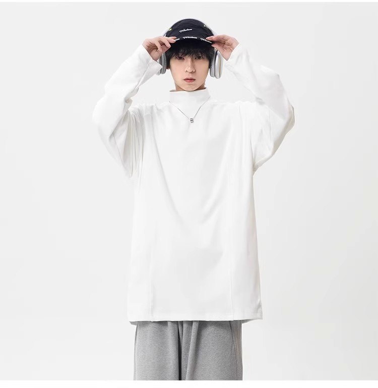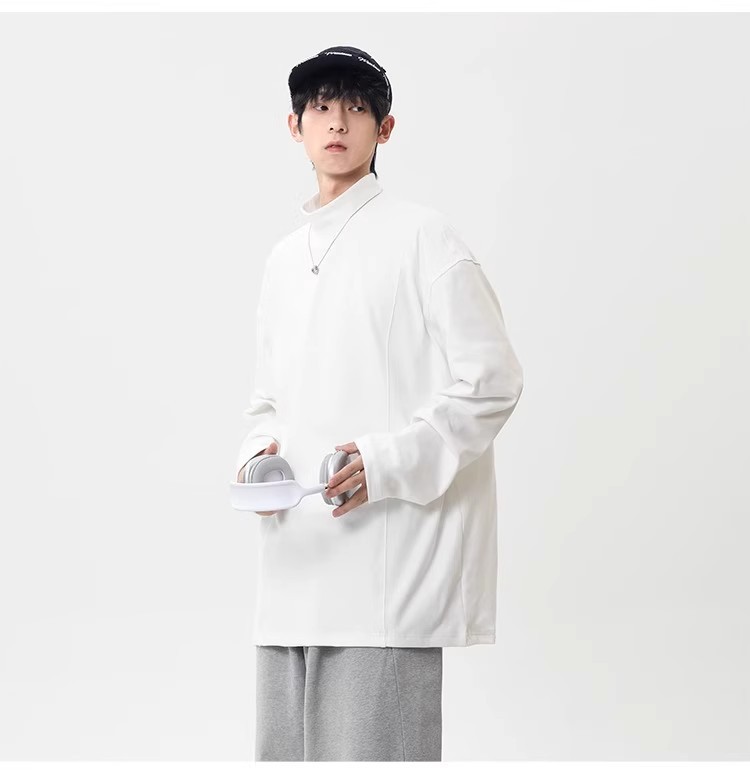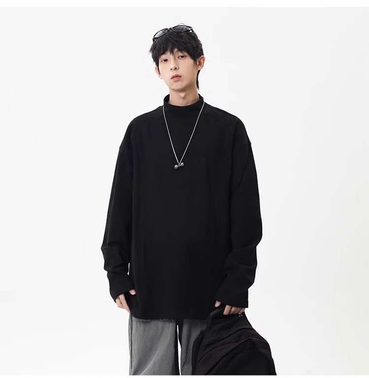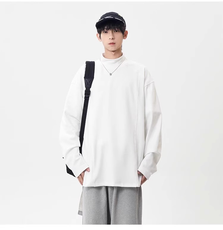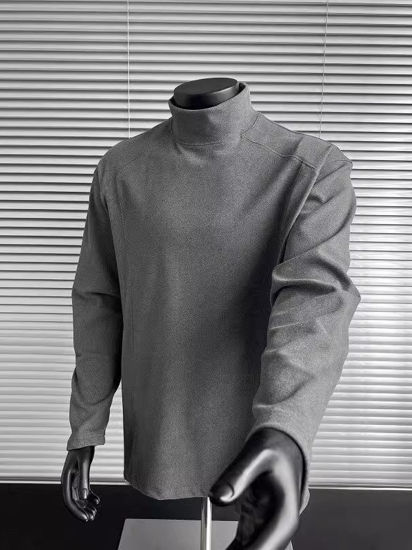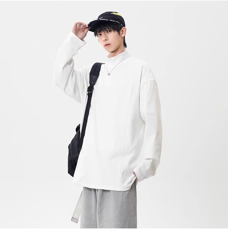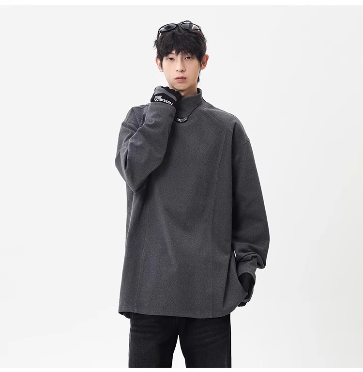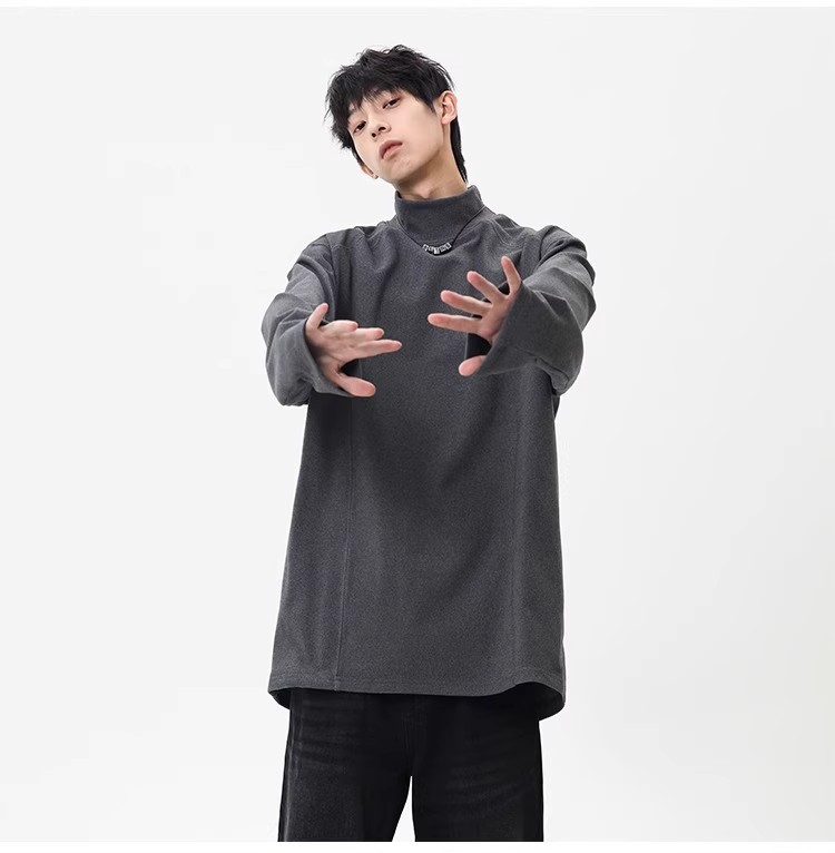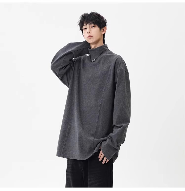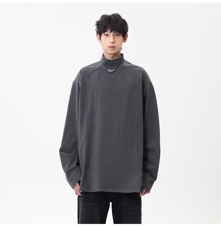 컷 피스 해체 된 하프 하이 칼라 베이스 셔츠 남자 겨울 미국 헤비 해체 스웨터 이너 그레이 긴팔 티셔츠