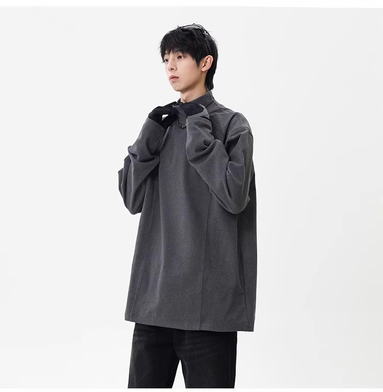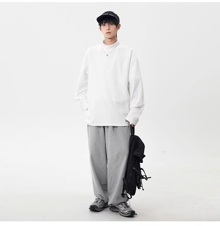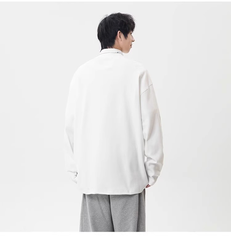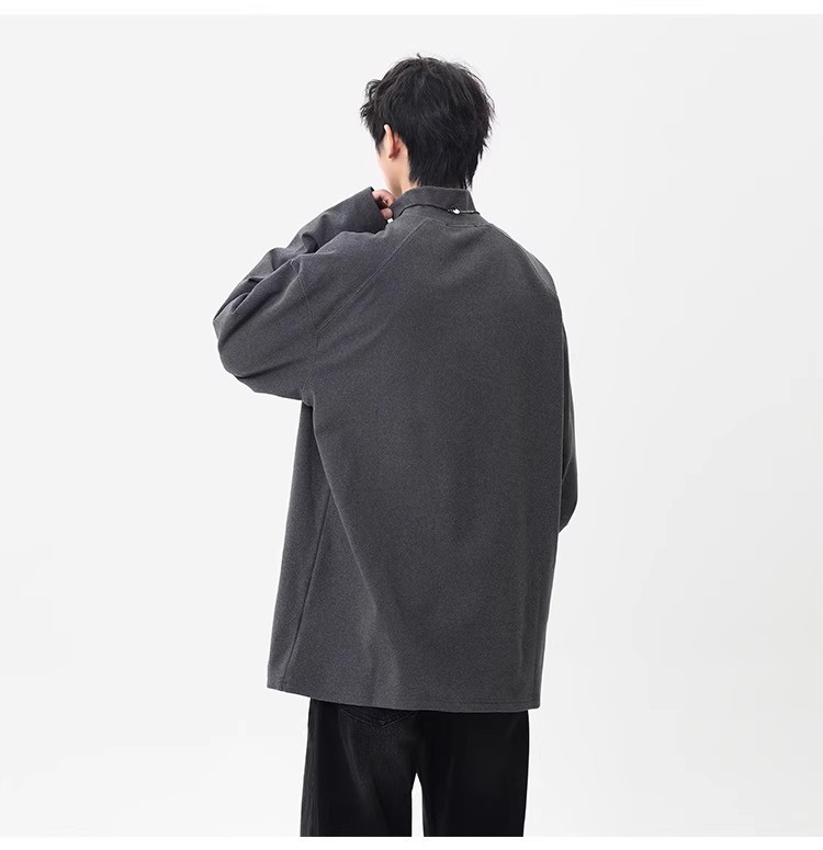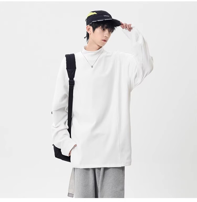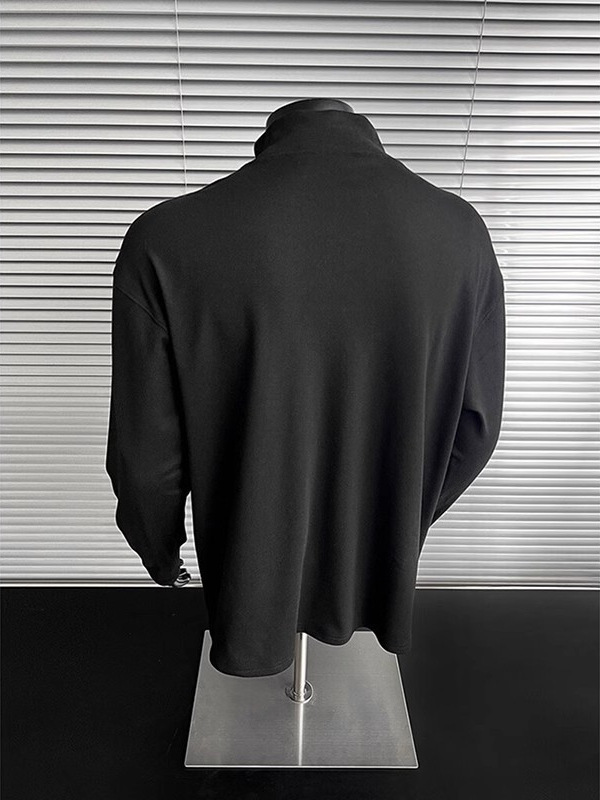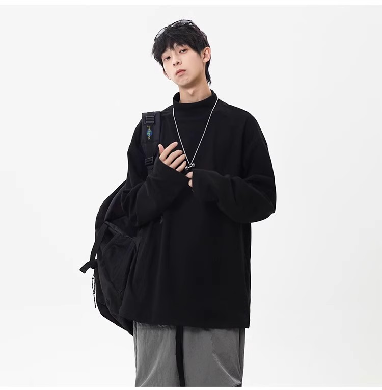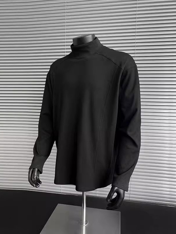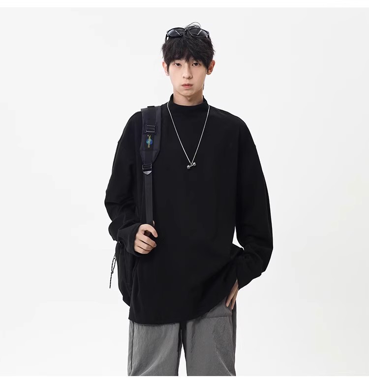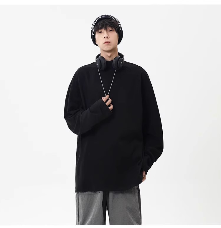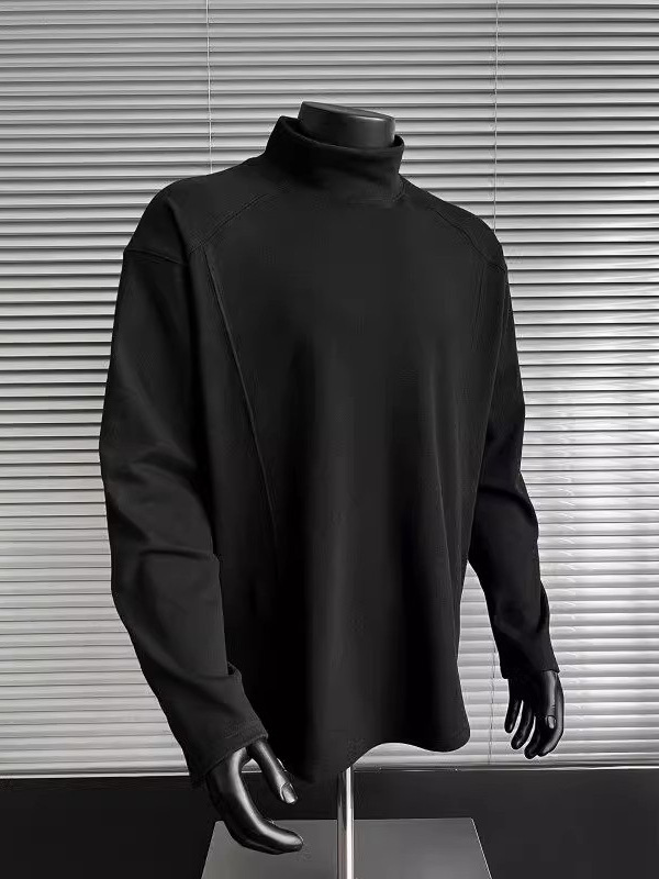 컷 피스 해체 된 하프 하이 칼라 베이스 셔츠 남자 겨울 미국 헤비 해체 스웨터 이너 그레이 긴팔 티셔츠