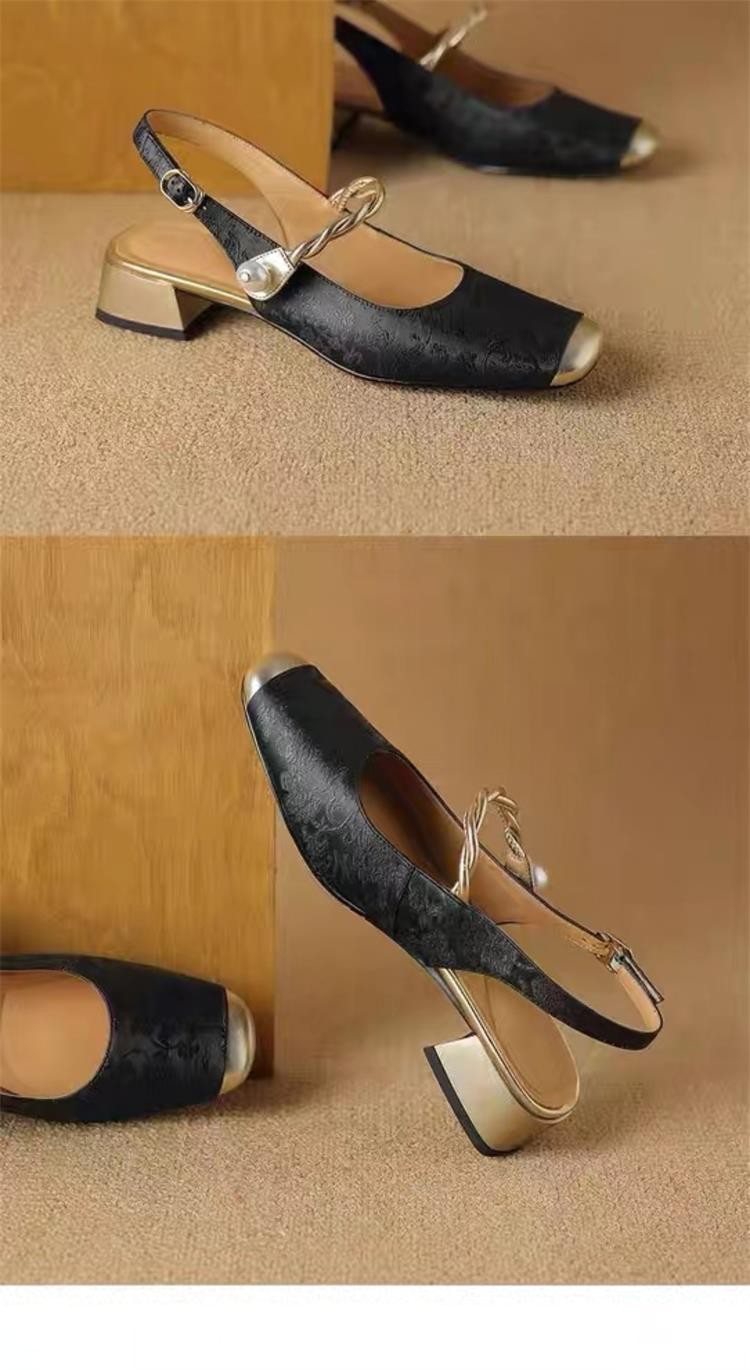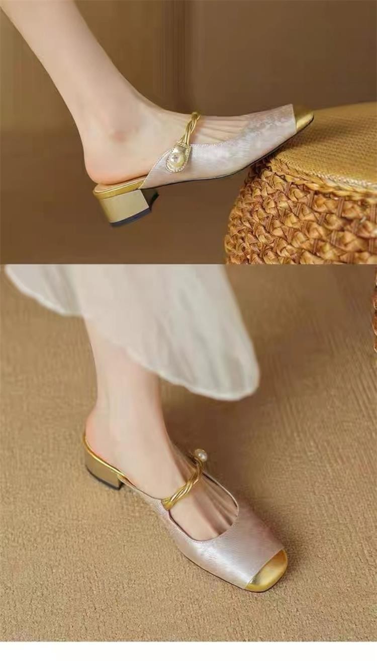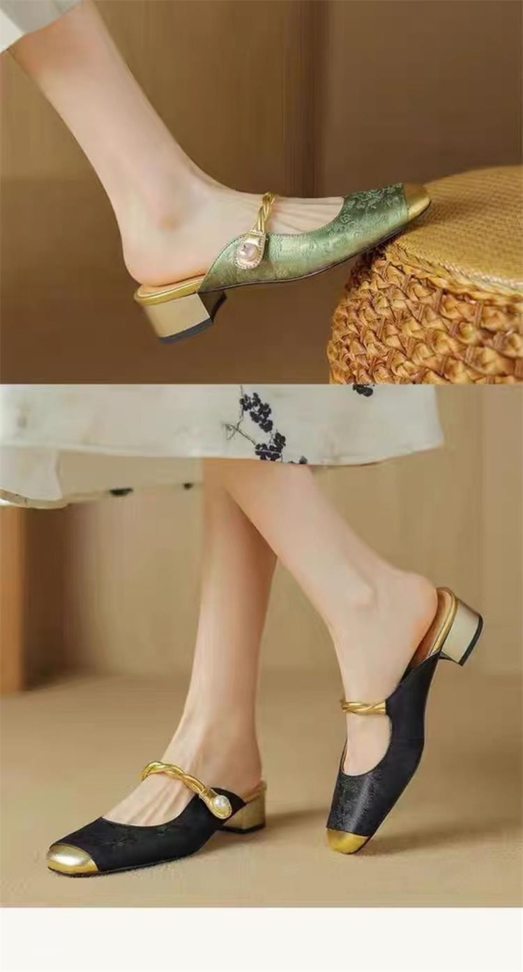 2025 년 봄과 여름 새로운 중국 스타일 국가 스타일 바오 터우 하프 슬리퍼 여성 아우터웨어 요정 미드 힐 원피스 메리 제인 샌들