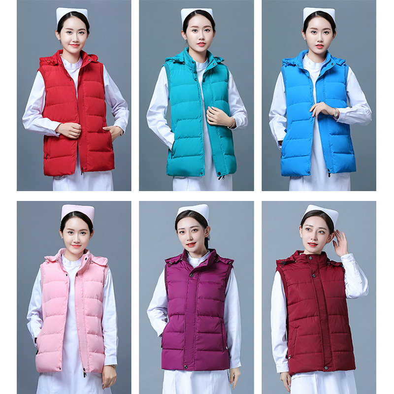 간호사 다운 조끼 겨울 입고 코튼 조끼 응급 부서 여성 의사 듀티 코튼 재킷 다운 재킷 짧은 재킷
