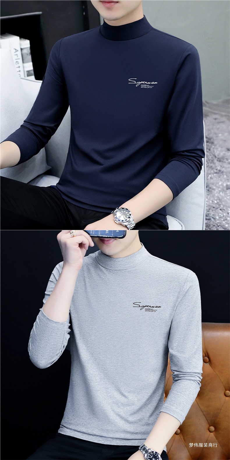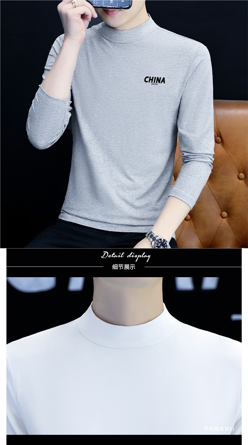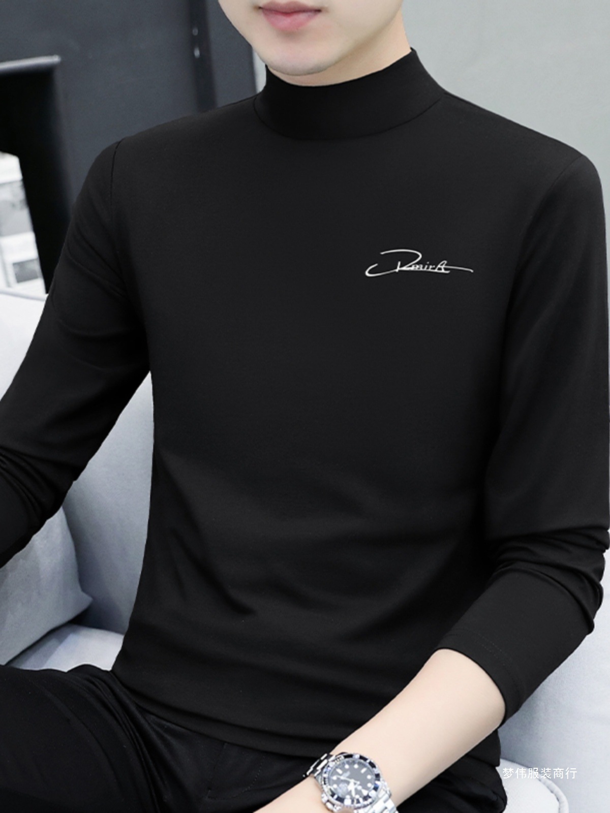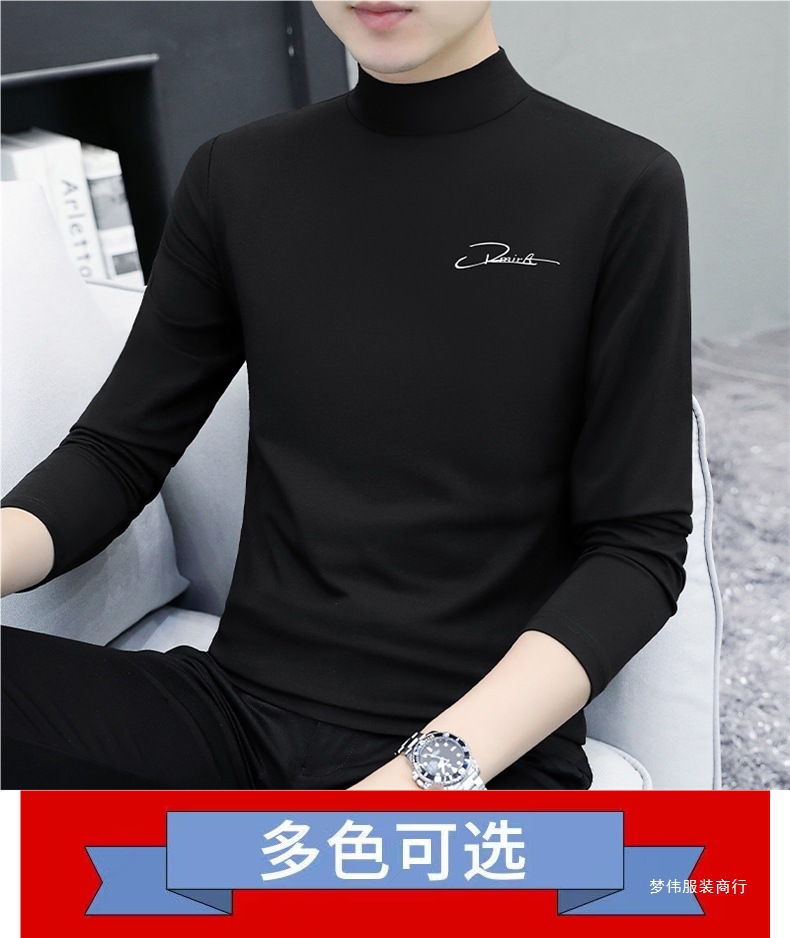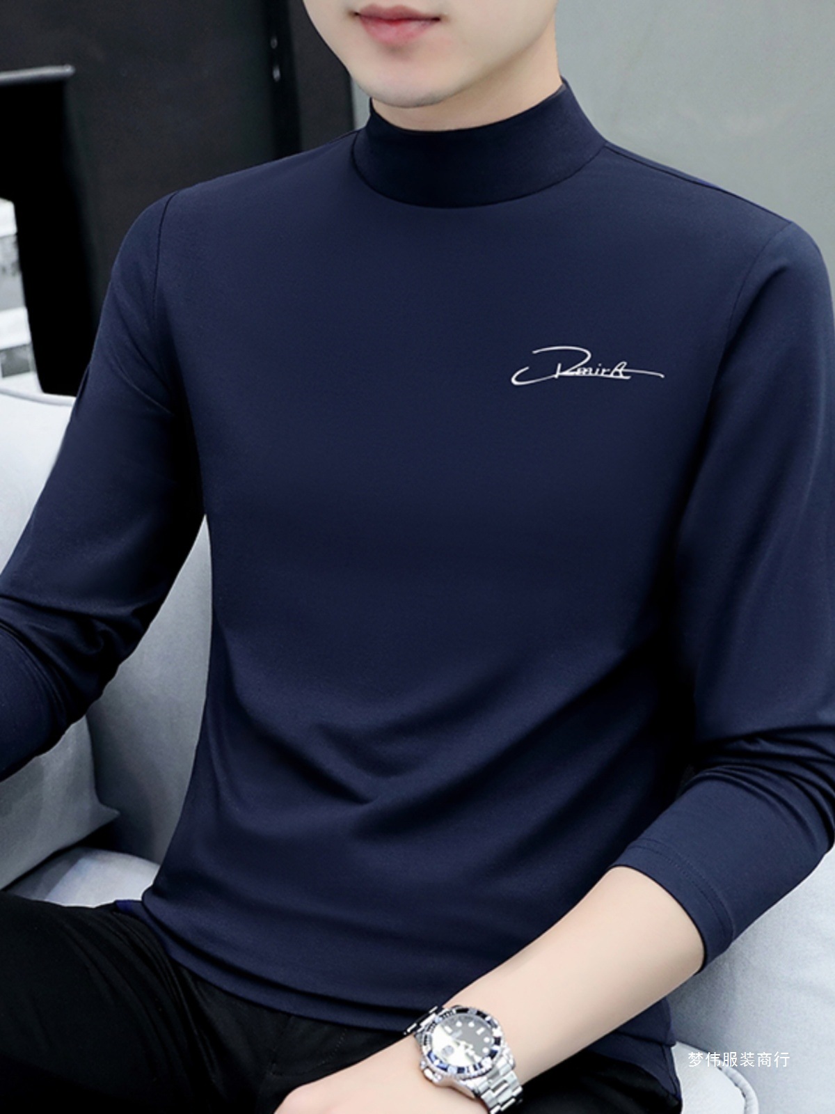 모달면 반 높은 칼라 긴 소매 티셔츠 남자의 가을 최고 가을과 겨울베이스 셔츠 내부 중간 칼라 Qiu Mengwei