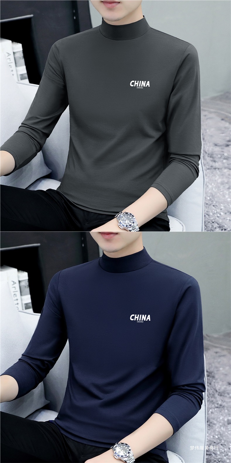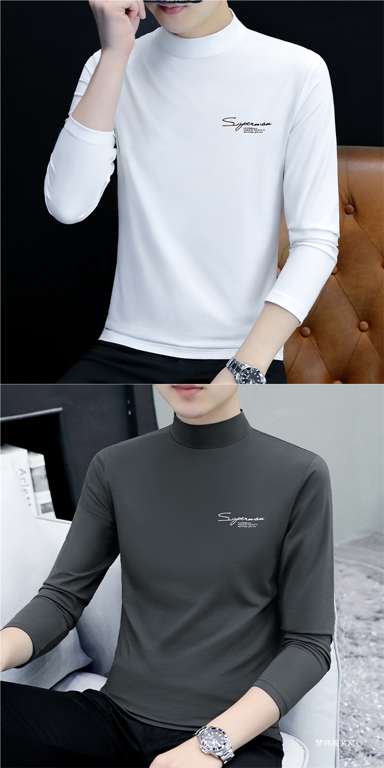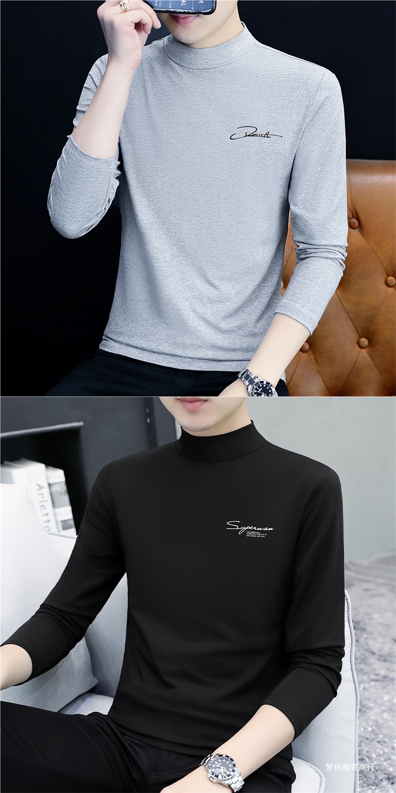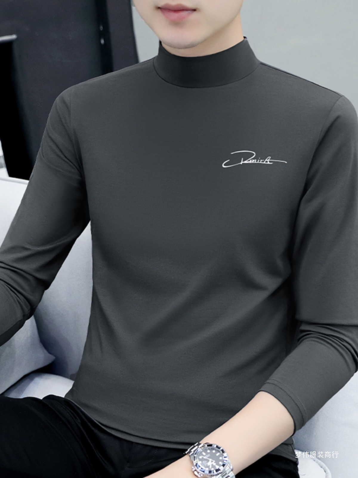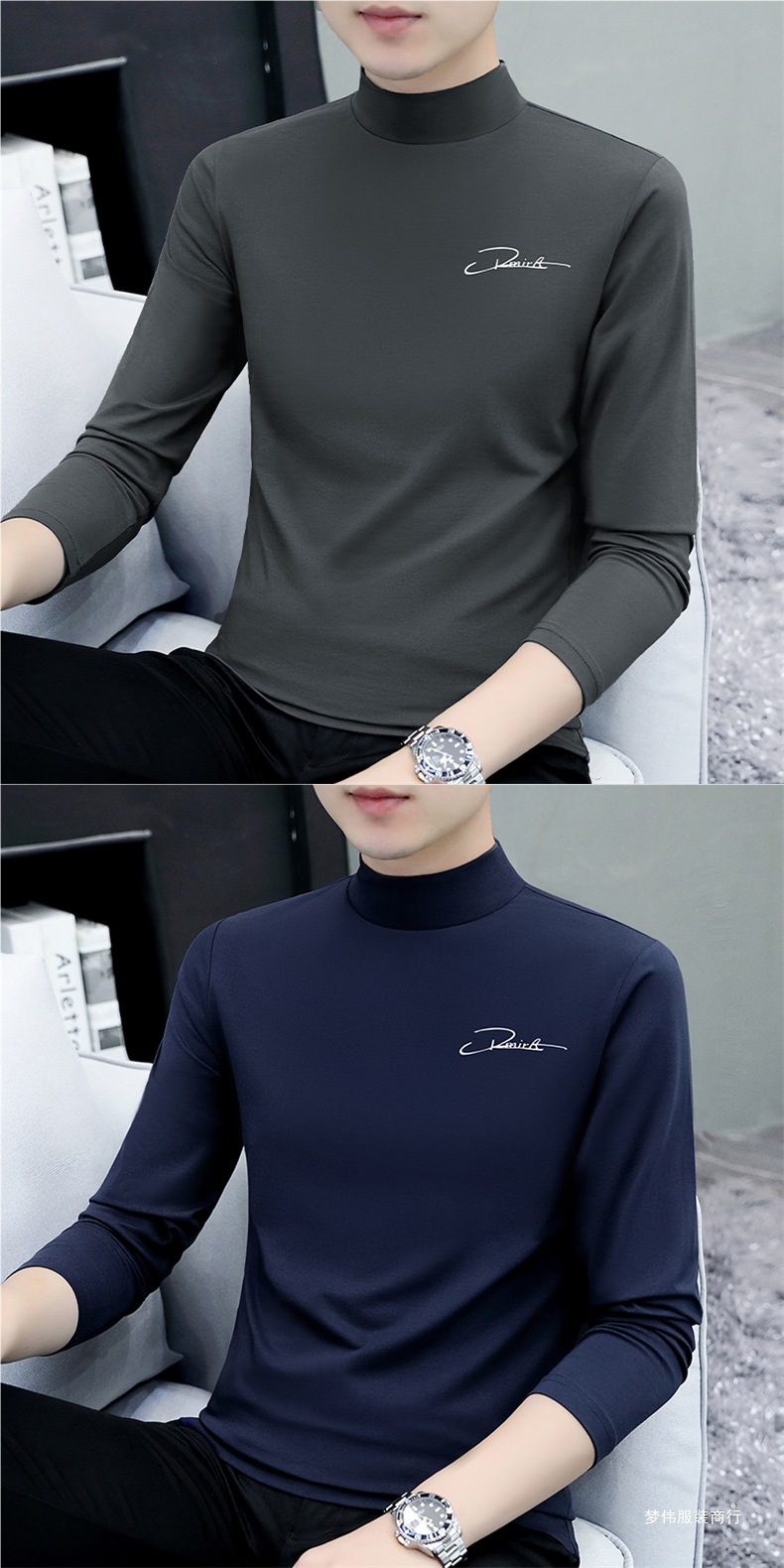 모달면 반 높은 칼라 긴 소매 티셔츠 남자의 가을 최고 가을과 겨울베이스 셔츠 내부 중간 칼라 Qiu Mengwei