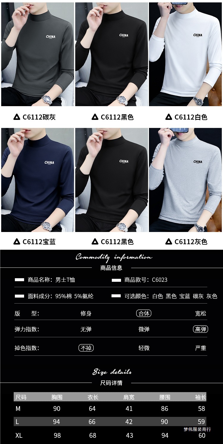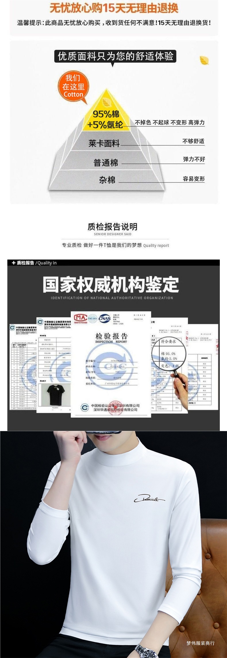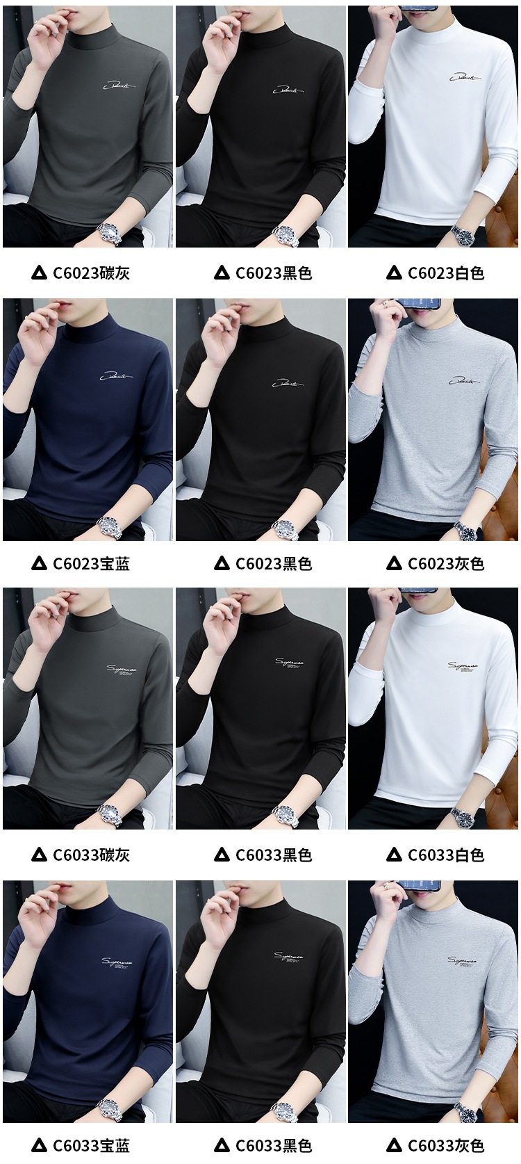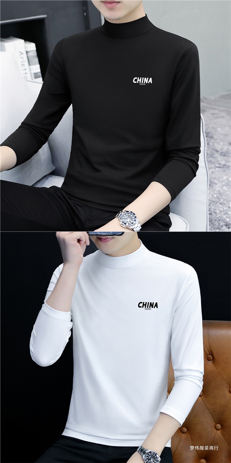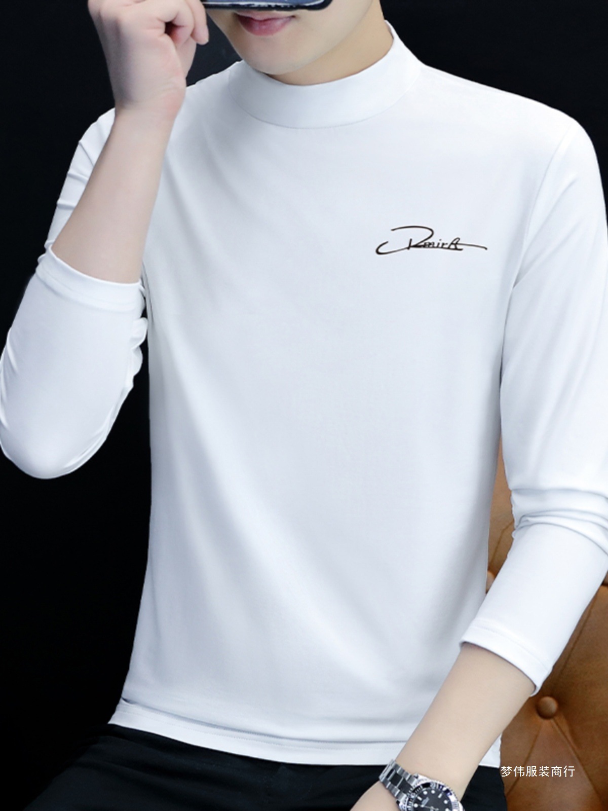 모달면 반 높은 칼라 긴 소매 티셔츠 남자의 가을 최고 가을과 겨울베이스 셔츠 내부 중간 칼라 Qiu Mengwei