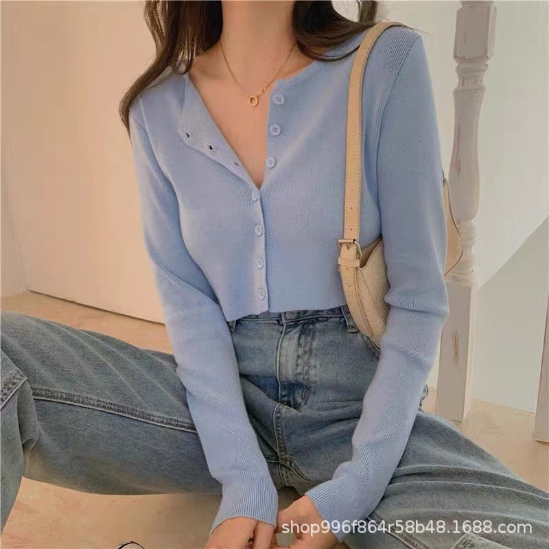봄과 가을 새로운 스타일 작은 얇은베이스 스웨터 긴 소매 스타일 니트 카디건 여성 아우터 쇼트 탑 트렌디