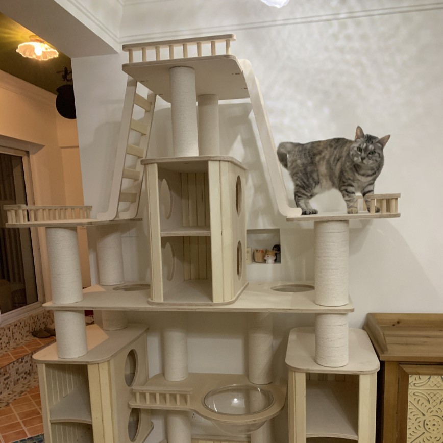 宠物猫爬架实木猫窝大型猫树太空舱一体木制豪华别墅宠物窝猫架子