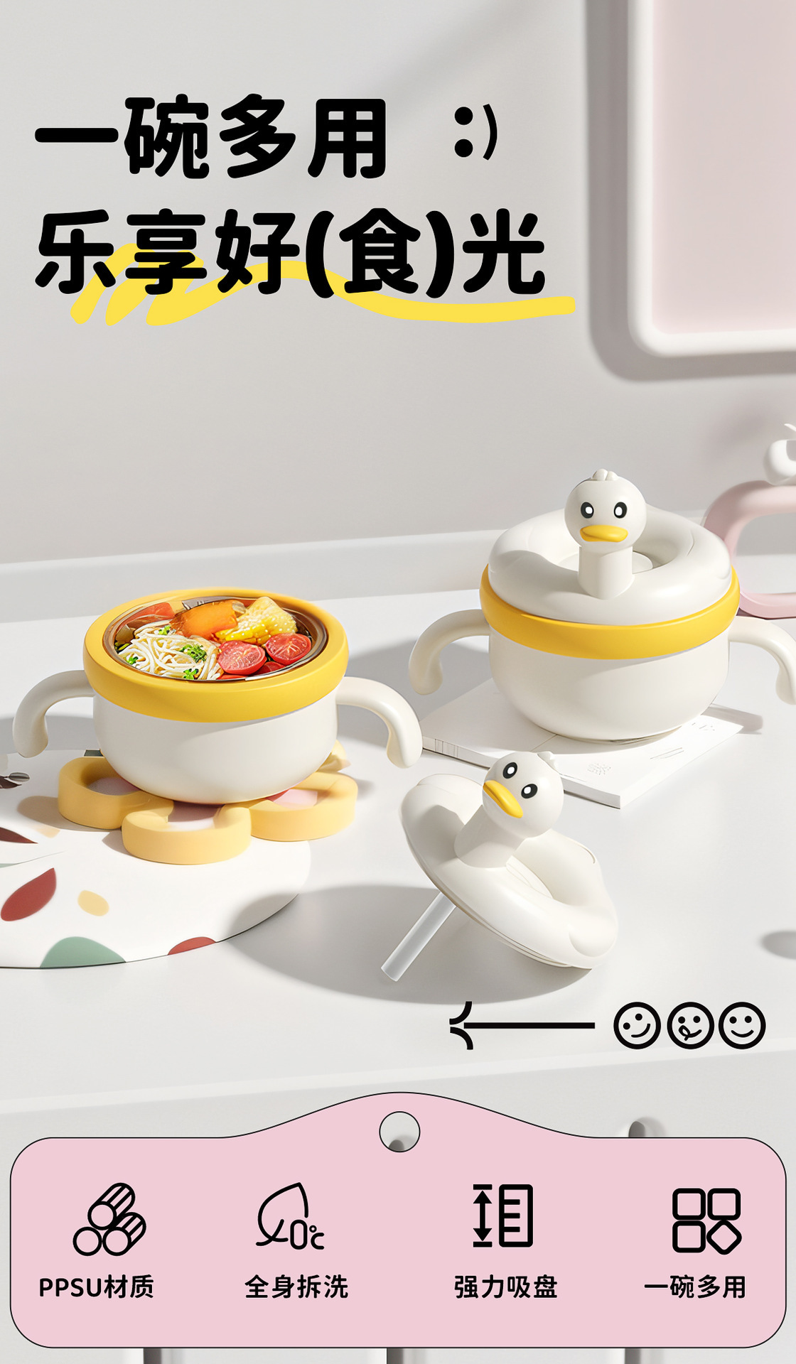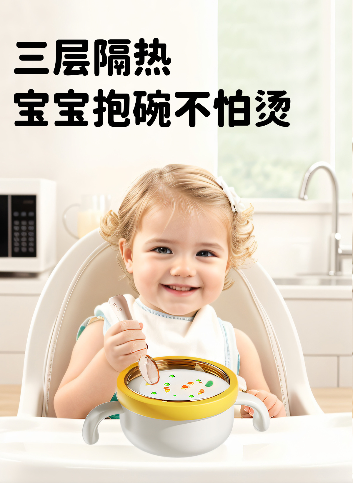 PPSU 베이비 푸드 그릇 아기 쌀 국수 식사 특수 물 주입 열 보존 그릇 일정한 온도 흡입 그릇 어린이 식기