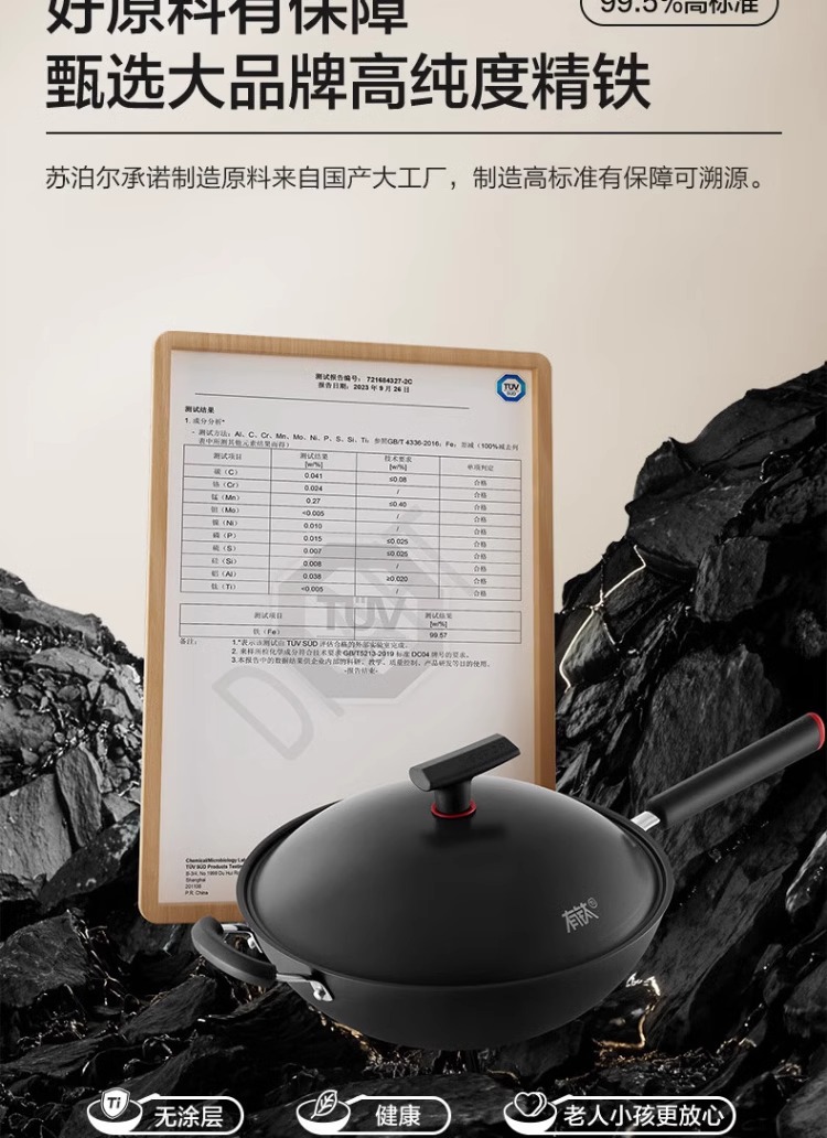 슈포르 티타늄 논스틱 웍 가정용 주방 무코팅 경량 철제 냄비 스테인리스 철제 웍
