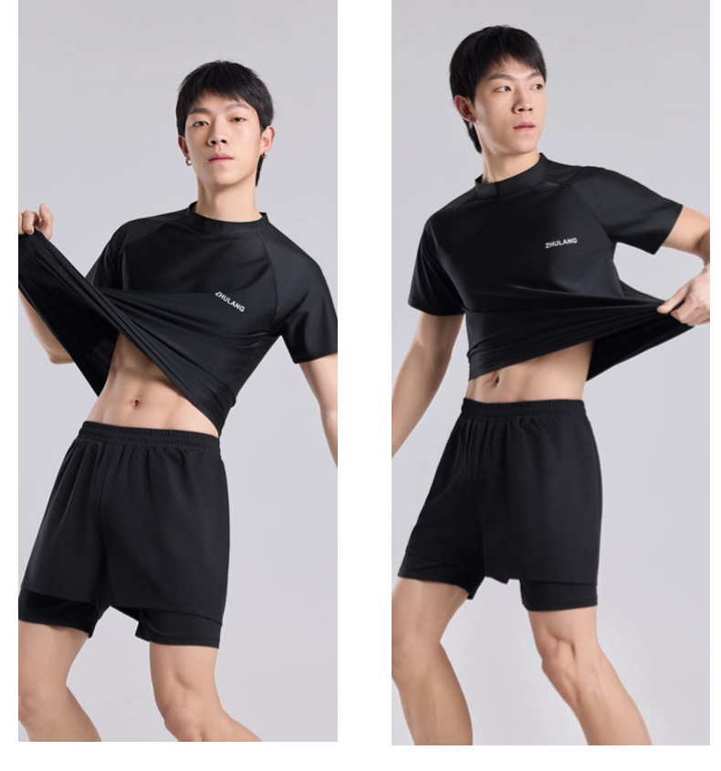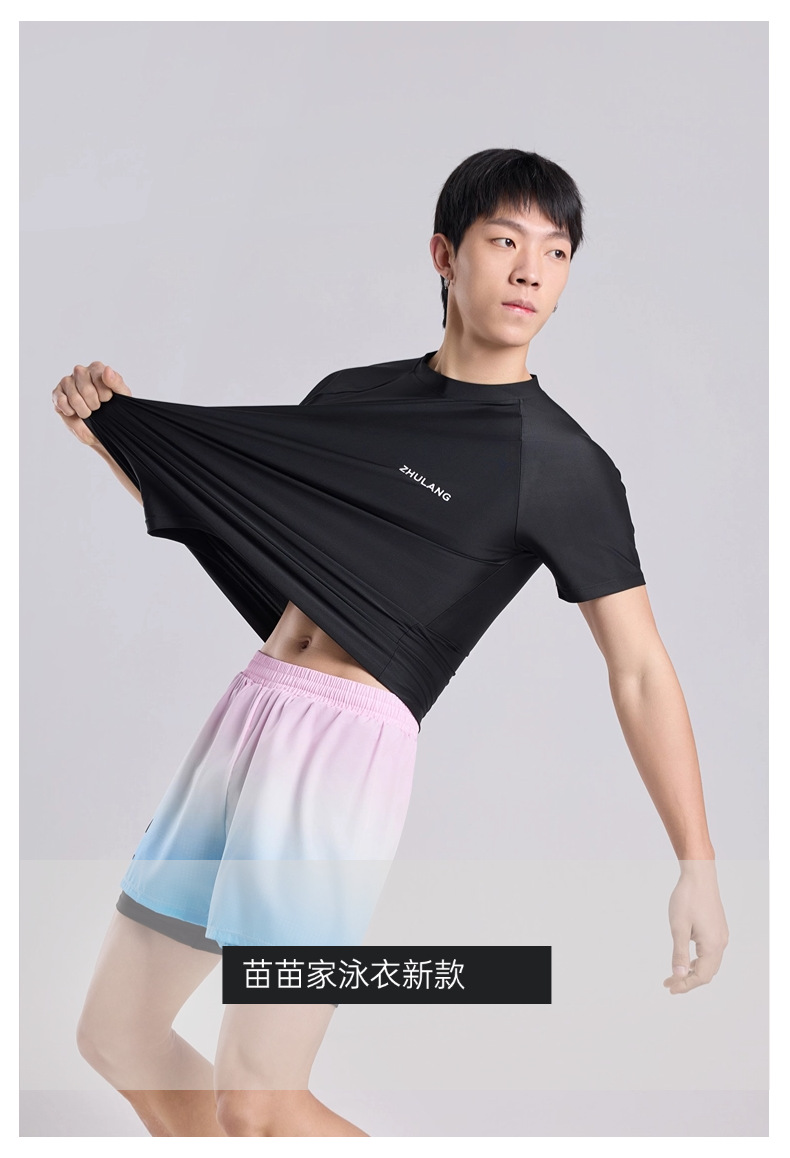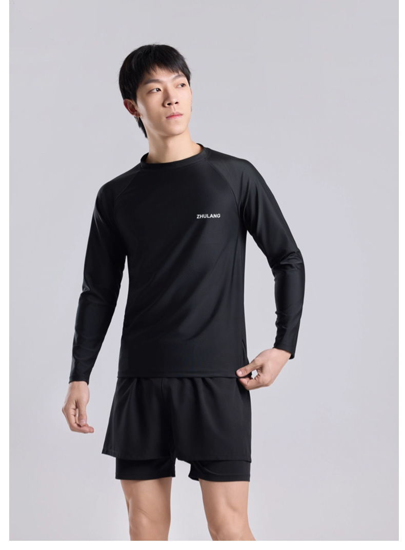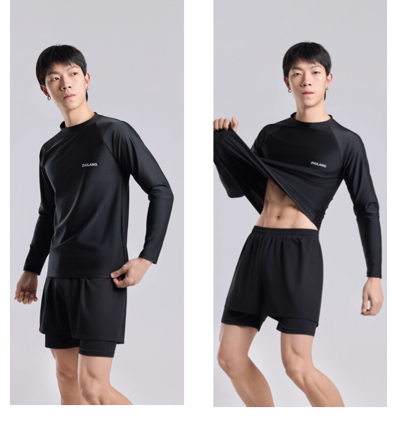 수영 세트 남자 훈련 수영 세트 성인 분할 플러스 사이즈 수영 트렁크 5 점 태양 보호 세트 비치 남자 수영복 새로운