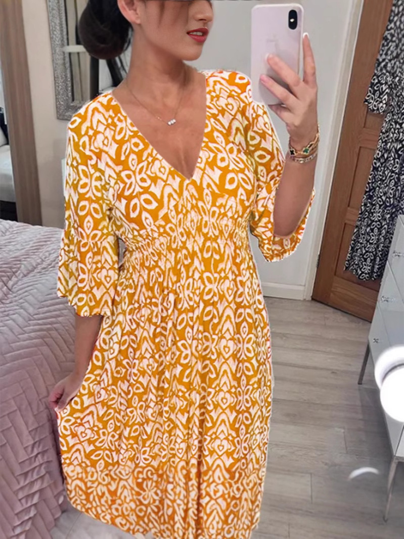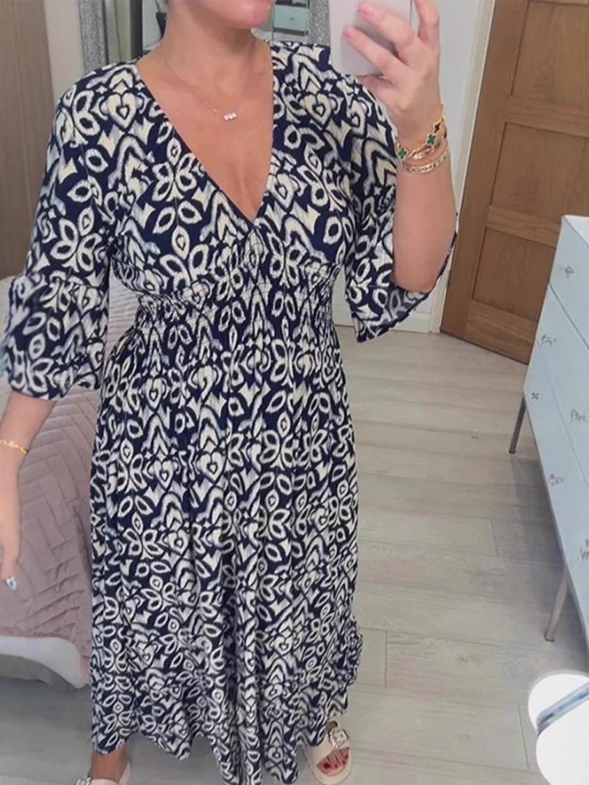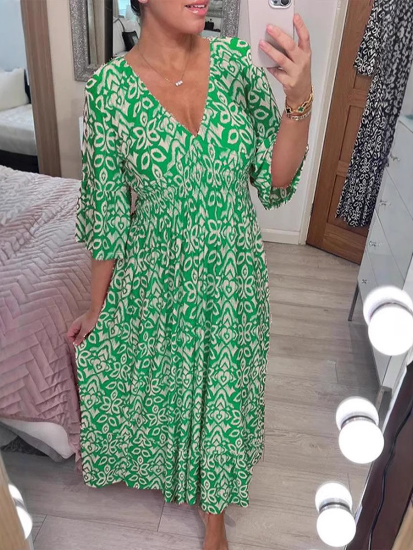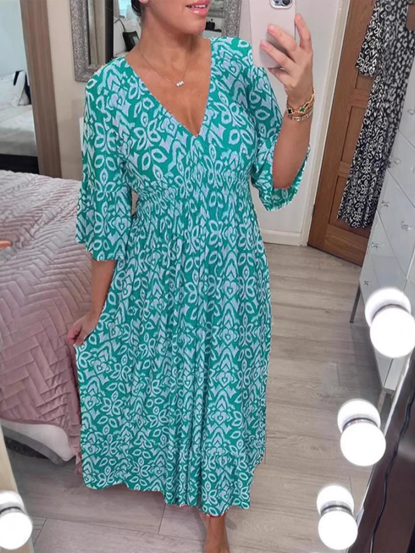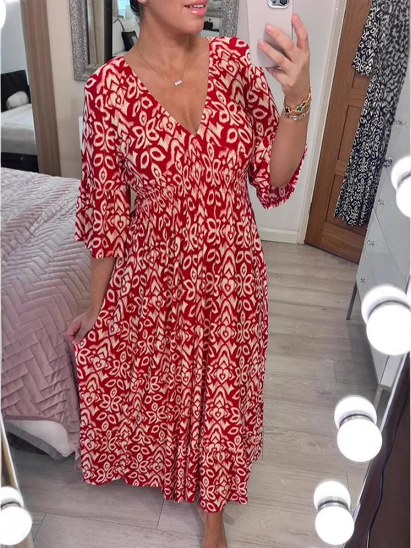 재고 2024 뉴 플러스 사이즈 슈퍼 페어리 V 넥 꽃 원피스 해변 원피스 느슨한 올 매치 롱 원피스