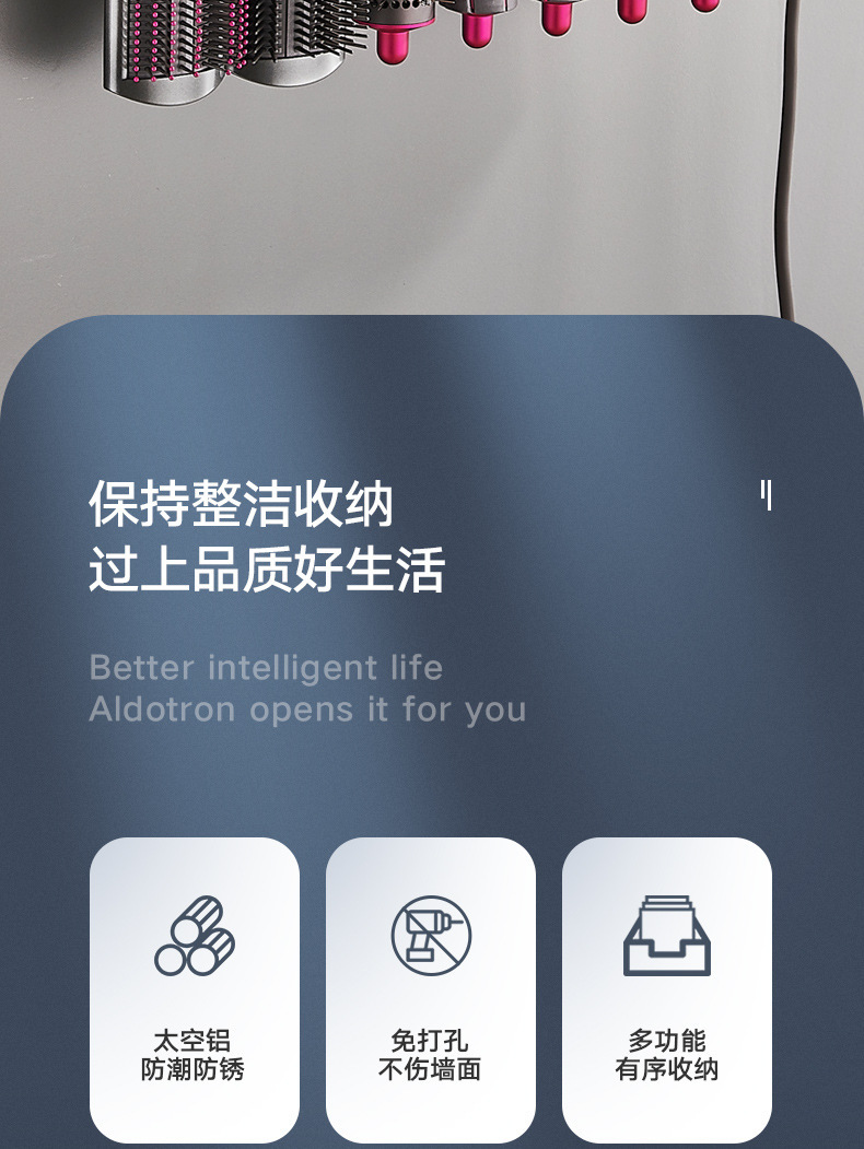 다이슨 컬링로드 홀더 펀치 프리 화장실 옷걸이 욕실 보관 스타일링 미용사 다이슨 스토리지 랙